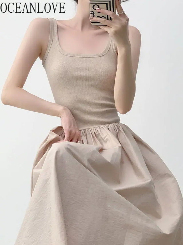 OCEANLOVE Трикотажные Лоскутные Длинные Платья А-силуэта Весна Лето Однотонные Vestidos Mujer Корейская М...