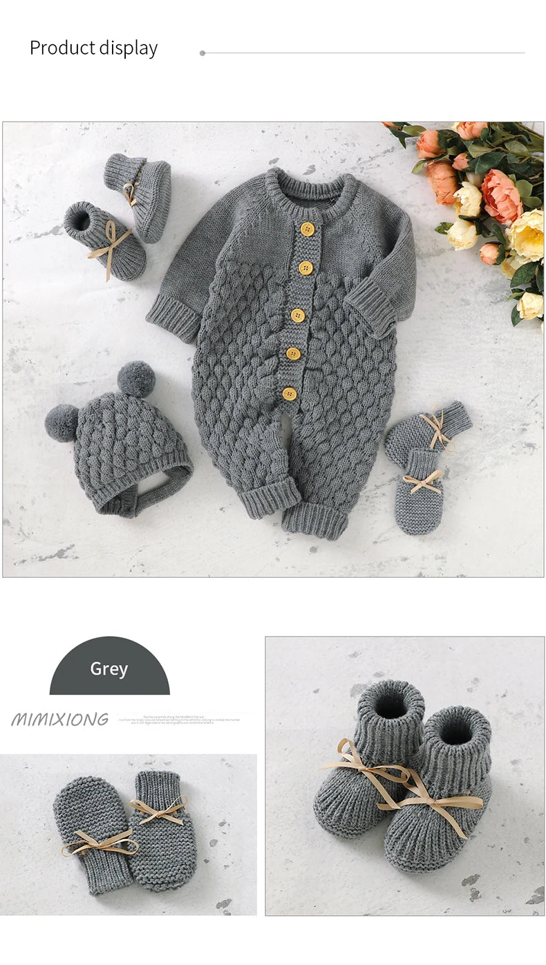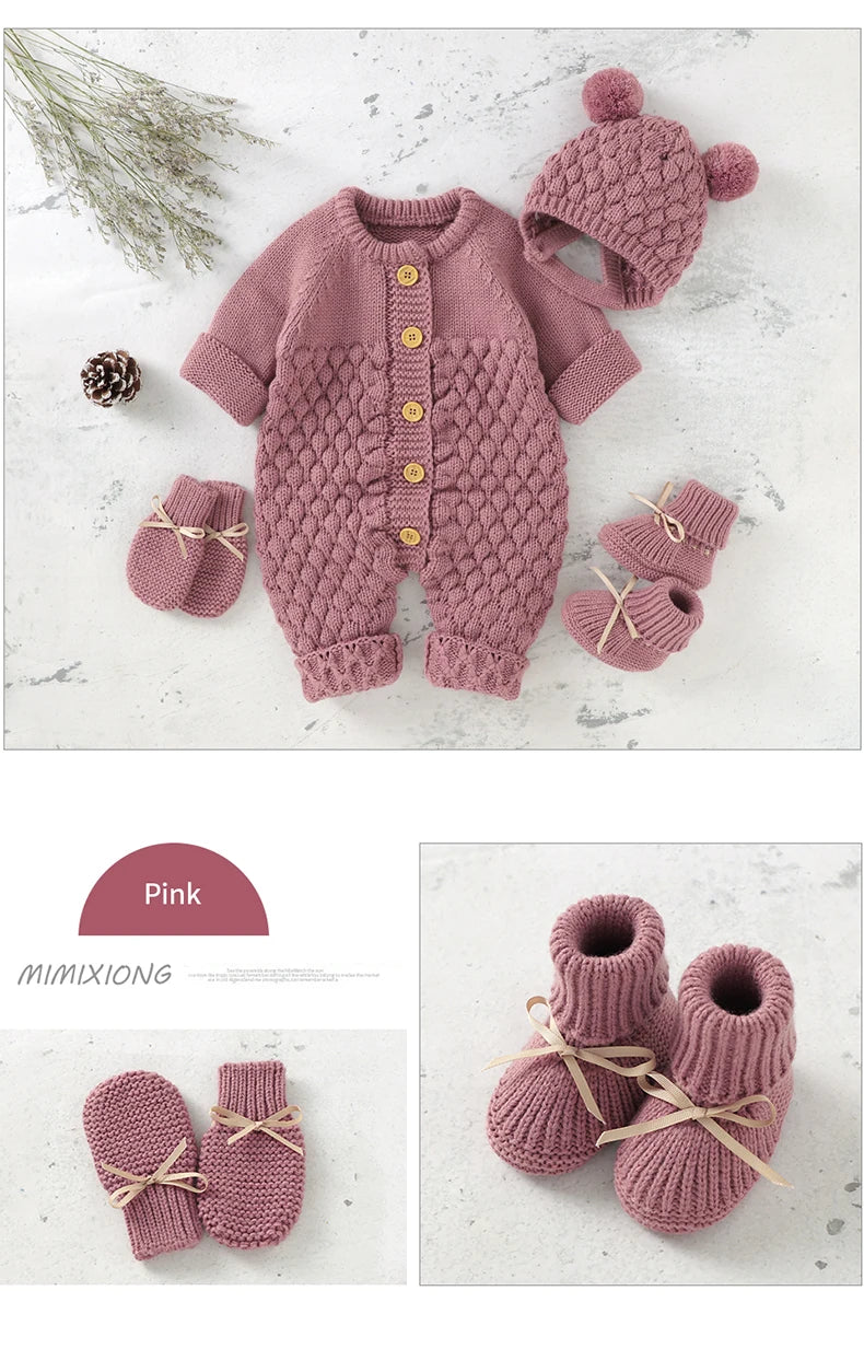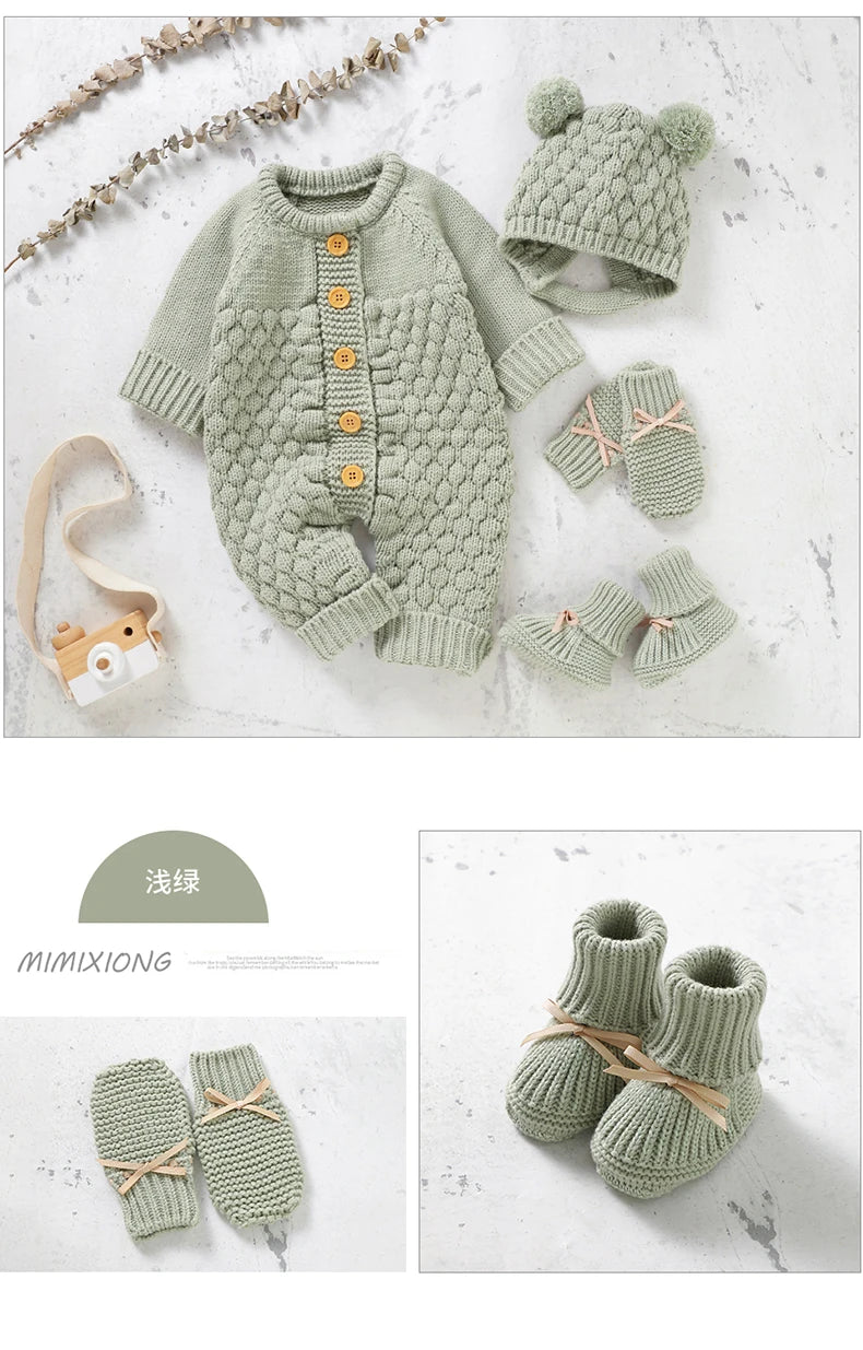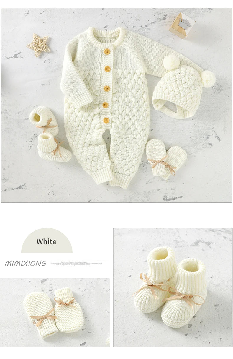 Комплект из комбинезона для новорожденного, обуви, перчаток и вязаных вещей д...