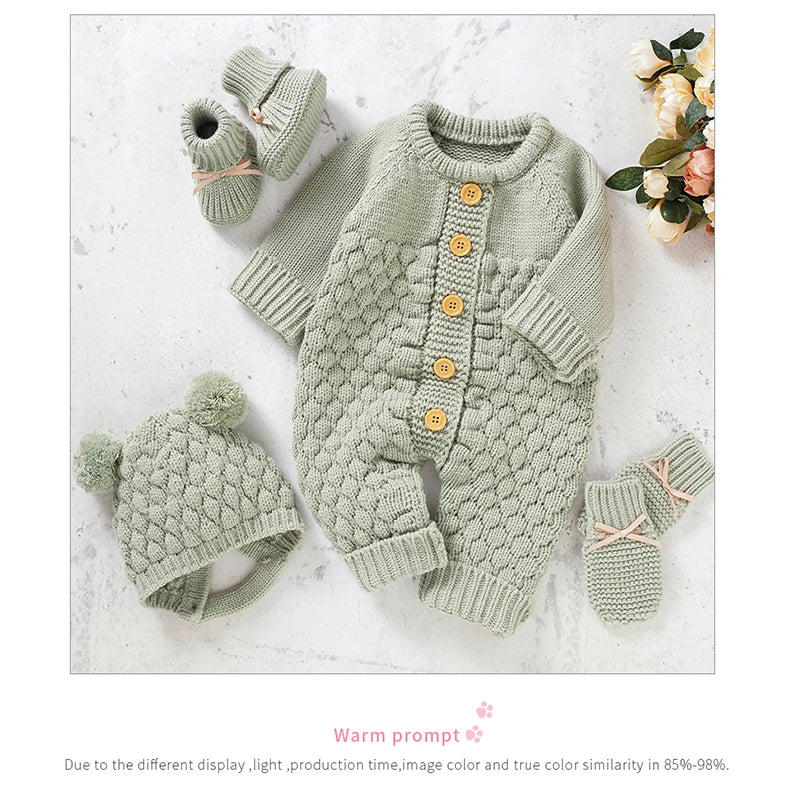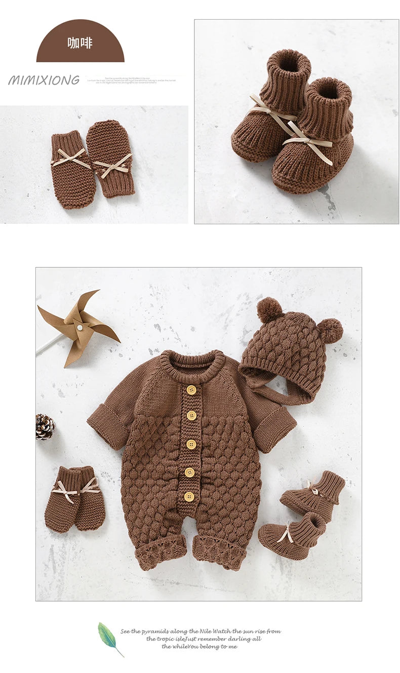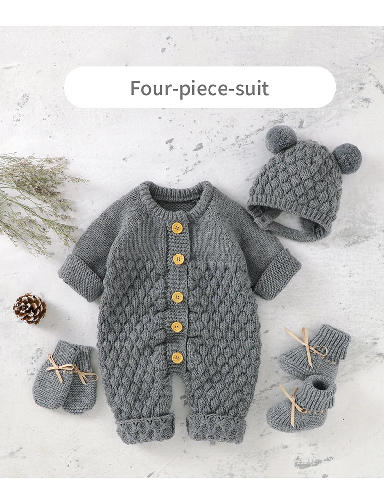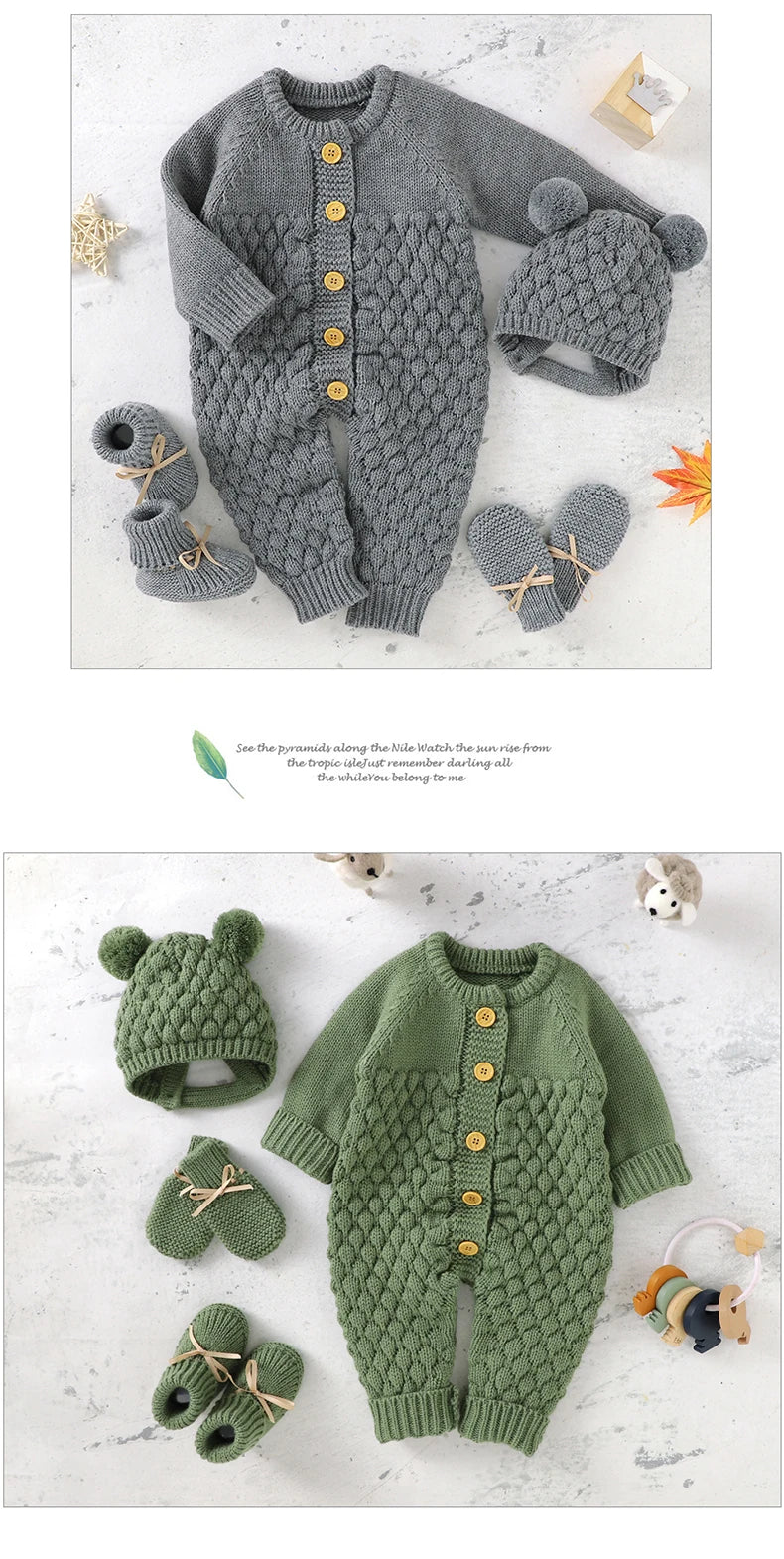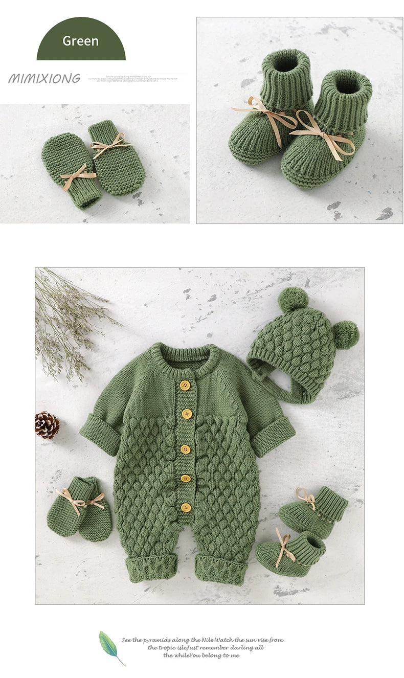 Комплект из комбинезона для новорожденного, обуви, перчаток и вязаных вещей д...