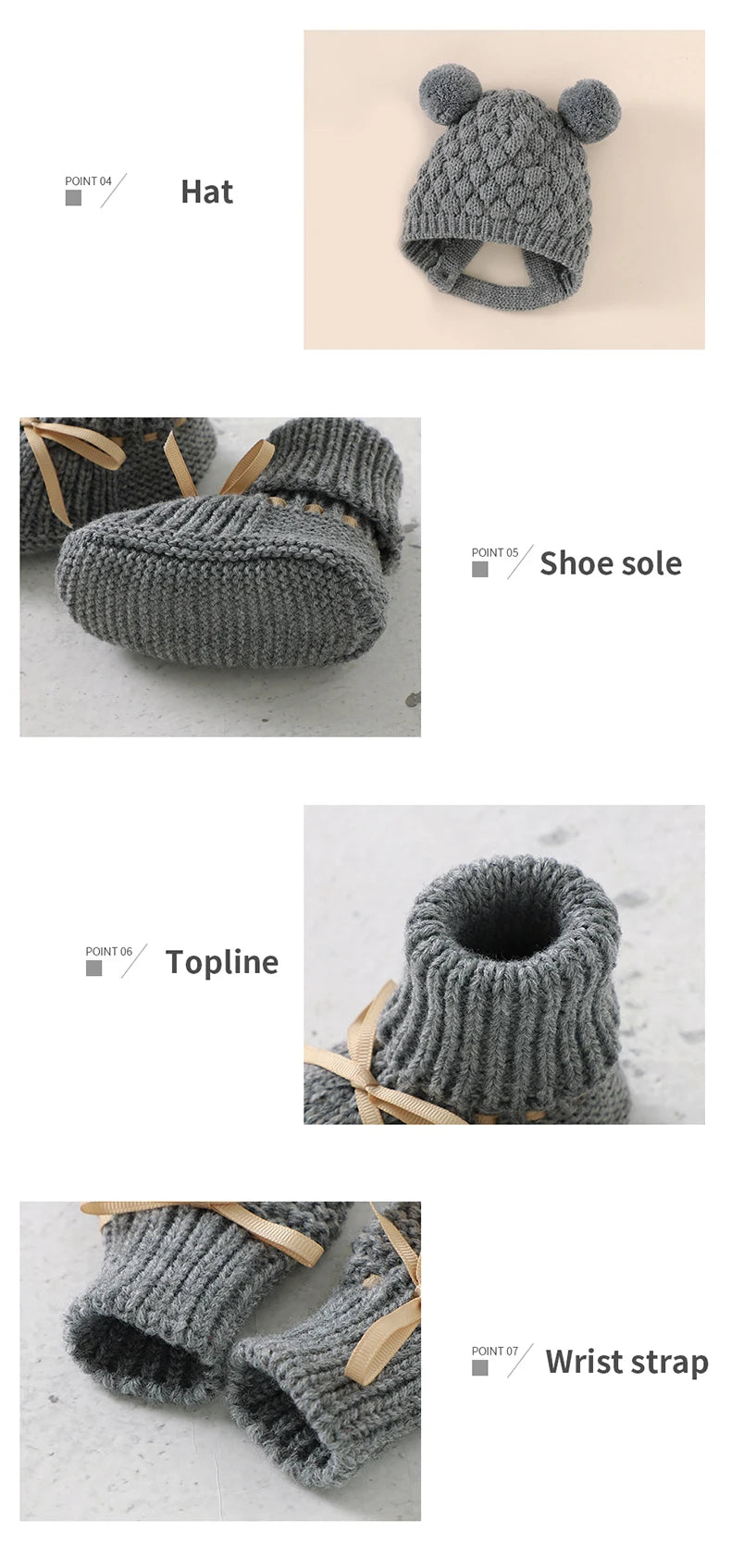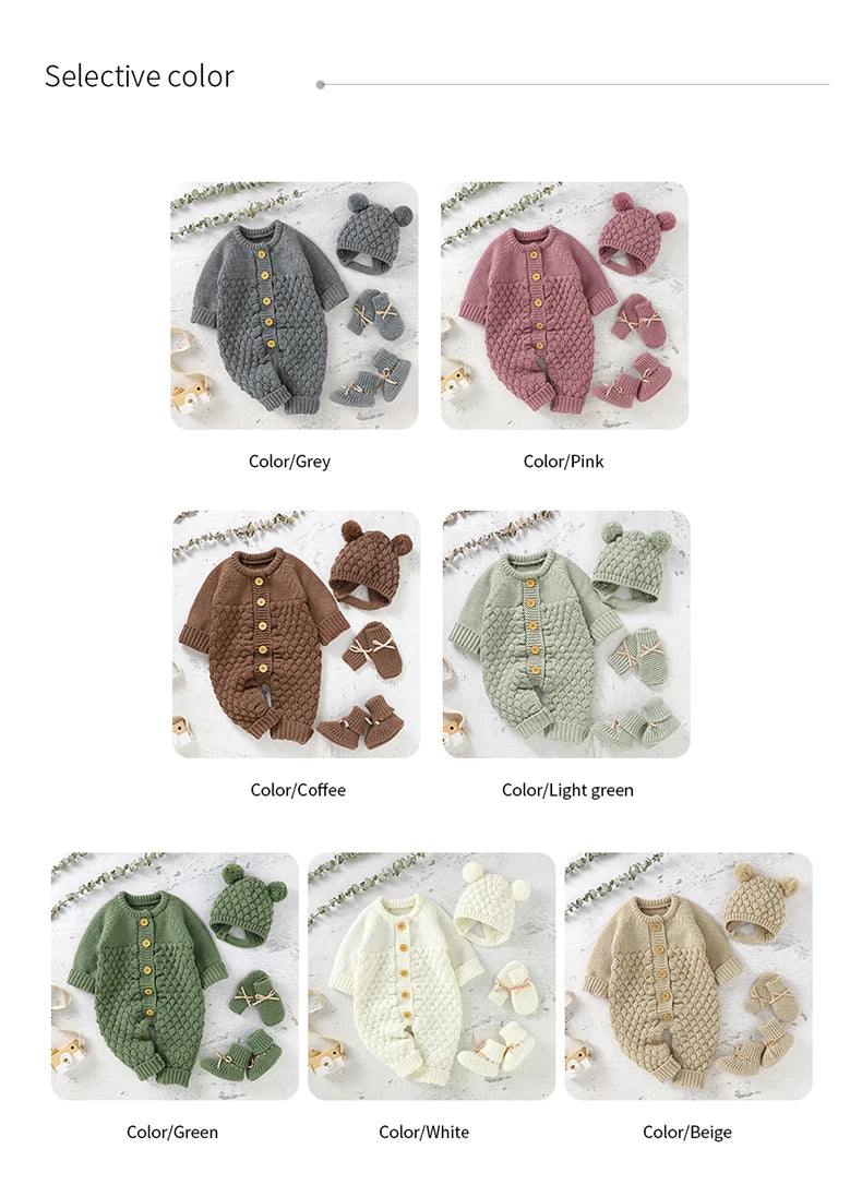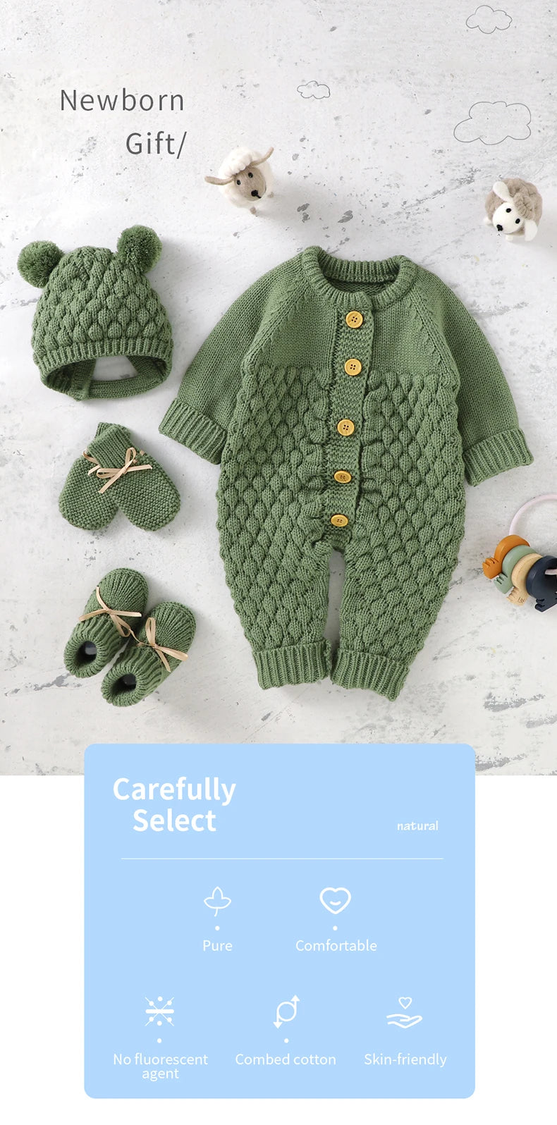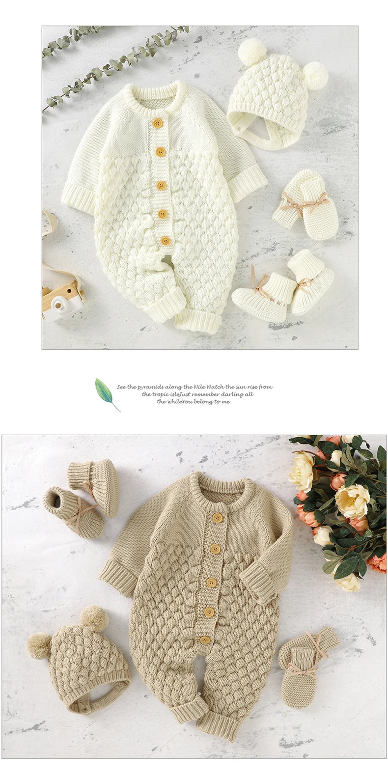 Комплект из комбинезона для новорожденного, обуви, перчаток и вязаных вещей д...