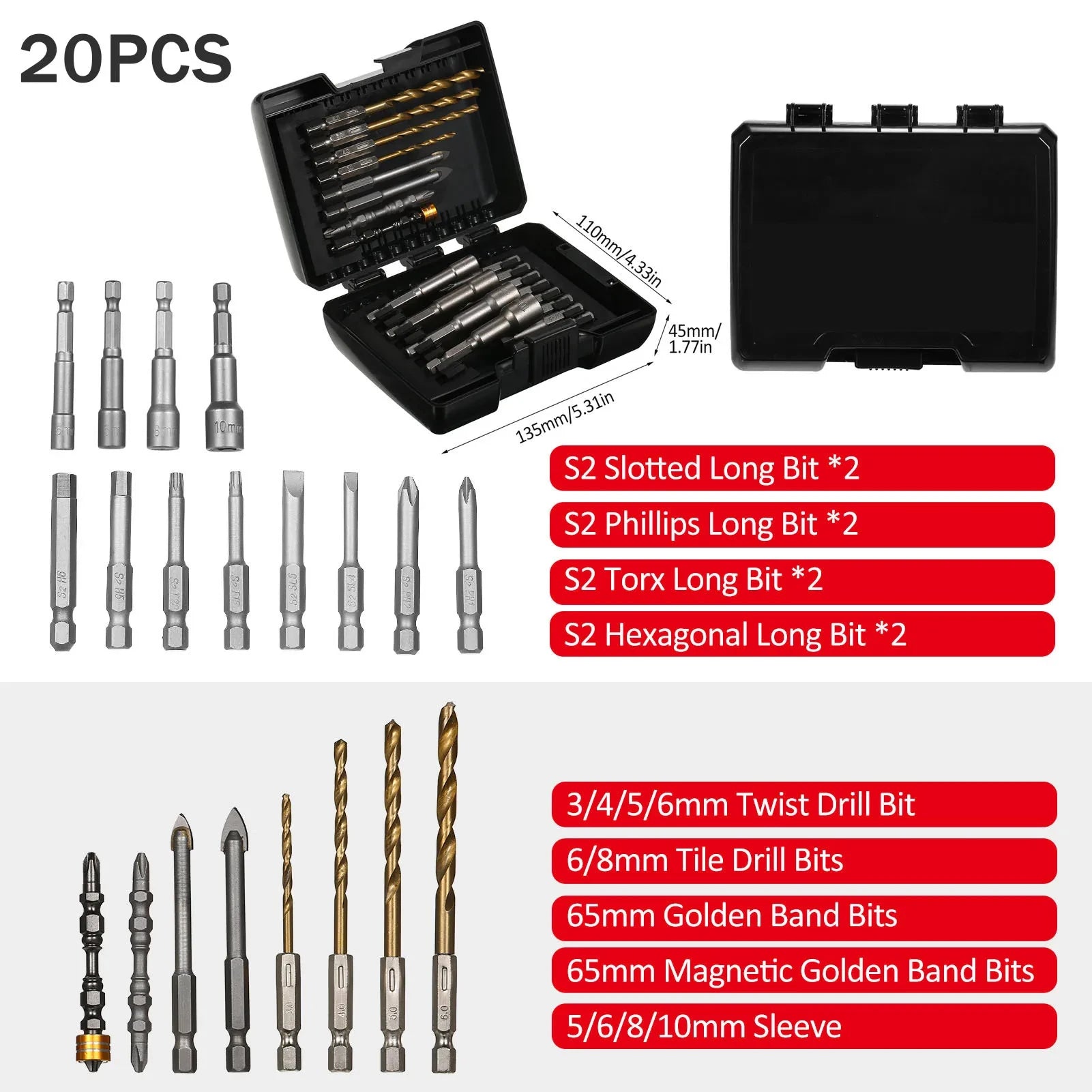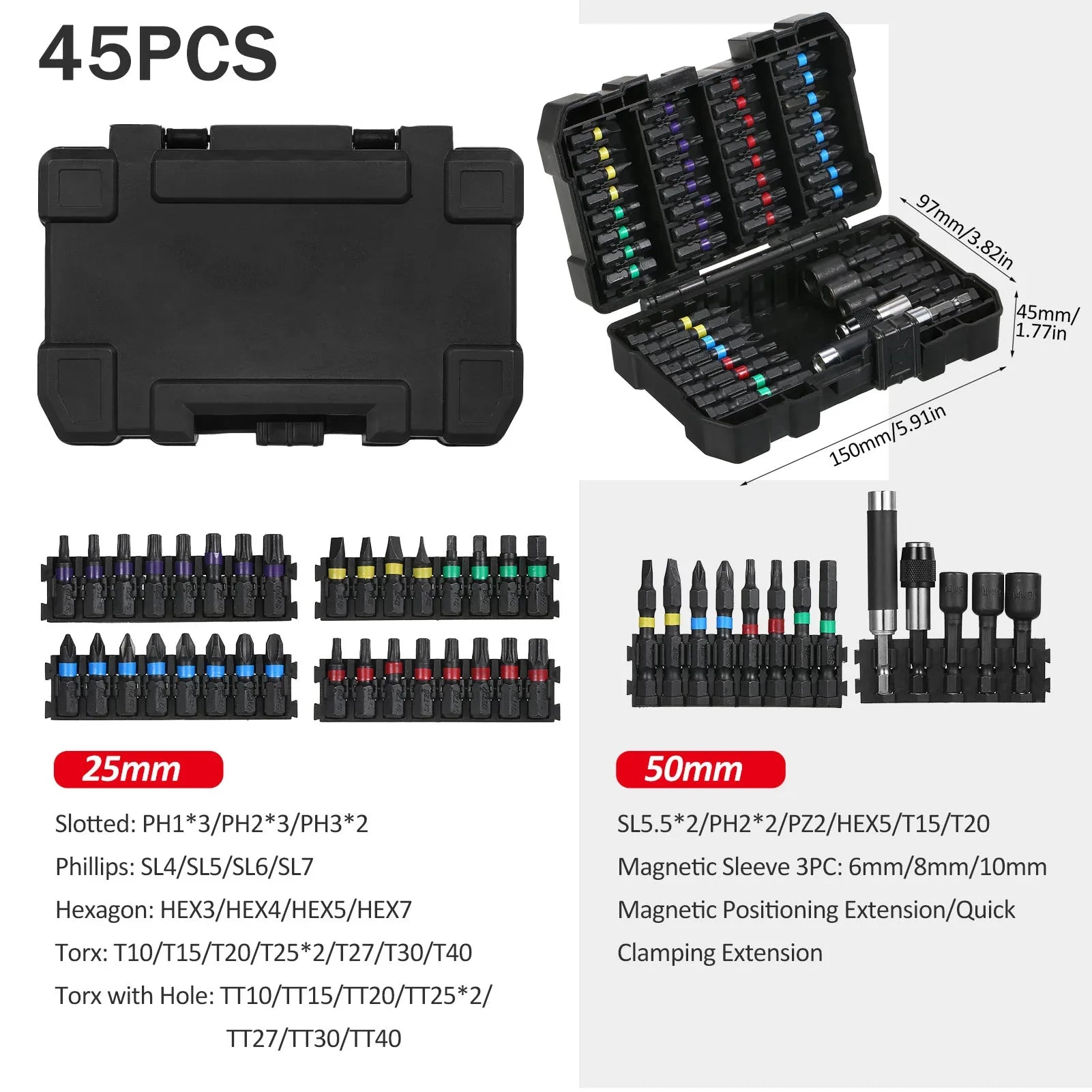 Набор из 15/20/45 шт. Набор сверл, набор отверток, набор ударных отверток для дерева, металла, стали и бе...