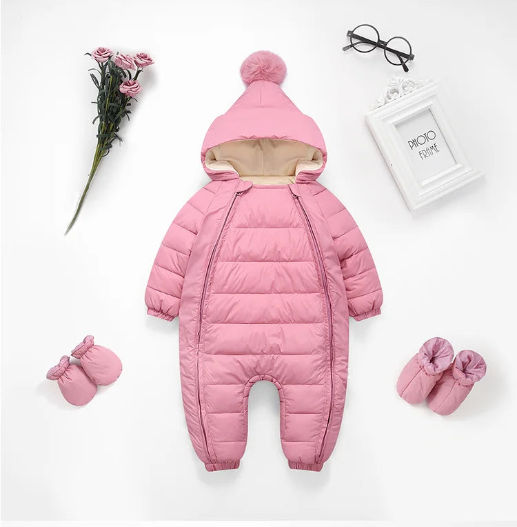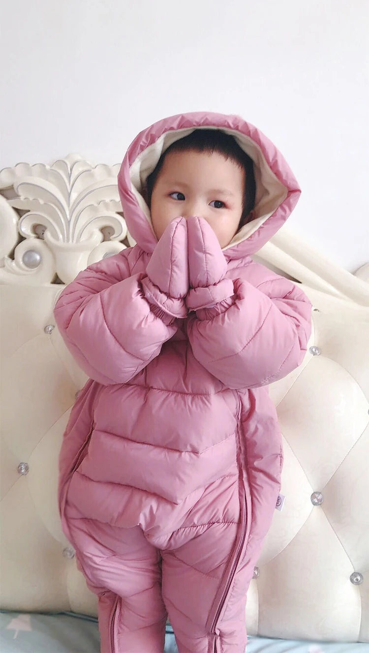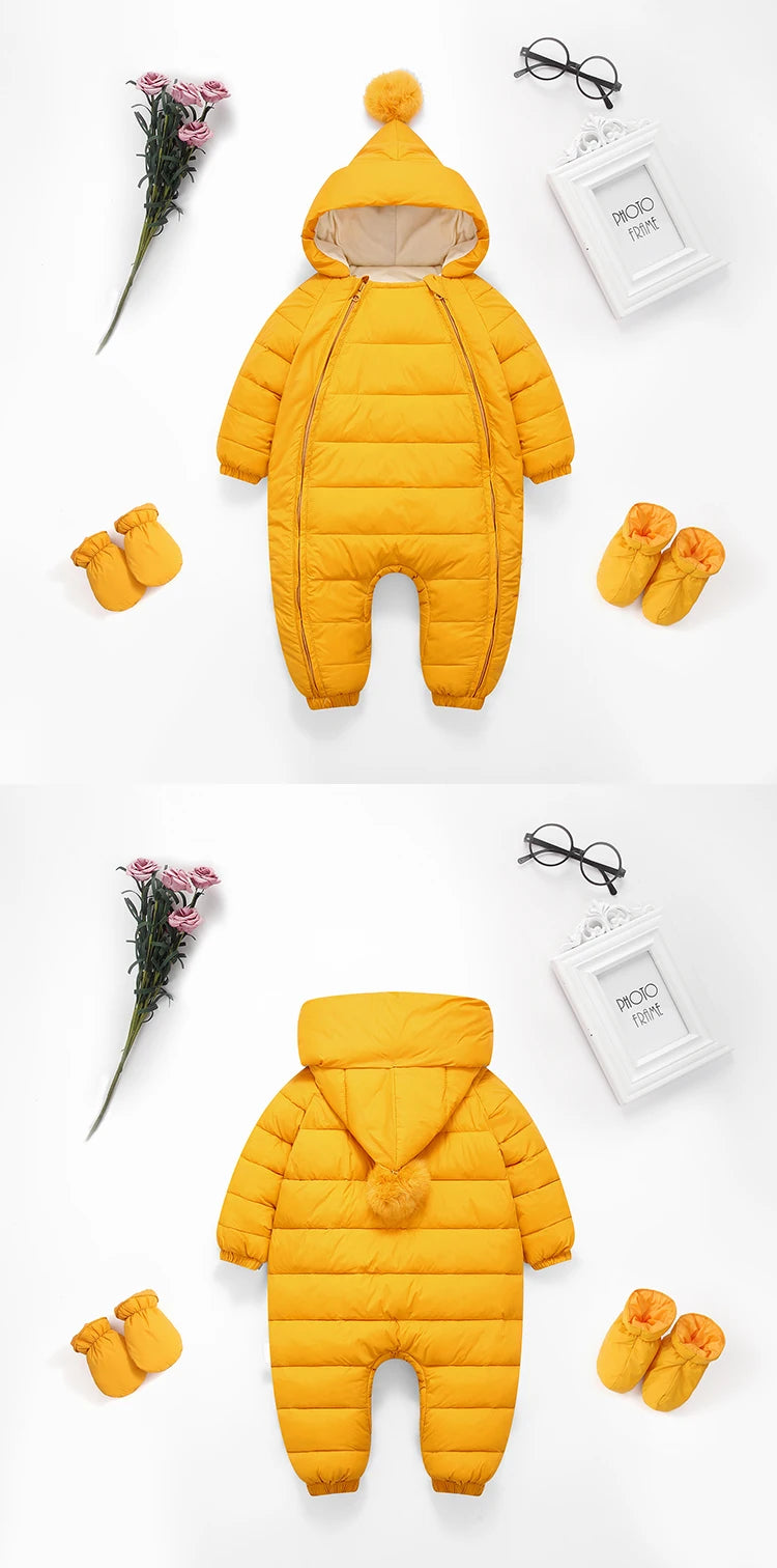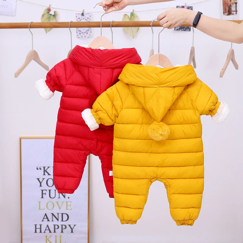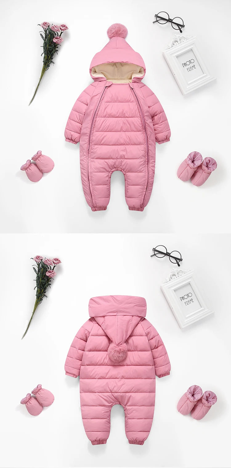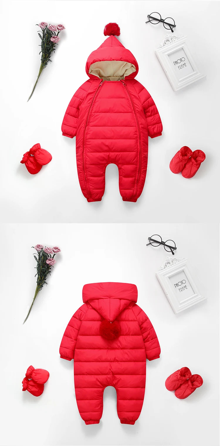 Newborn Baby Jumpsuit Hooded Plus Velvet Warm Baby Boys Snowsuit Toddler Snow...