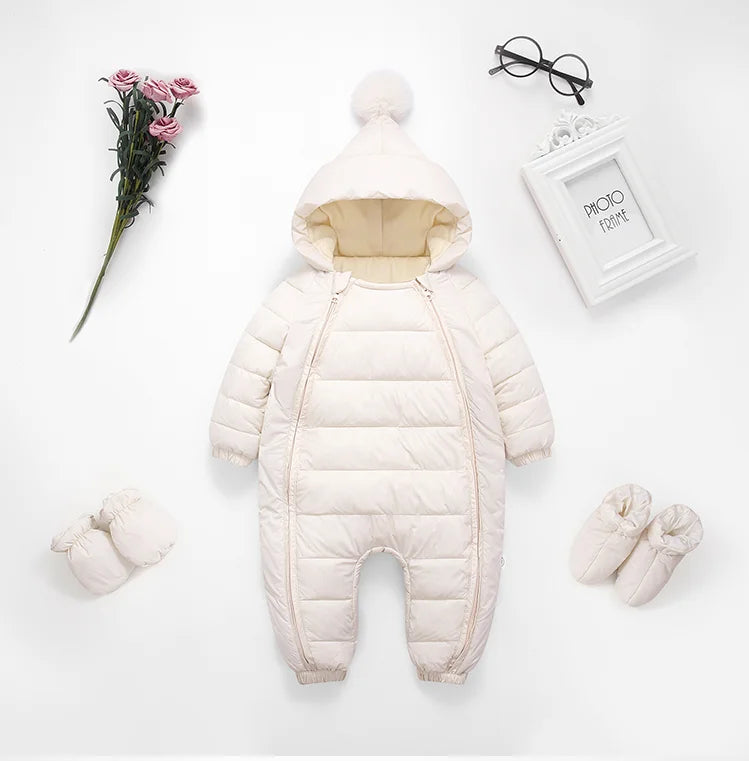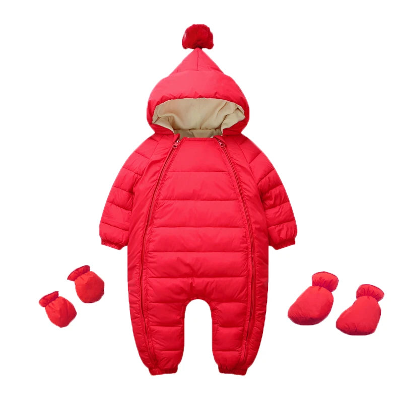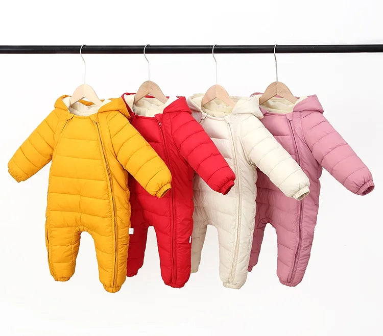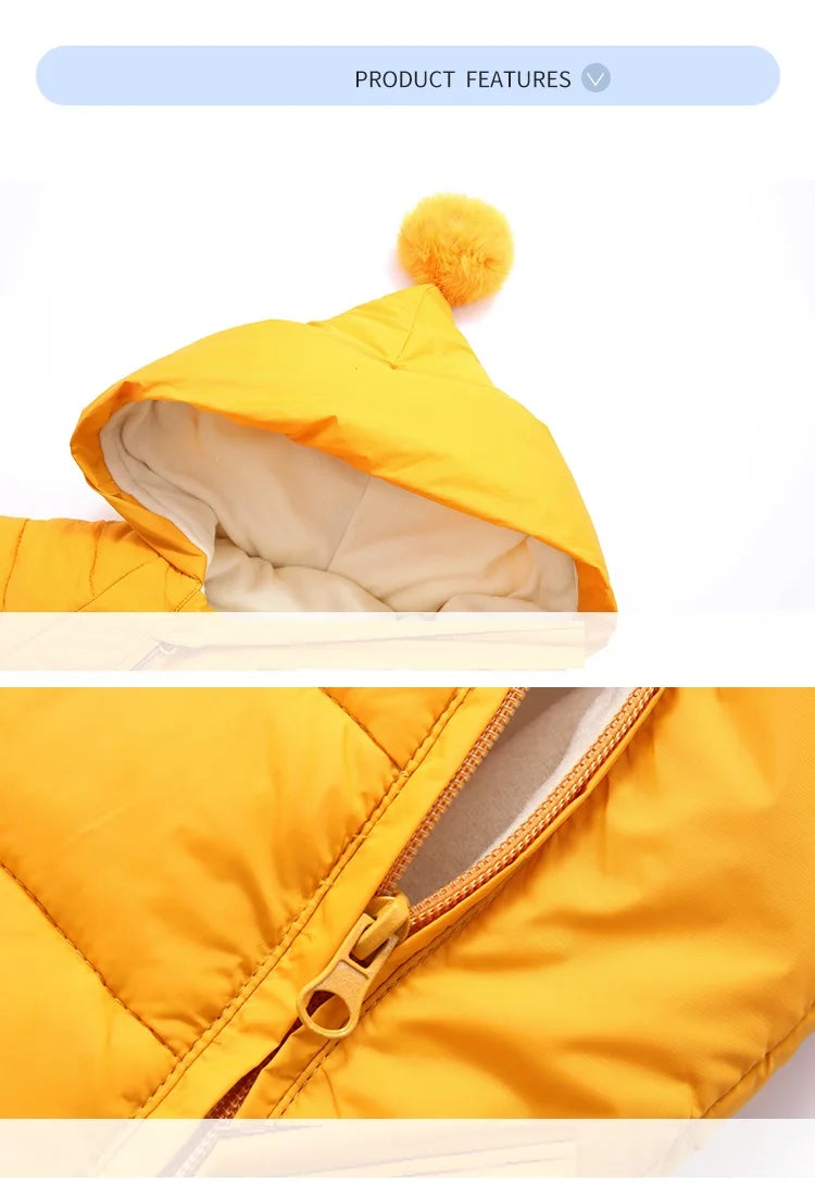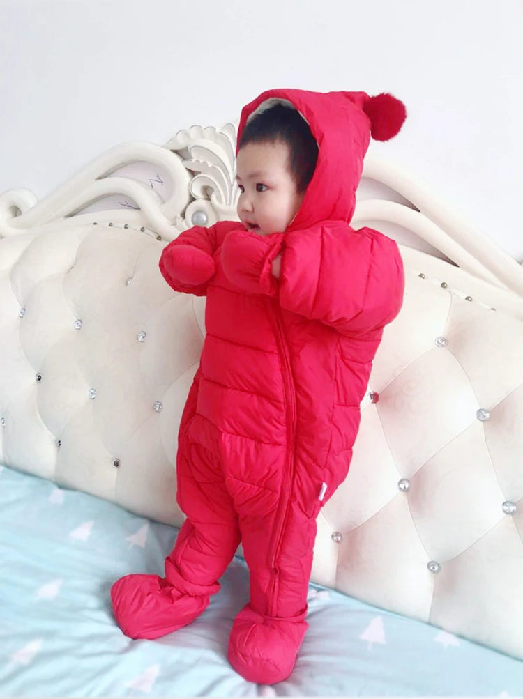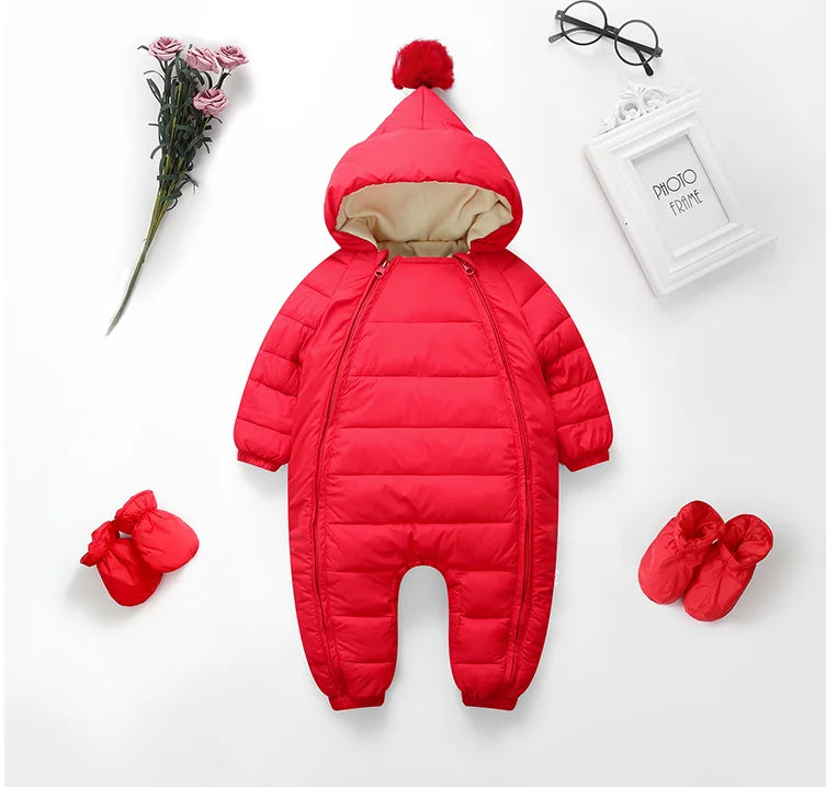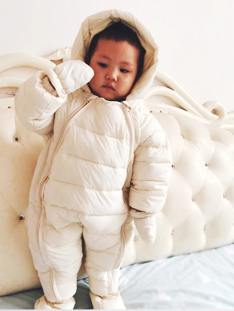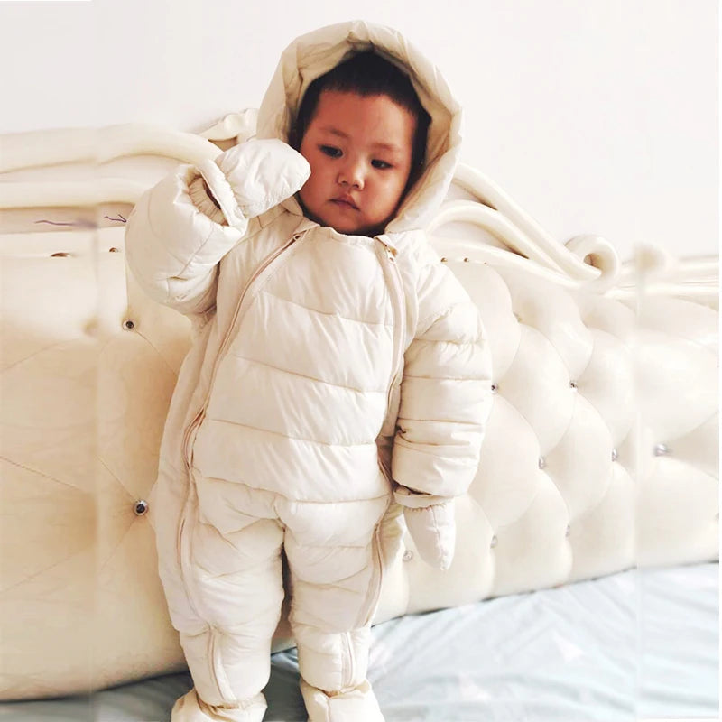 Newborn Baby Jumpsuit Hooded Plus Velvet Warm Baby Boys Snowsuit Toddler Snow...