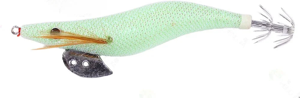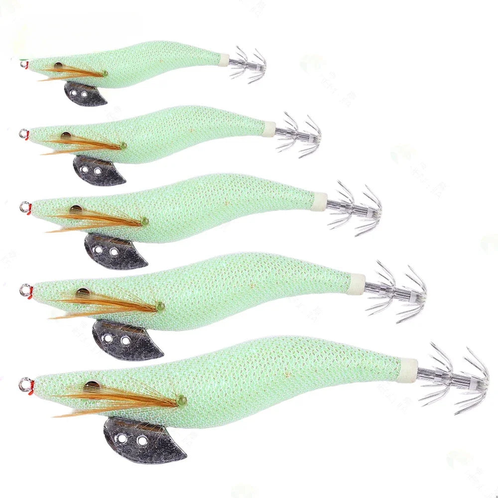 Рыболовная приманка Креветка Белая светящаяся деревянная джиг-приманка Коробчатая жесткая приманка Морская рыбалка Кальмар Осьминог Каракатица Крючок Оснастка Япония