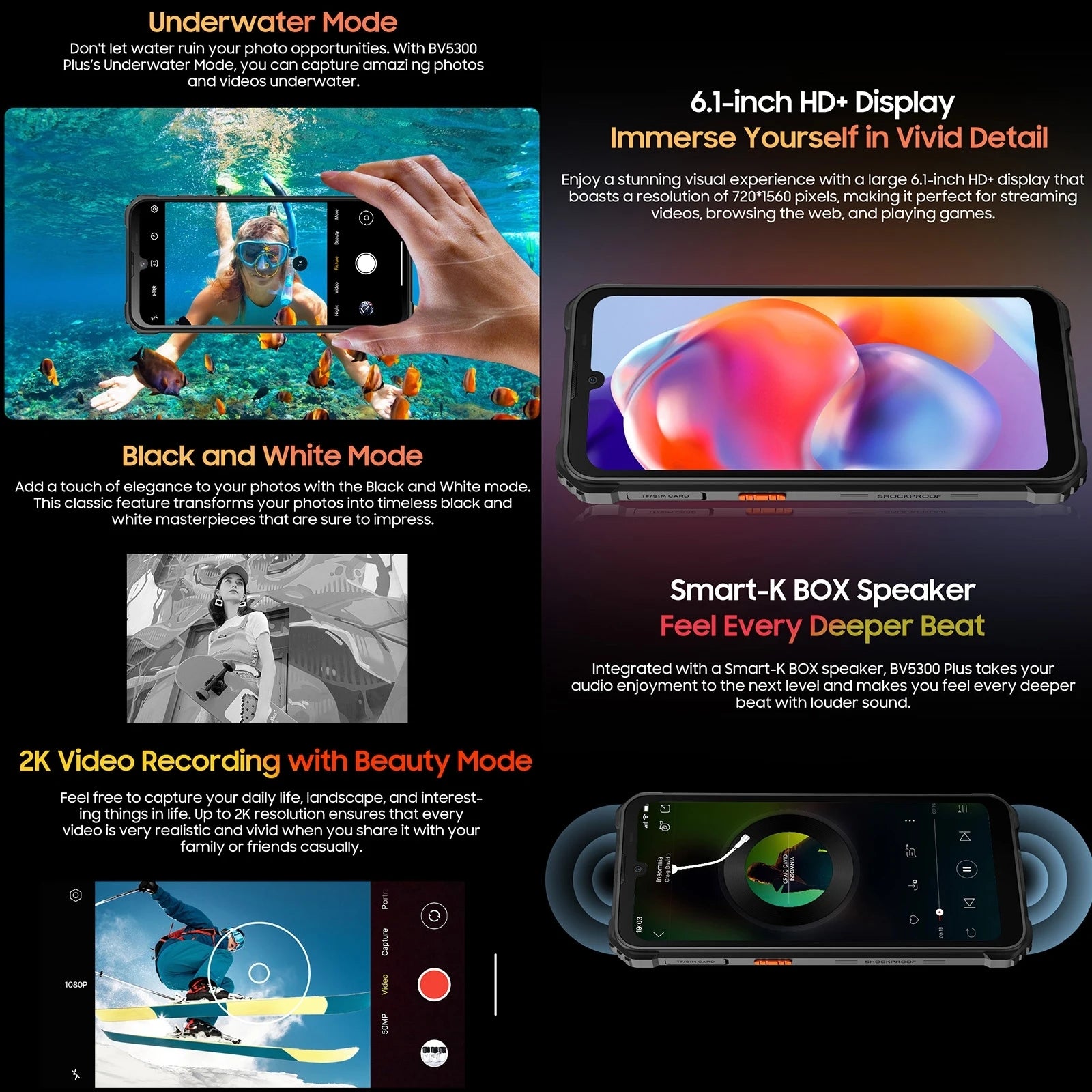 Blackview BV5300 Plus прочный смартфон 8 ГБ 128 ГБ Android 13 Mobile 6.1'' HD дисплей 13 МП камера 6580 м...
