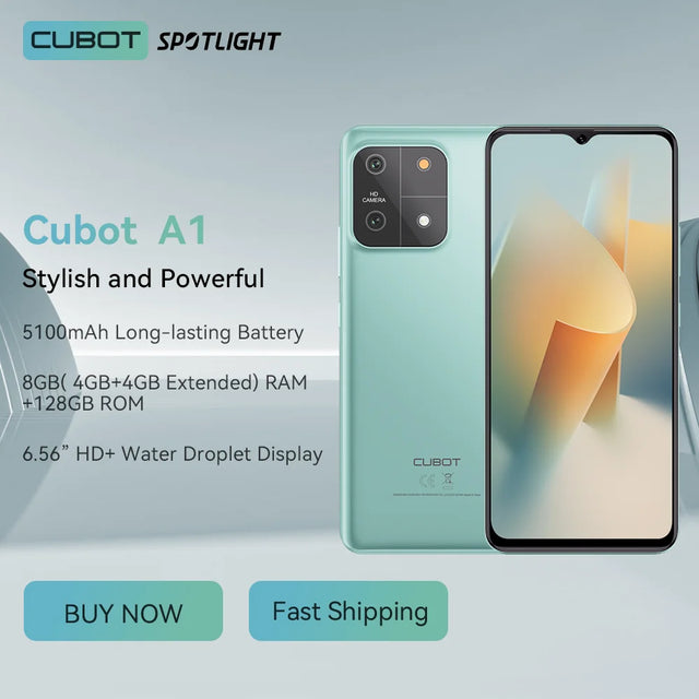 Cubot A1, смартфон Android 13, восьмиядерный процессор, 8 ГБ ОЗУ (4 ГБ+4 ГБ), 128 ГБ ПЗУ, экран HD+ 6,56 ...