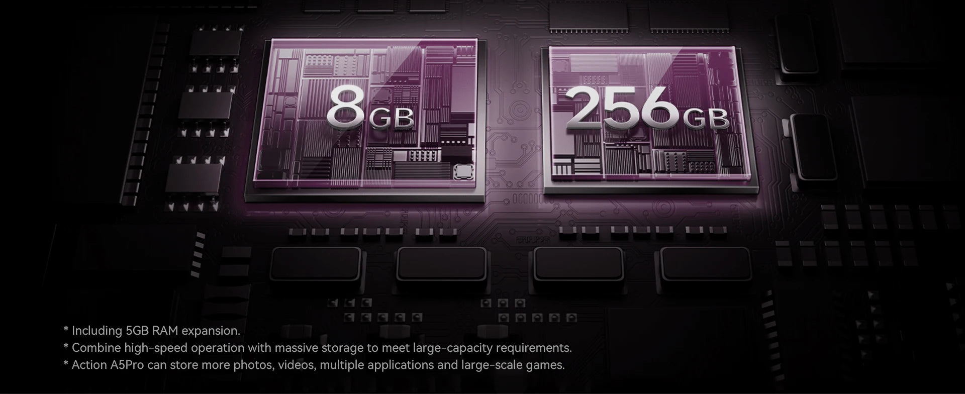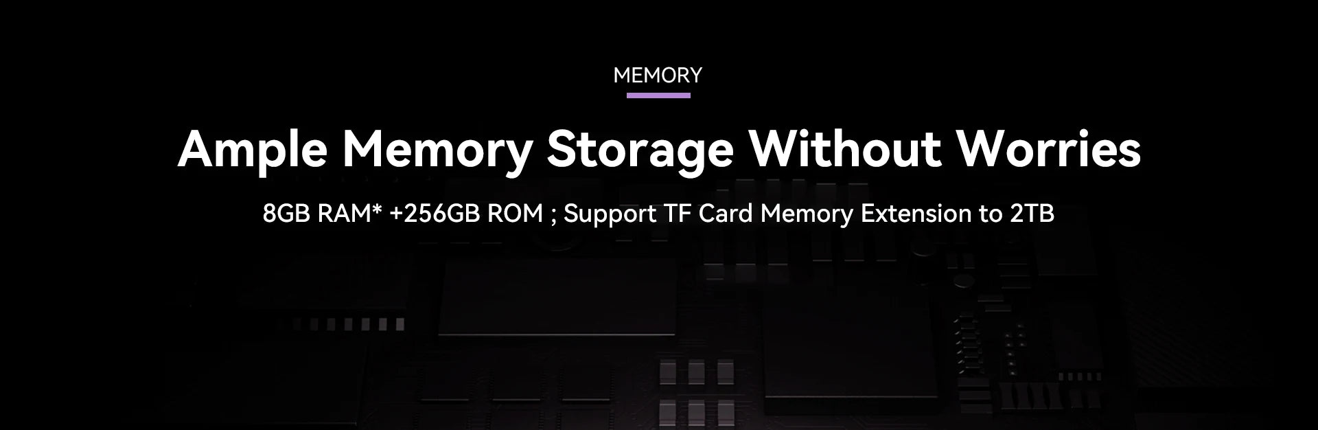 ОЗУ и ПЗУ: 8 ГБ (3 ГБ + до 5 ГБ расширенной ОЗУ) + 256 ГБ ПЗУ