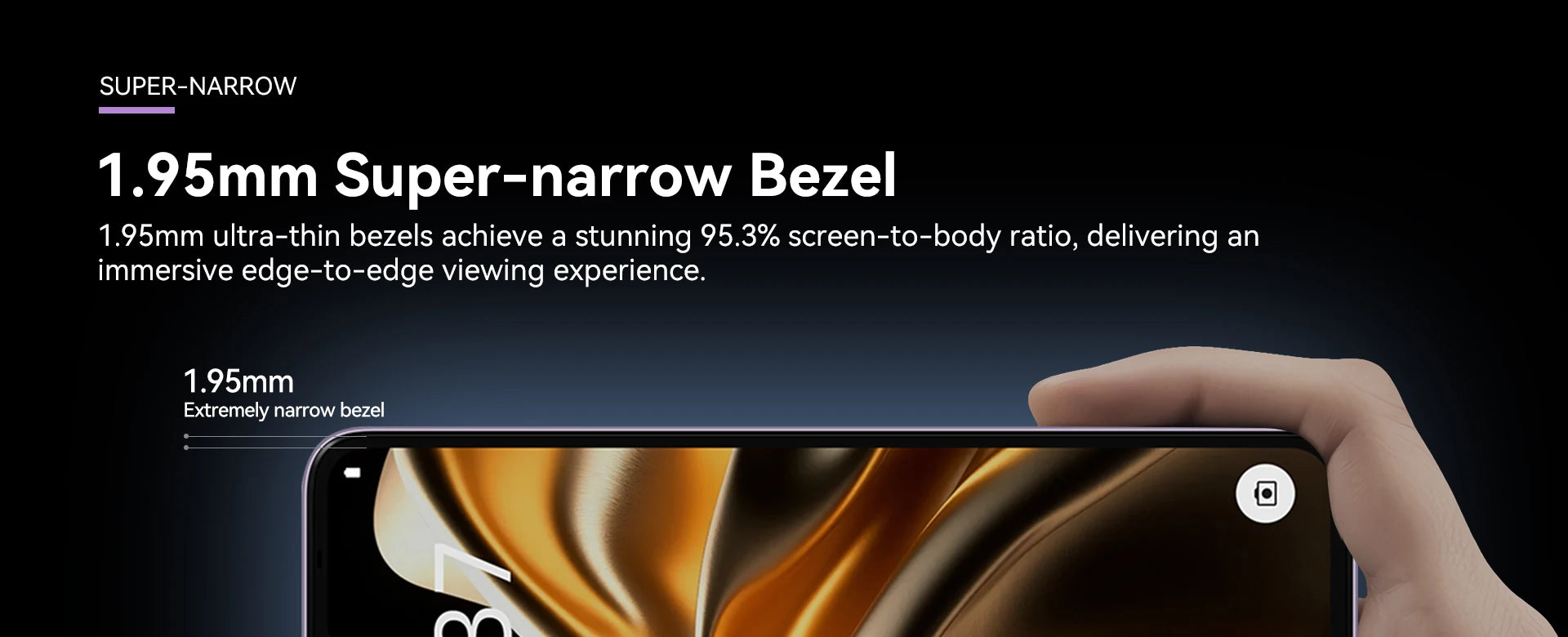 1,95-миллиметровая ультратонкая рамка, соотношение экрана к корпусу 95,3%, ультратонкий корпус толщиной 8,2 мм