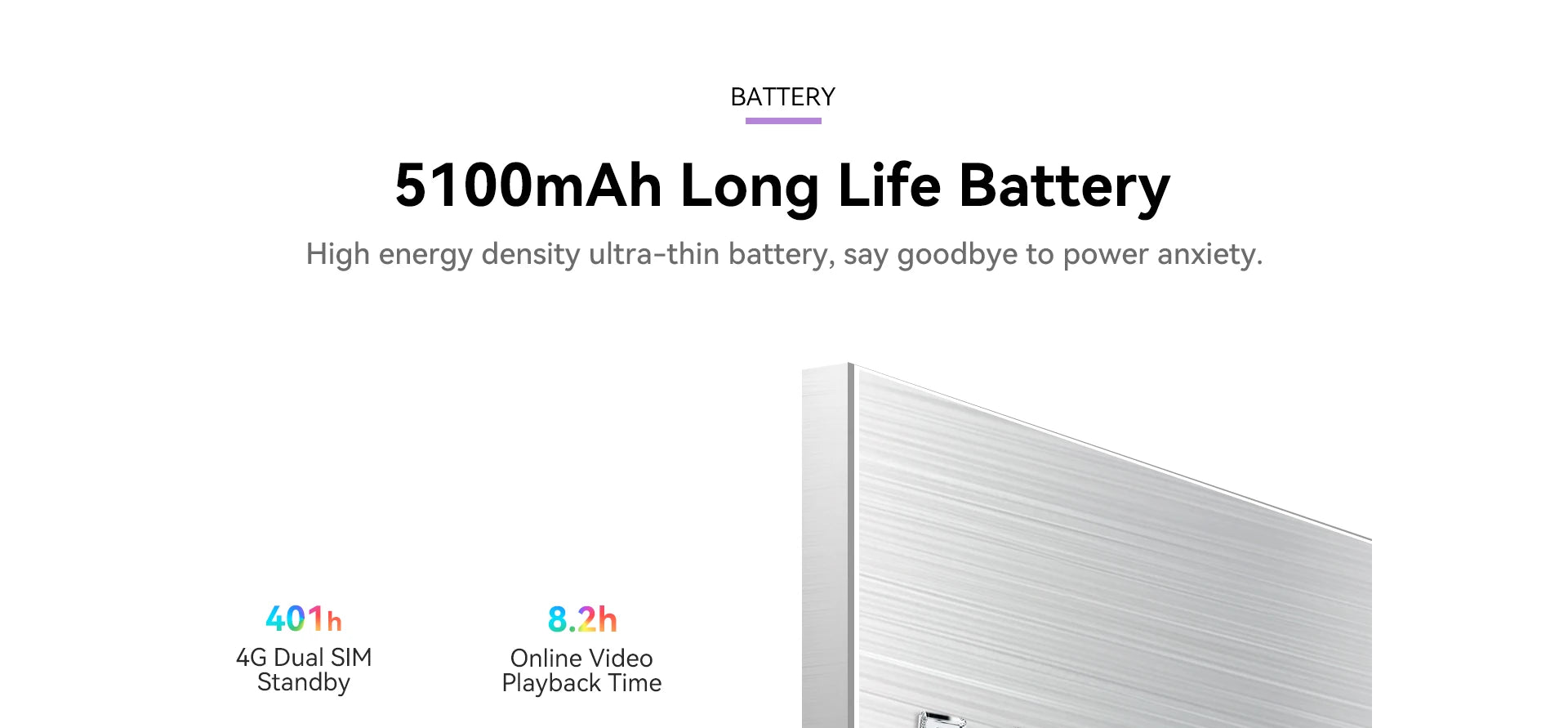 Время воспроизведения онлайн-видео: 8,2 ч, режим ожидания 4G Dual SIM: 401 ч