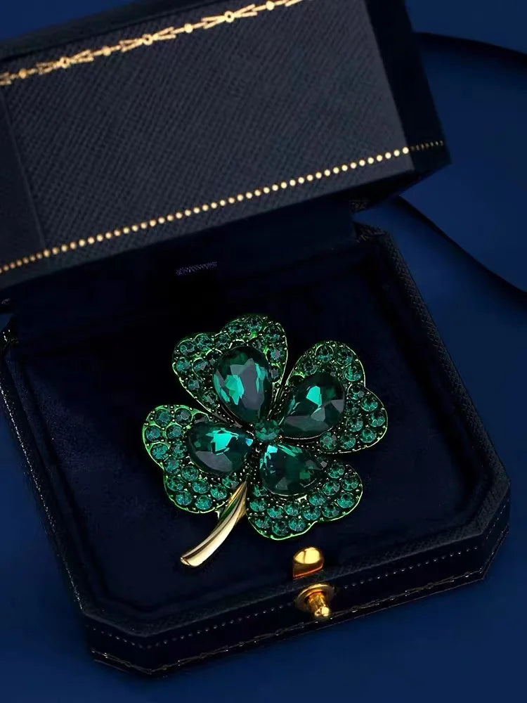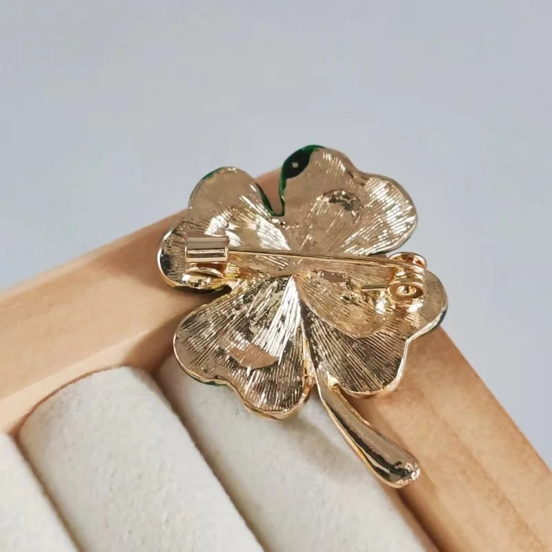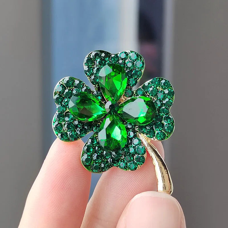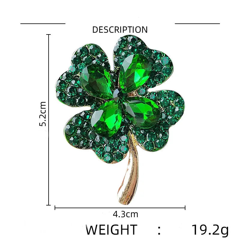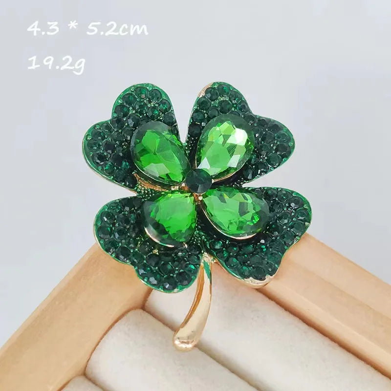 Green Red Crystal Rhinestone Four Leaf Clover Flower Brooches Lapel Pins Jewe...