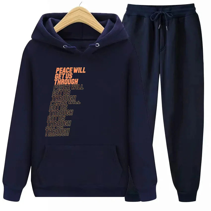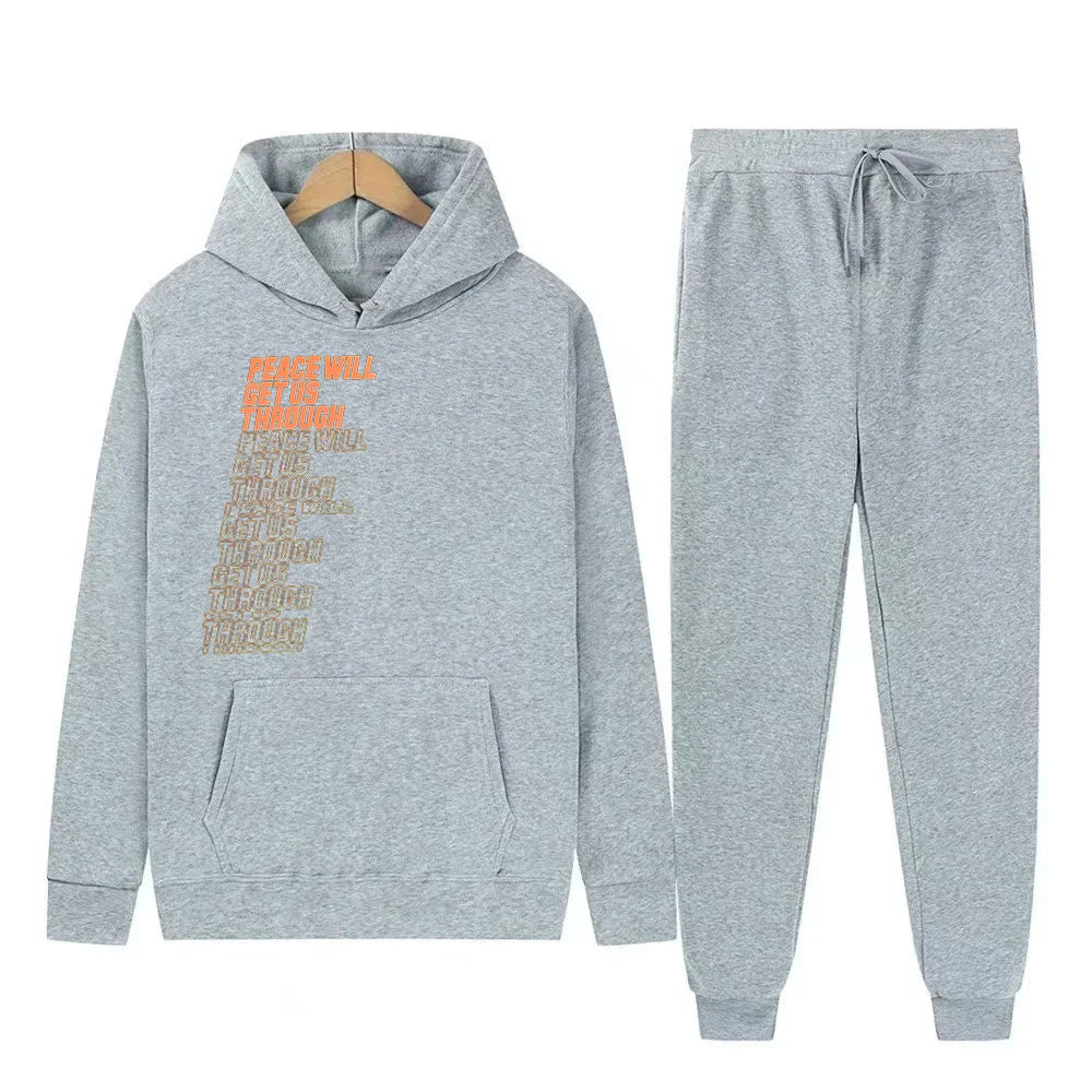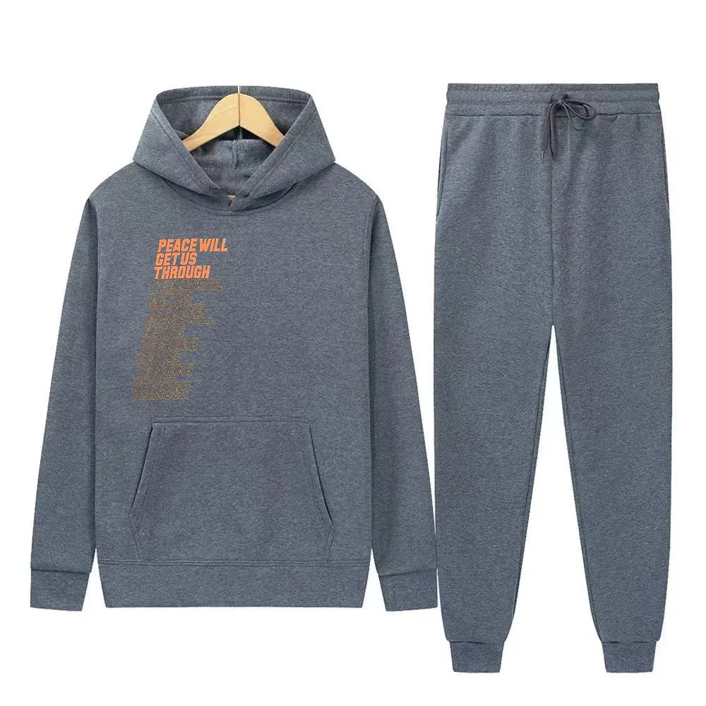 Мужской повседневный комплект из толстовки с капюшоном и повседневных брюк, м...