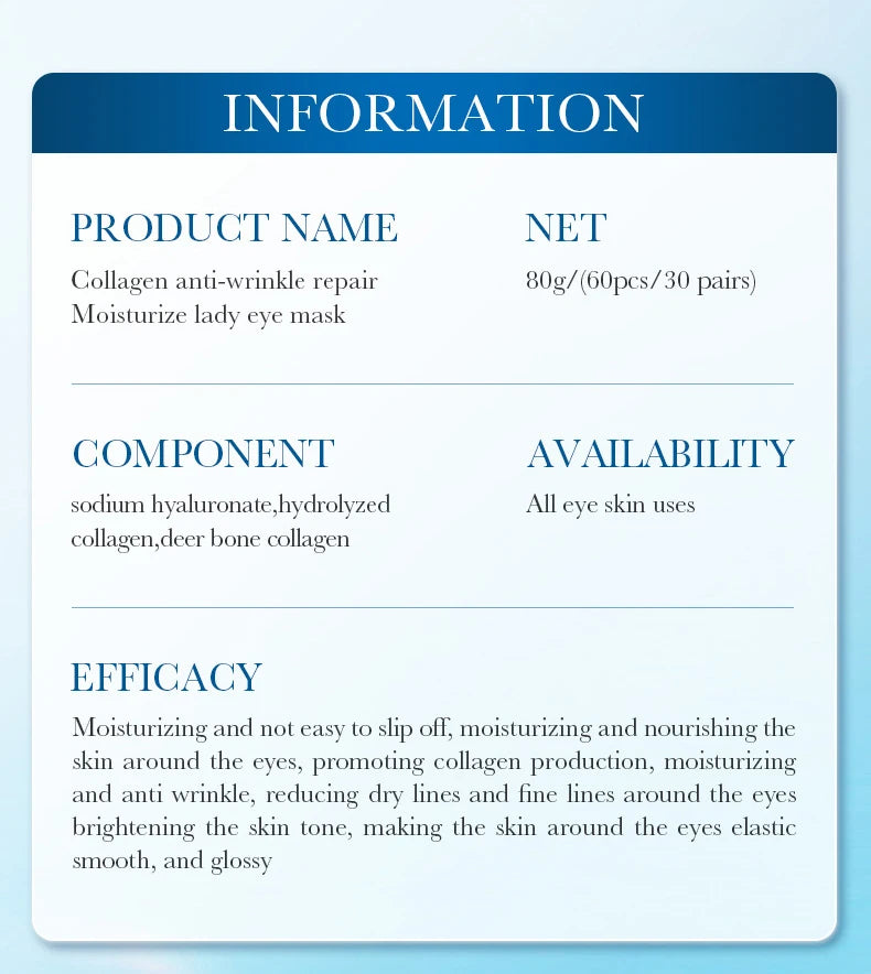 60 шт./упаковка, кристальная коллагеновая маска для глаз, от темных кругов, мешков под глазами, укрепляющ...