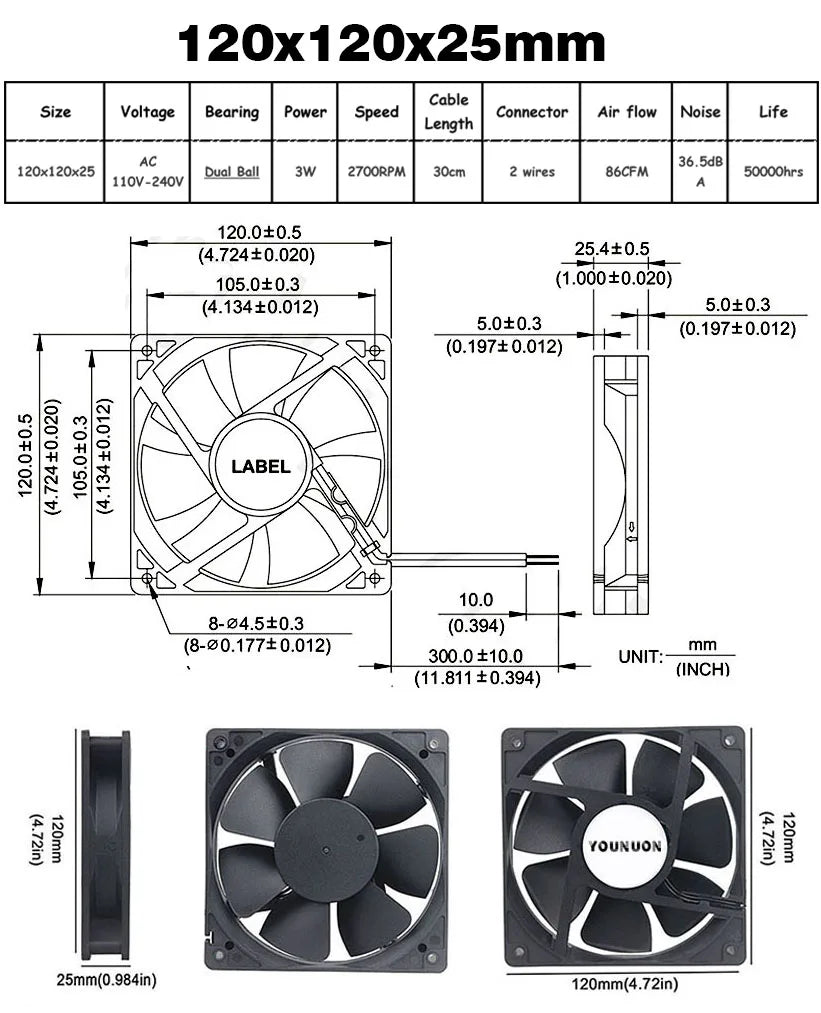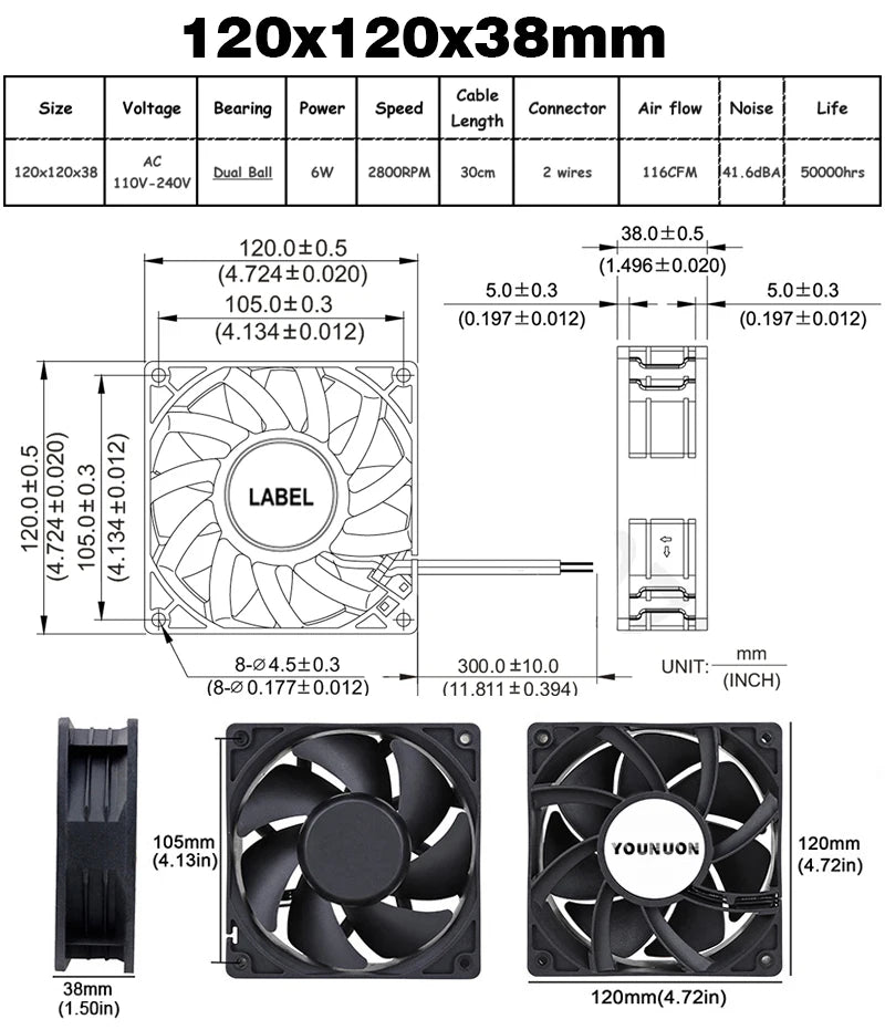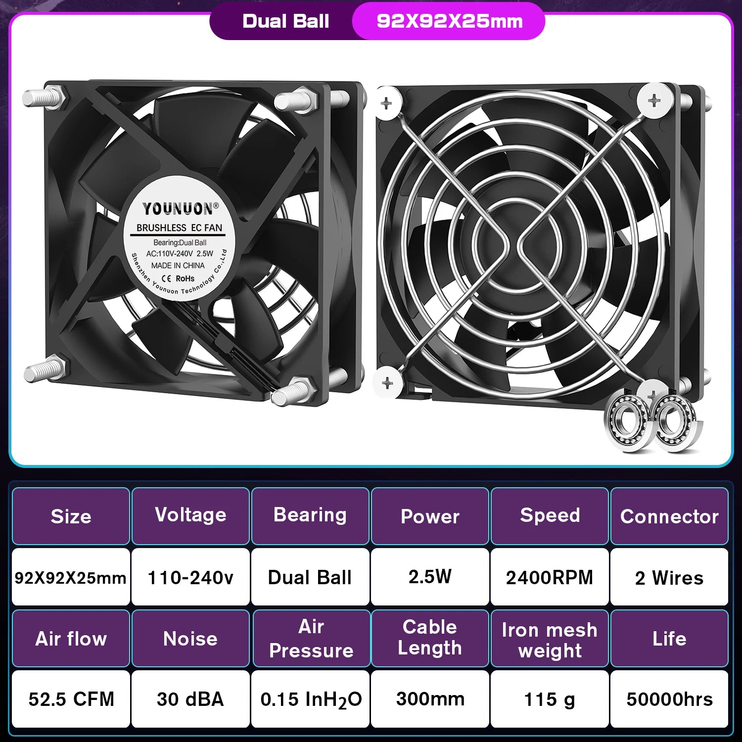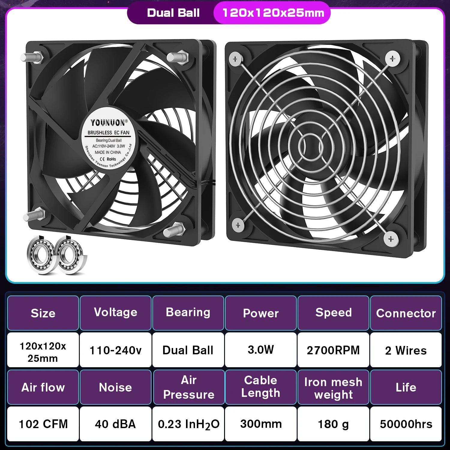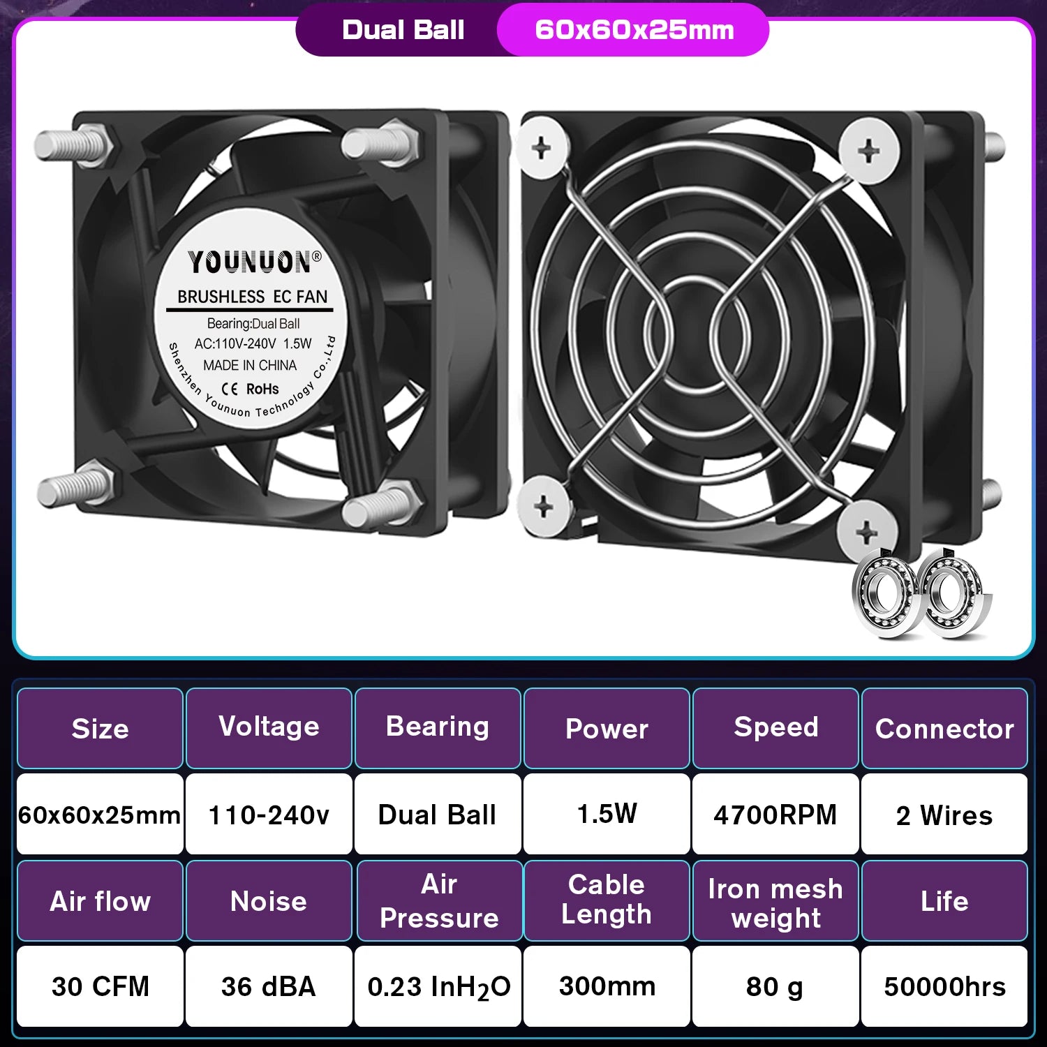 1PCS EC Бесщеточный вентилятор 6025/8025/9225/12025/12038/12032 AC 110V 115V 120V 220V 240V Охлаждающий в...