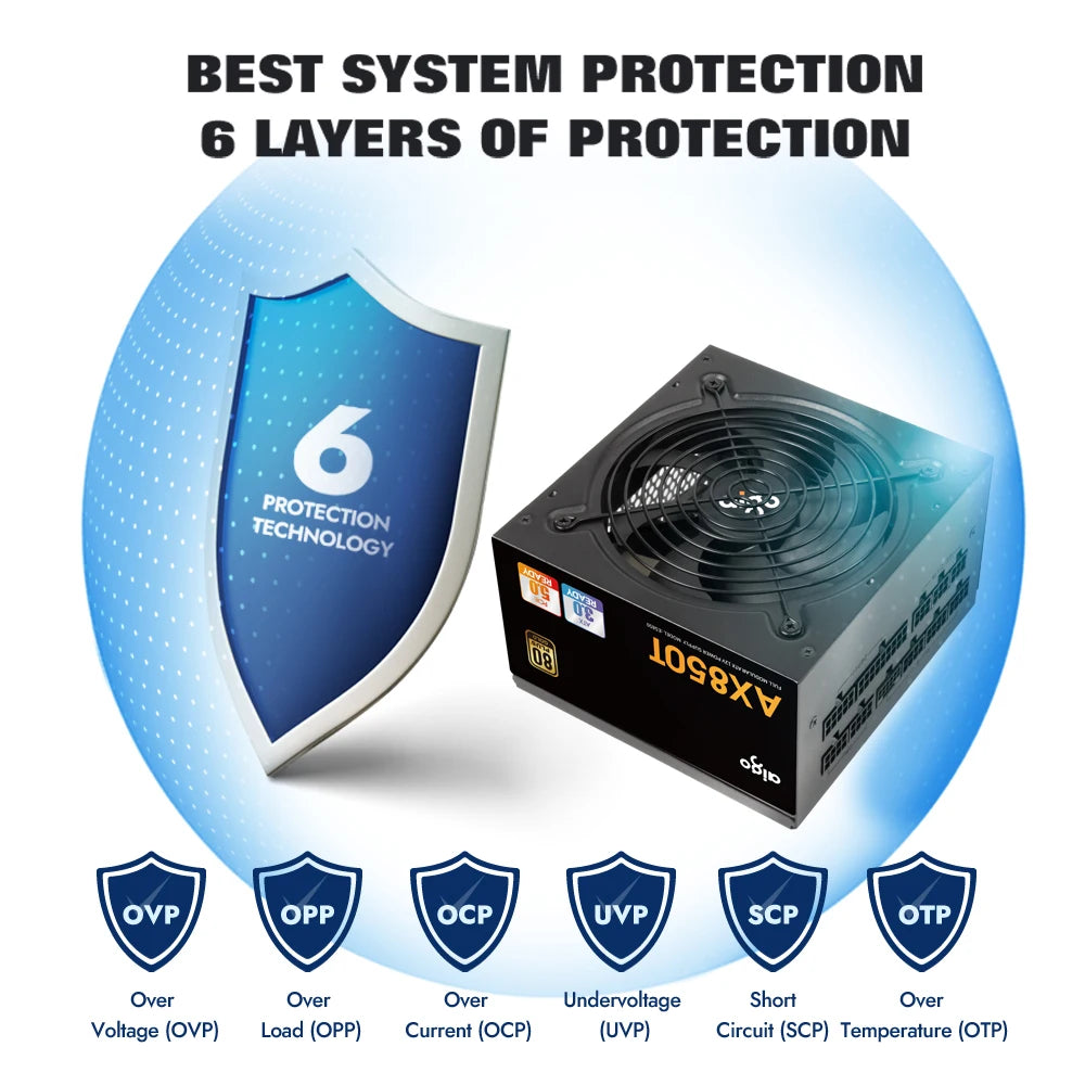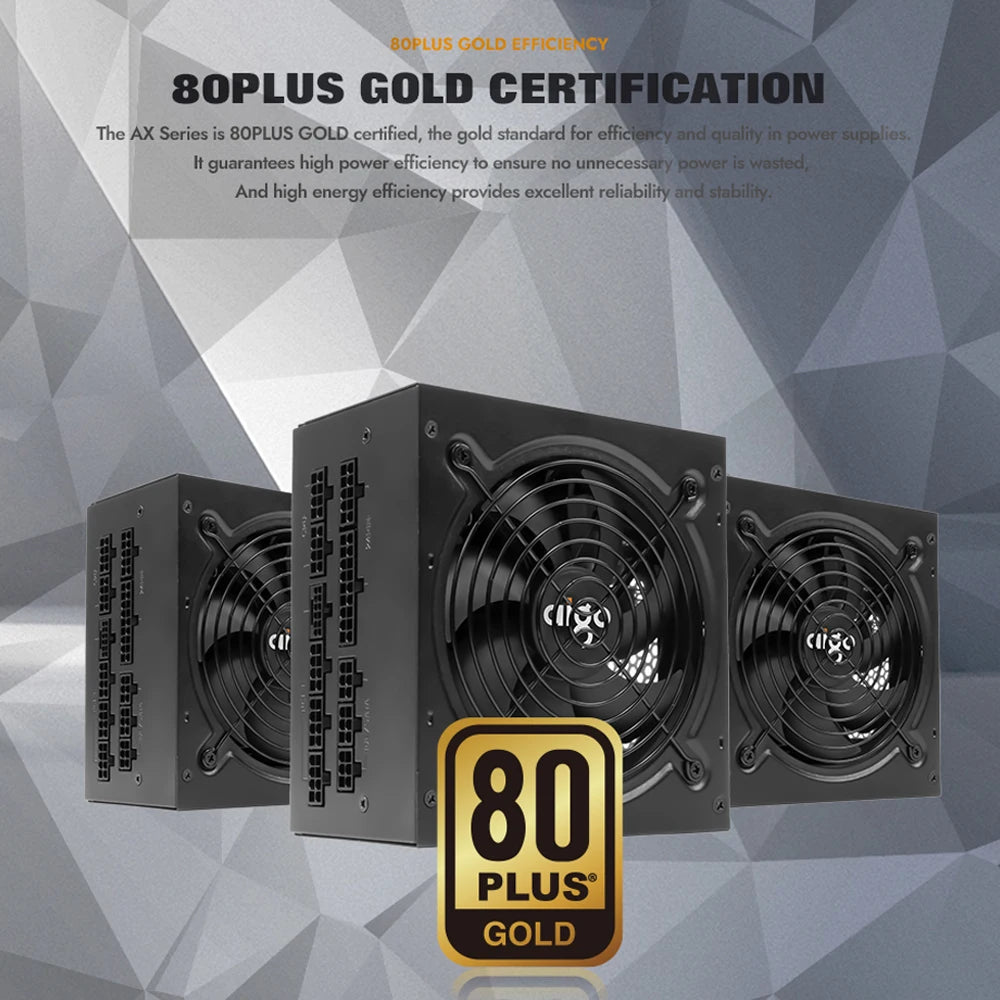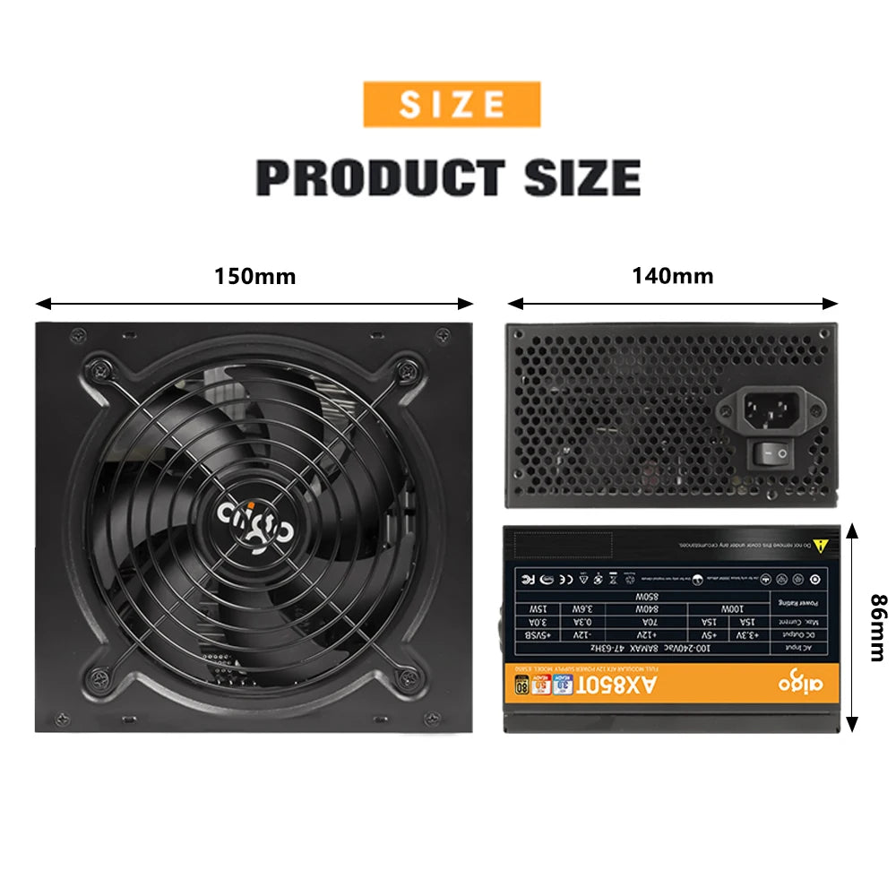 Блок питания Aigo 850 Вт PCIE 5.0 ATX 3.0 полностью модульный игровой блок питания с сертификатом 80Plus Gold для видеокарт NVIDIA RTX 20/30/40 AMD