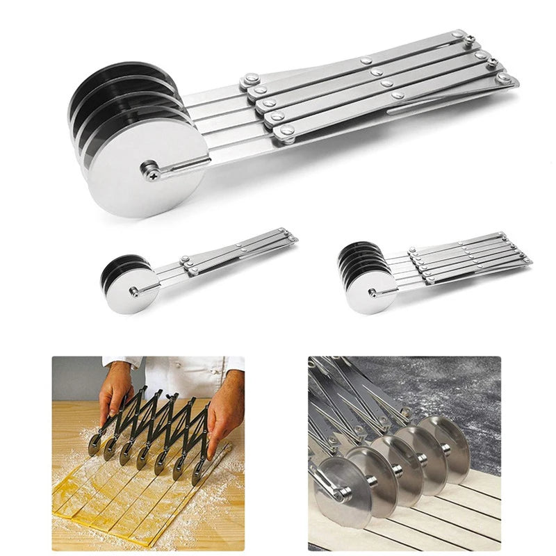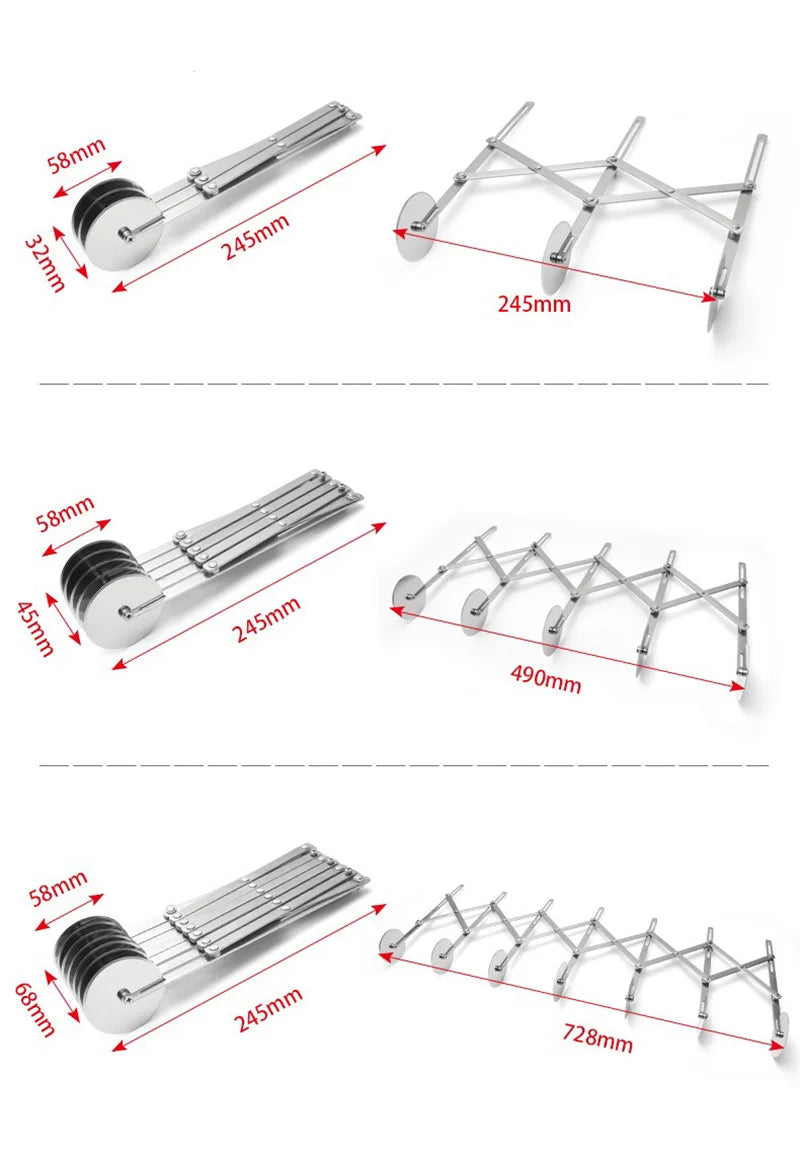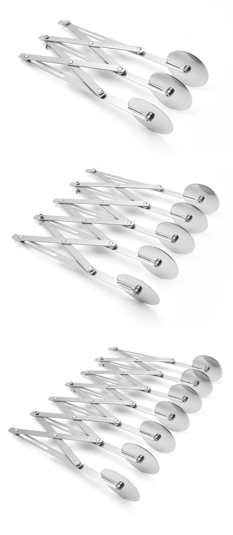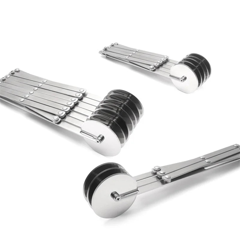 Нож для пиццы с раздвижным роликом из нержавеющей стали.
