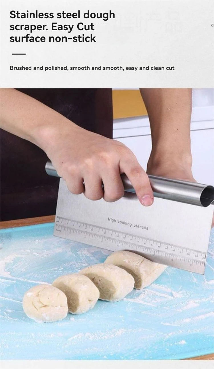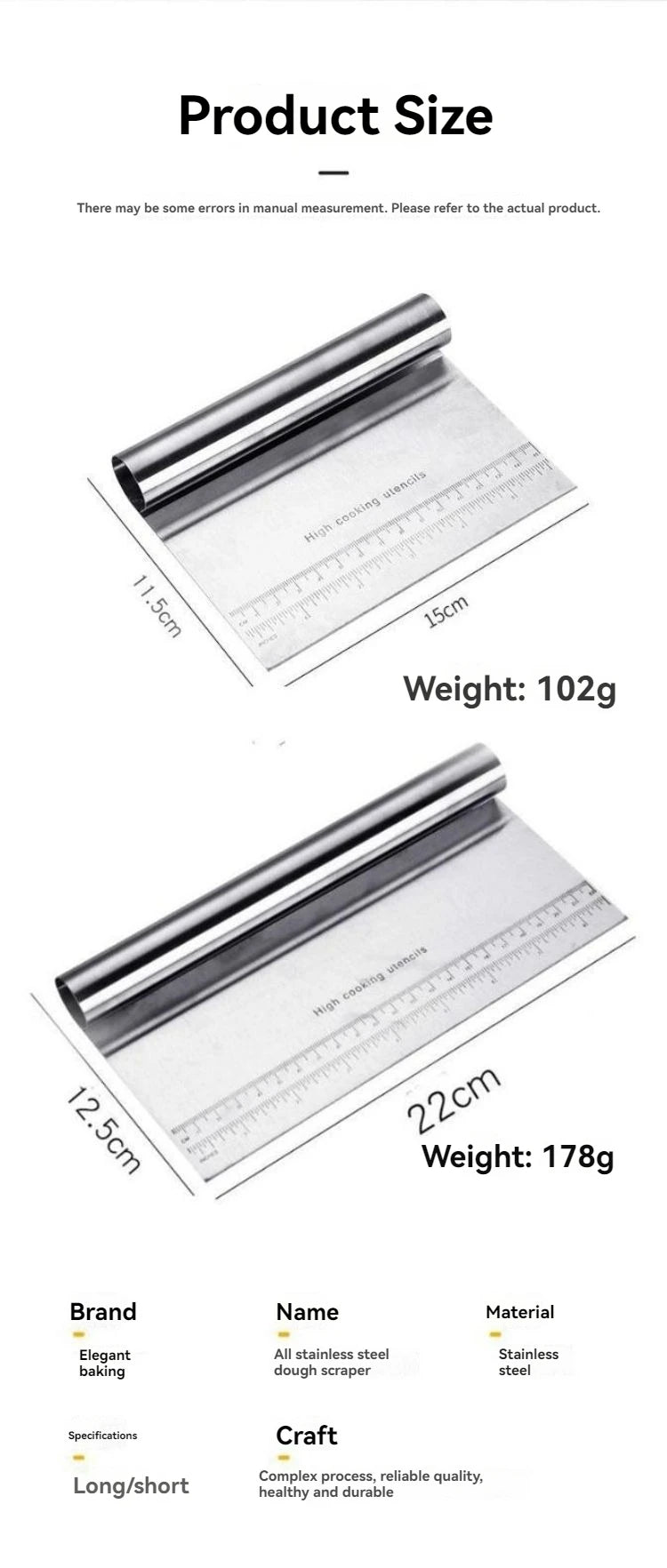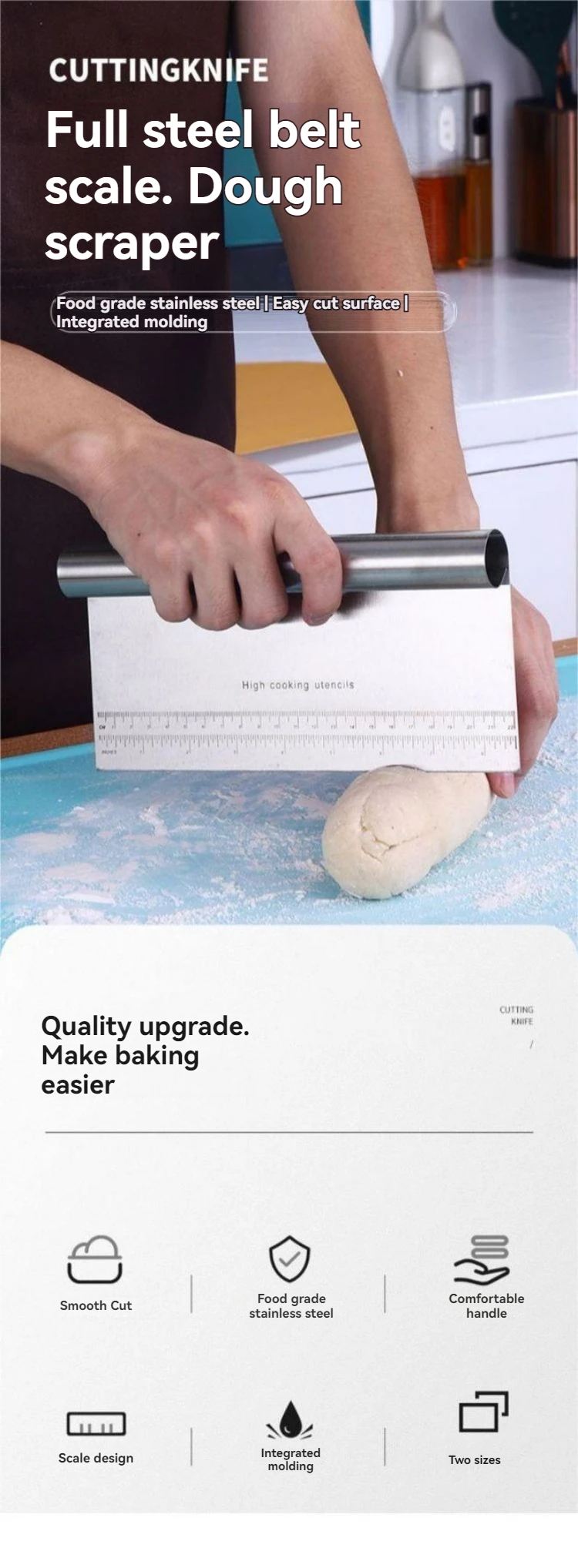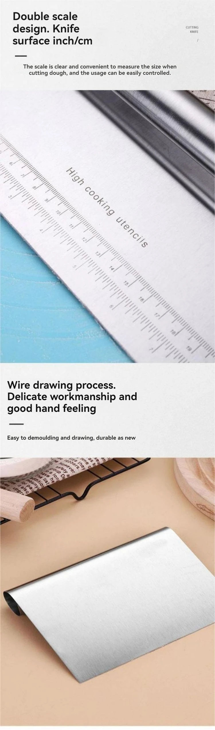 • Многофункциональное использование: этот универсальный инструмент — не просто скребок; он также может использоваться как нож для резки, что делает его идеальным для приготовления тортов, колбас, муки и многого другого.