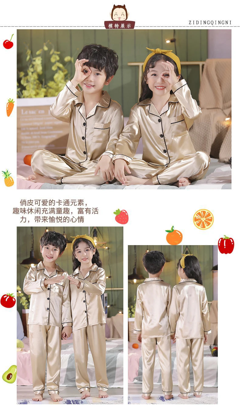 Пижамные комплекты для мальчиков и девочек от 2 до 14 лет, шелковый атласный топ, штаны, длинный/короткий...