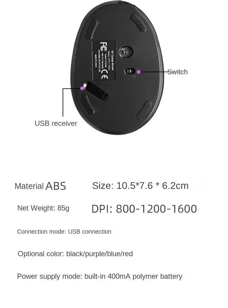 BTS-908, популярная вертикальная мышь с аккумулятором, эргономичная беспроводная мышь с USB-приемником 2....