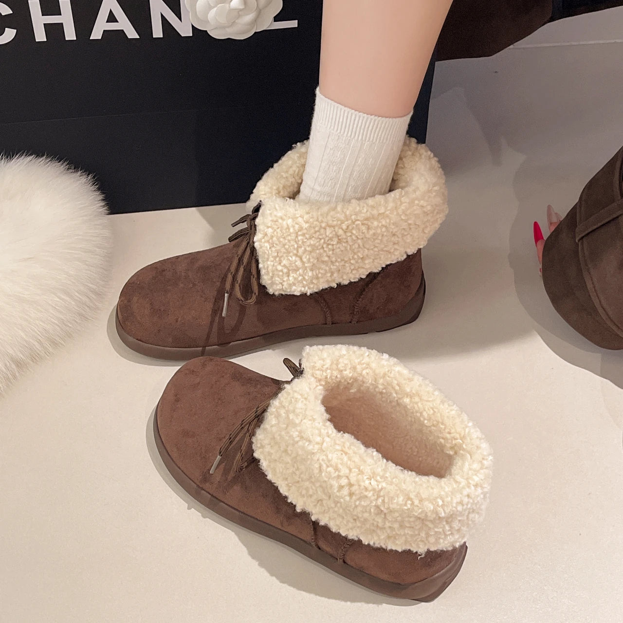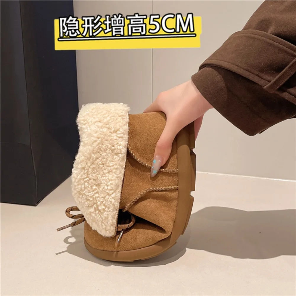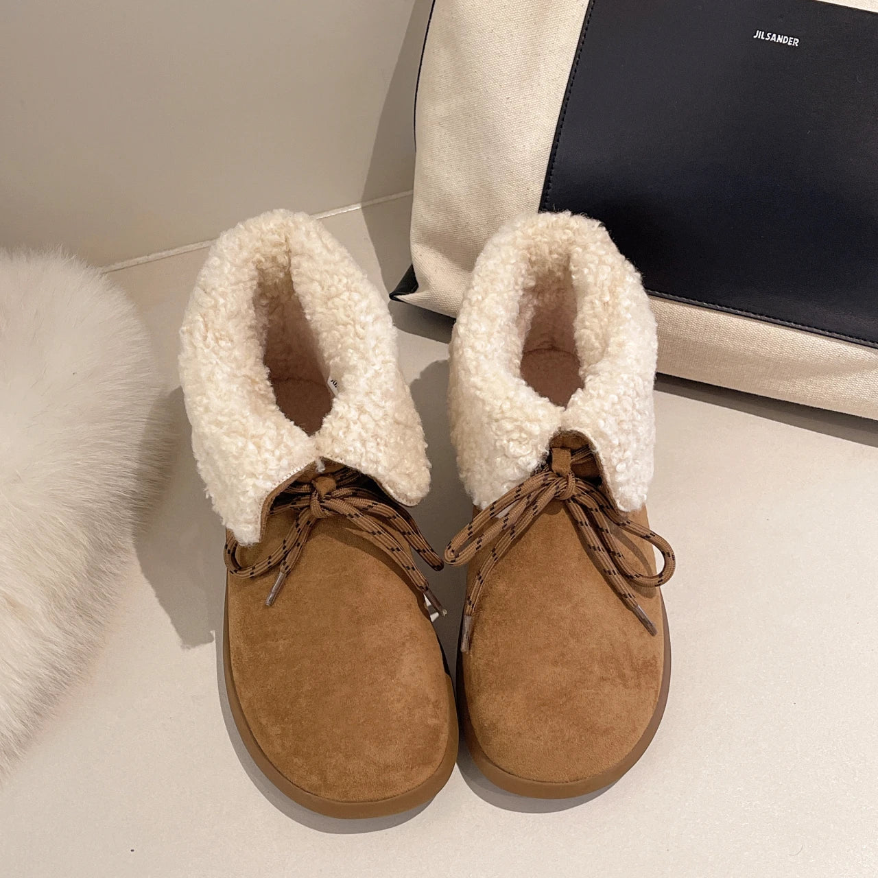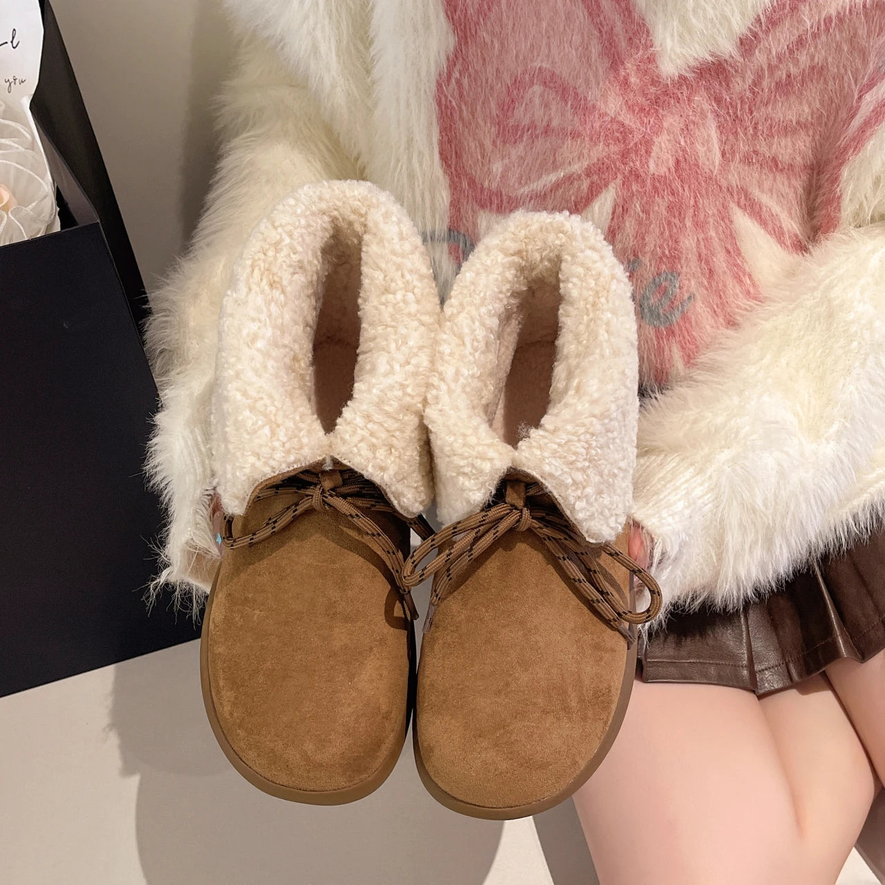 Женские меховые ботильоны на плоской подошве из замши, теплые дизайнерские туфли на шнуровке, модные зимн...