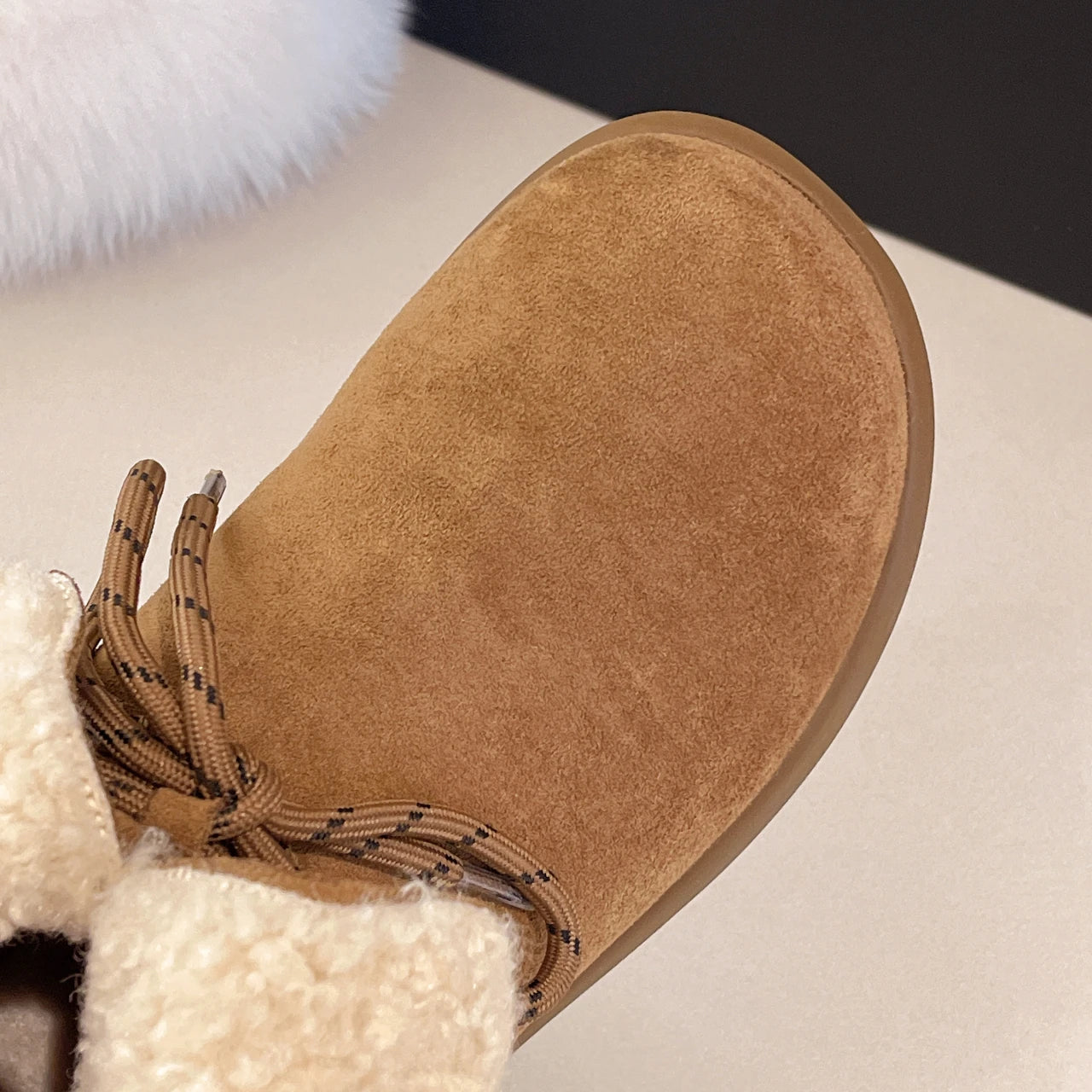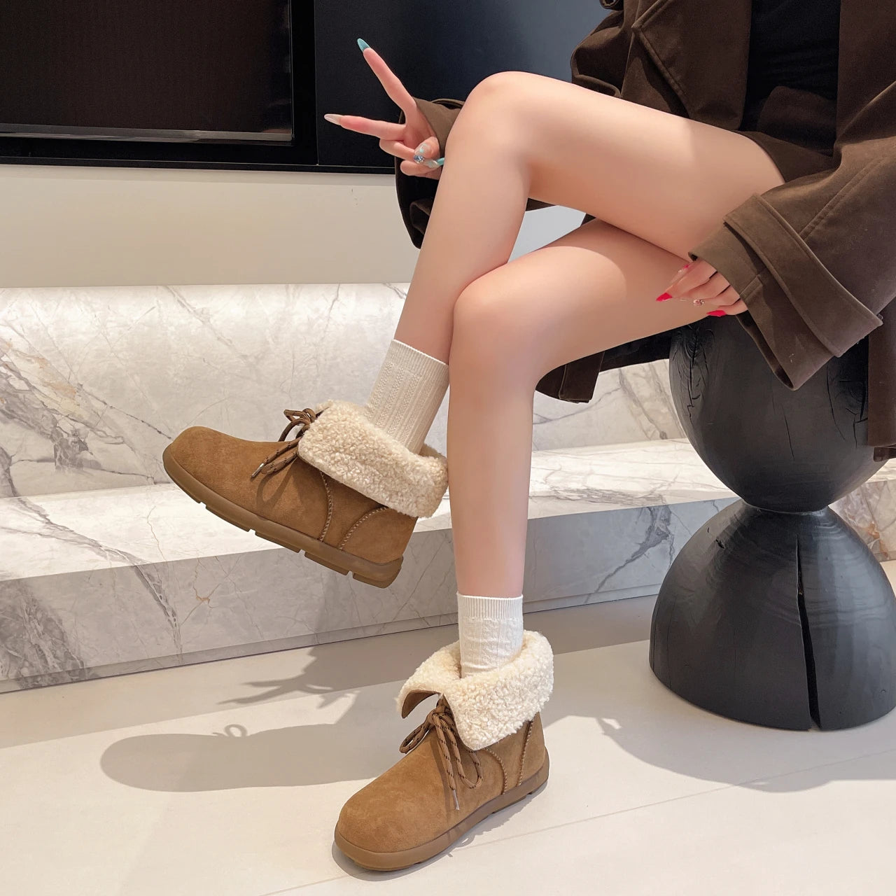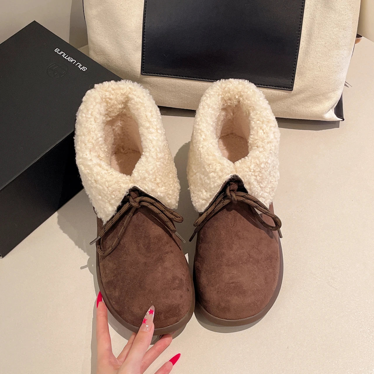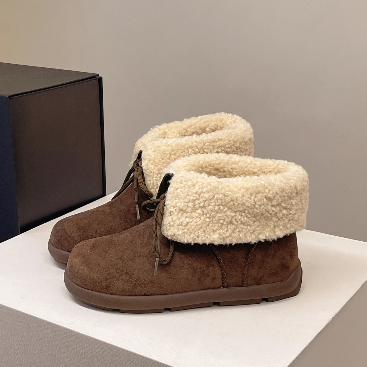 Женские меховые ботильоны на плоской подошве из замши, теплые дизайнерские туфли на шнуровке, модные зимн...
