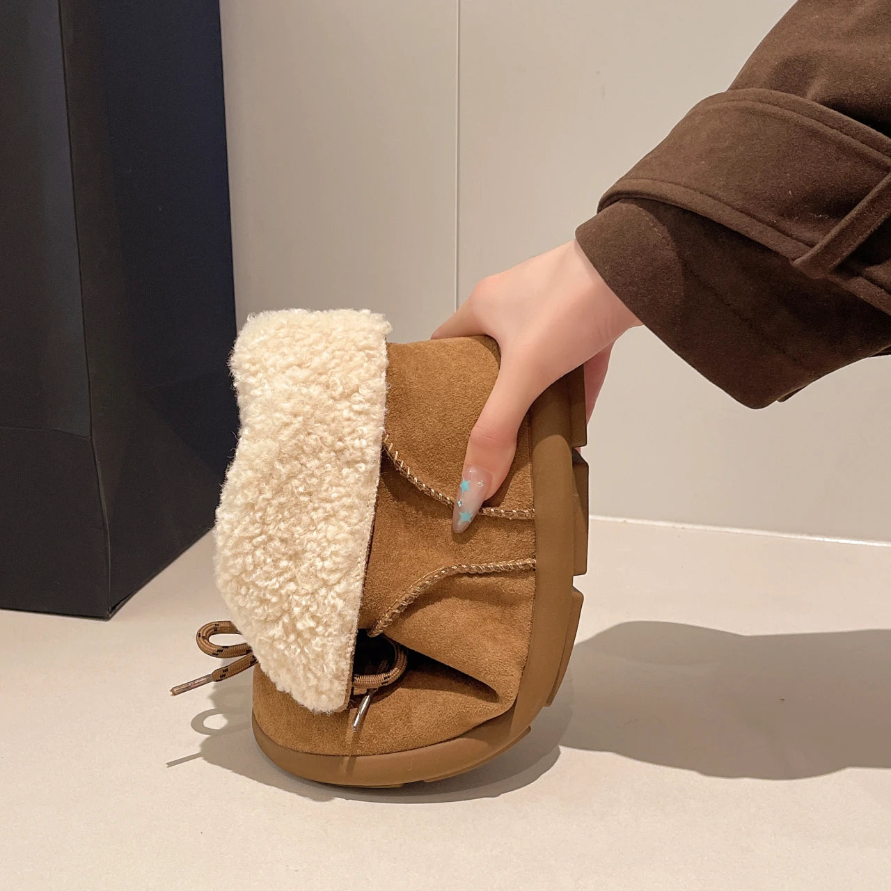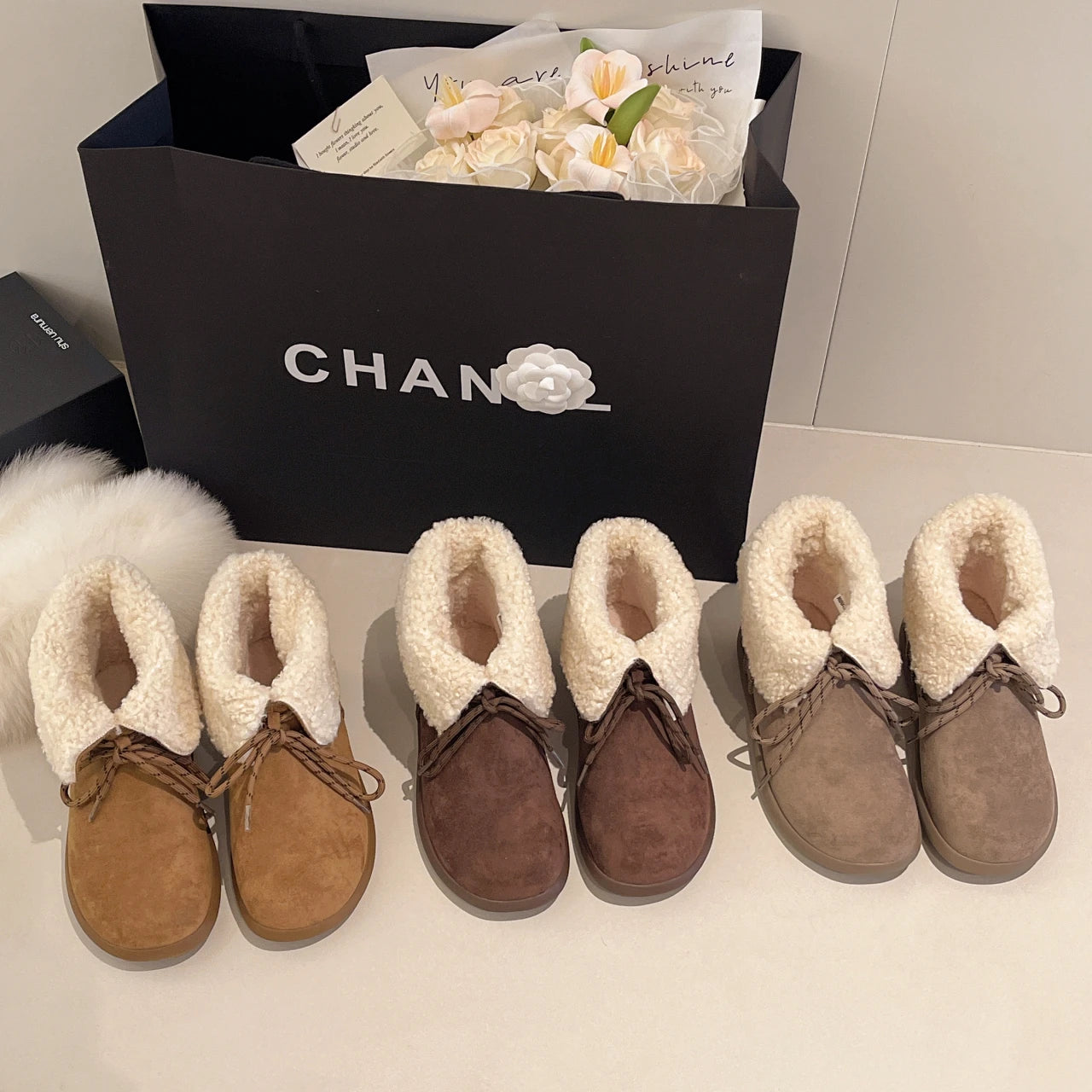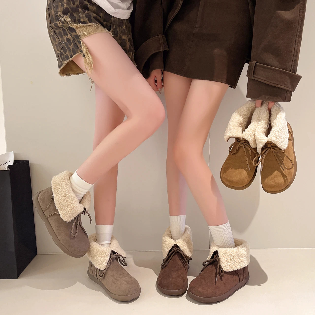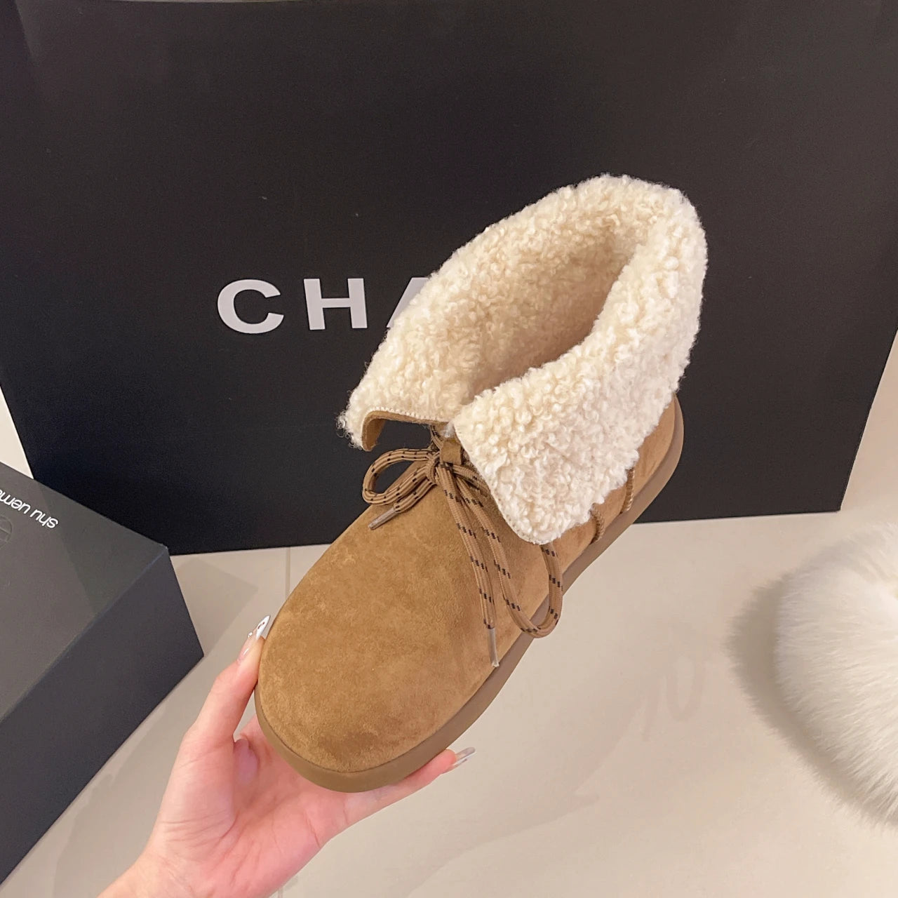 Женские меховые ботильоны на плоской подошве из замши, теплые дизайнерские туфли на шнуровке, модные зимн...