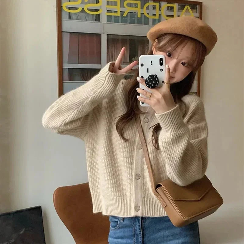 Женский кардиган HELIAR корейского стиля с длинным рукавом, элегантный, вязаный, укороченный, повседневны...