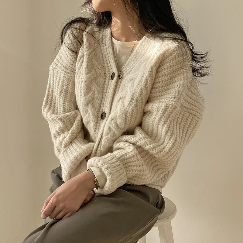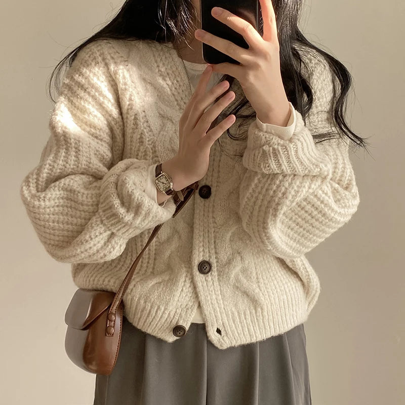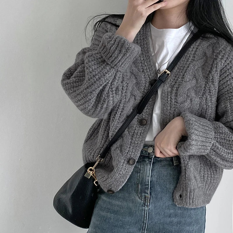 Женский свободный кардиган HELIAR на пуговицах, пальто, короткая жакет с V-образным вырезом, повседневный...