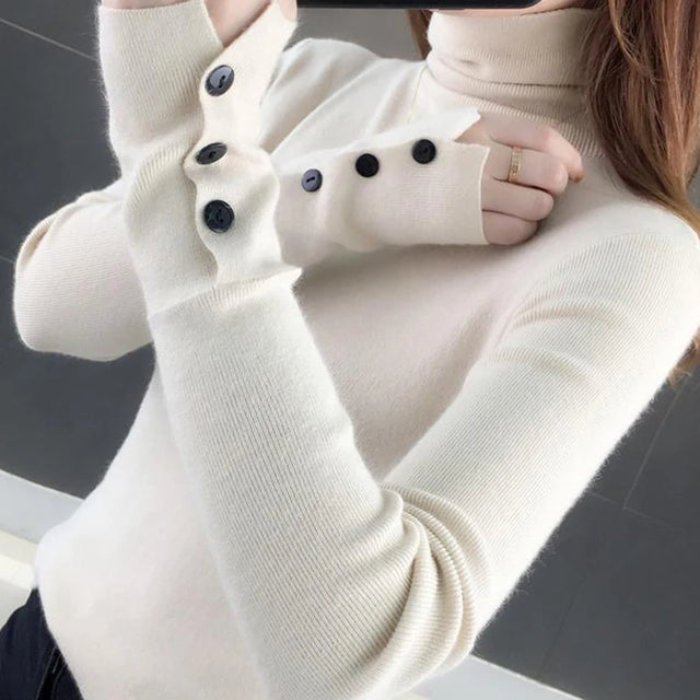 Женский водолазный свитер HELIAR с пуговицами, однотонный, теплый, с длинным рукавом, трикотажный, базовы...