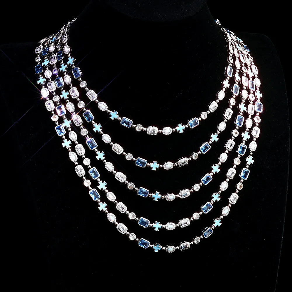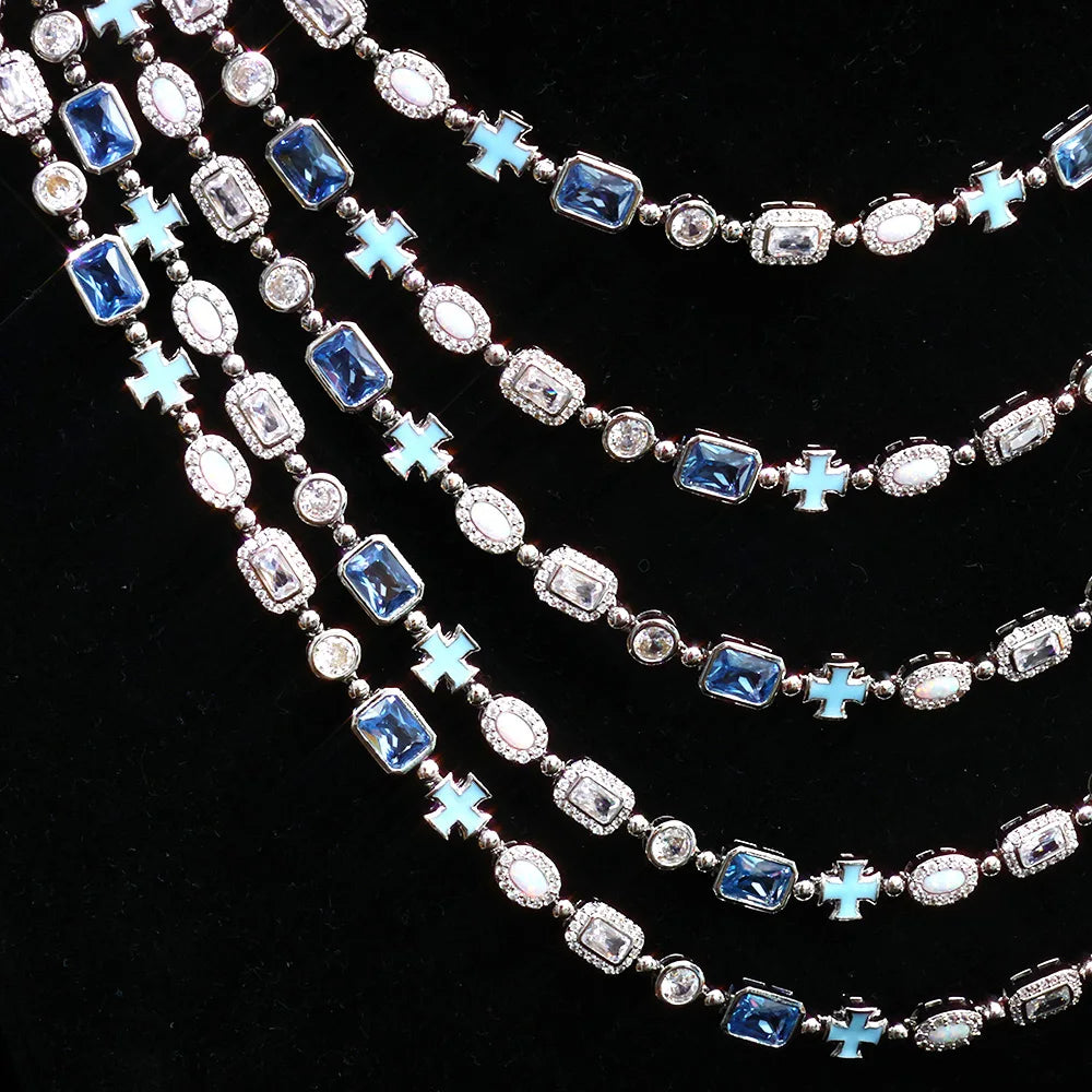 Женское ожерелье с синими драгоценными камнями, подвеской в ​​виде креста с каплями масла, ожерелье из се...