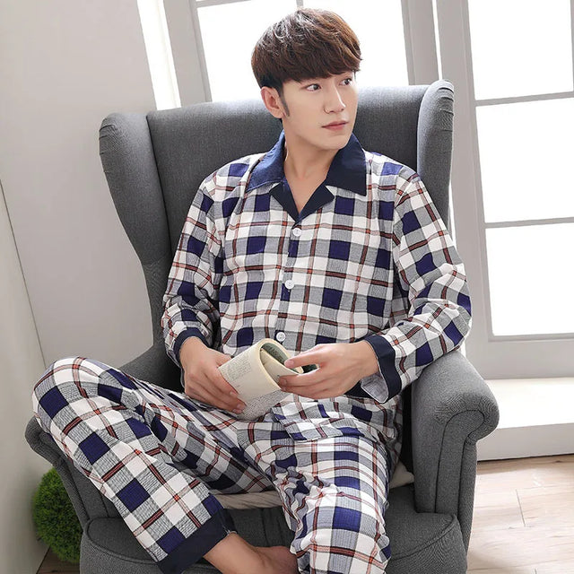Теплая зимняя пижама большого размера для мужчин, с длинными рукавами, молодежная домашняя одежда, компле...