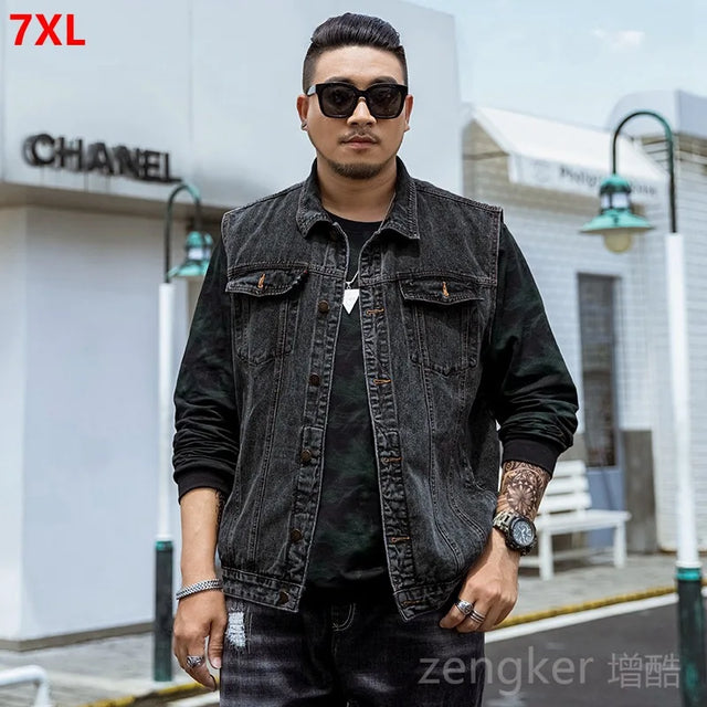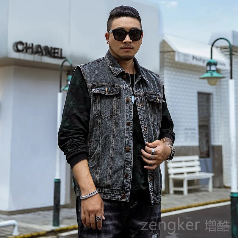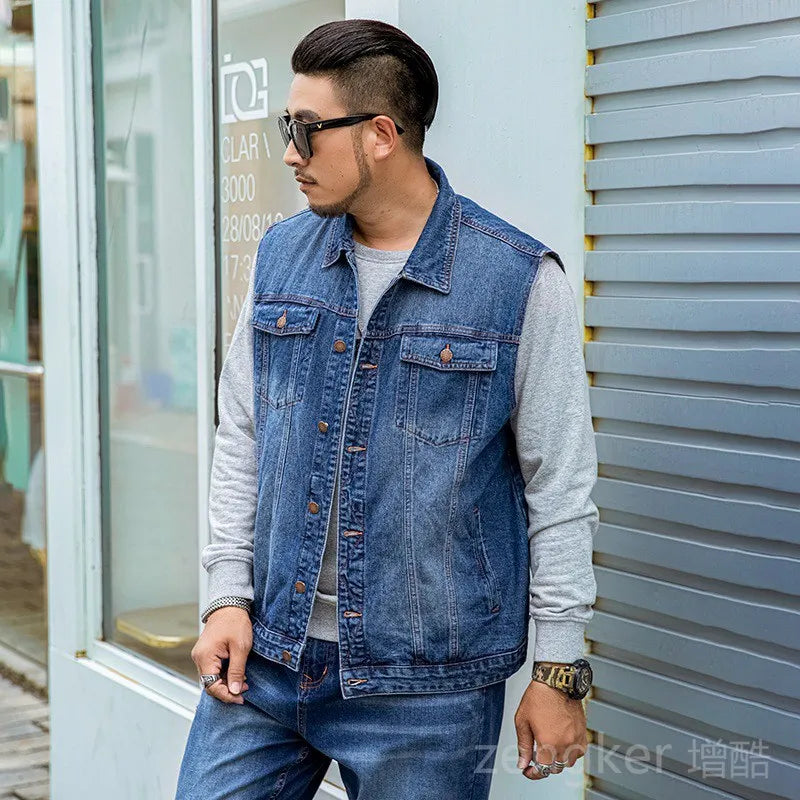 Мужской джинсовый жилет, мужская синяя корейская куртка без рукавов, большой ярдовый ковбойский жилет, кр...