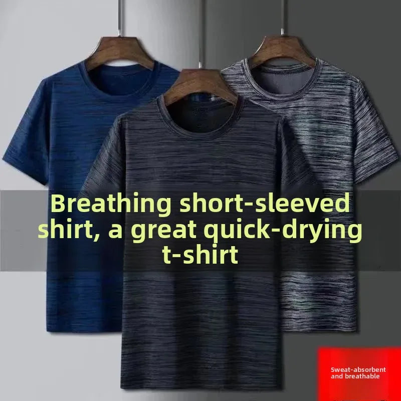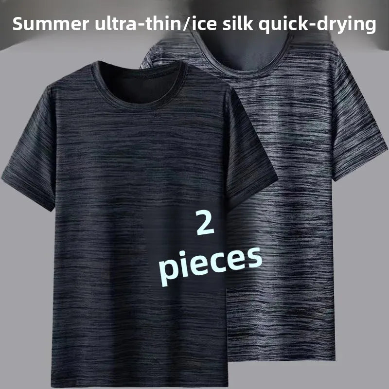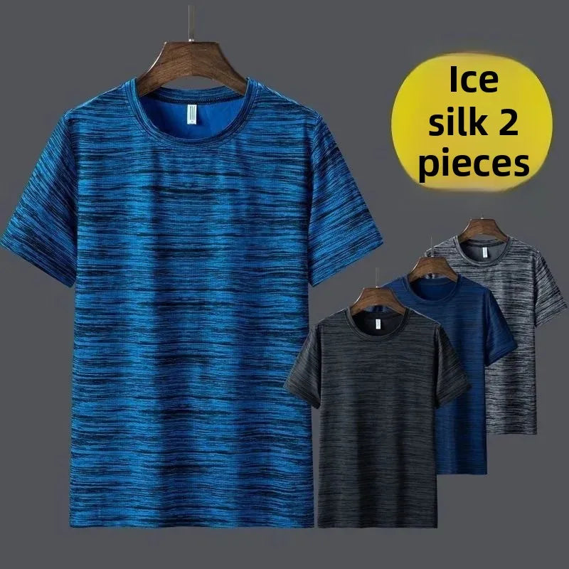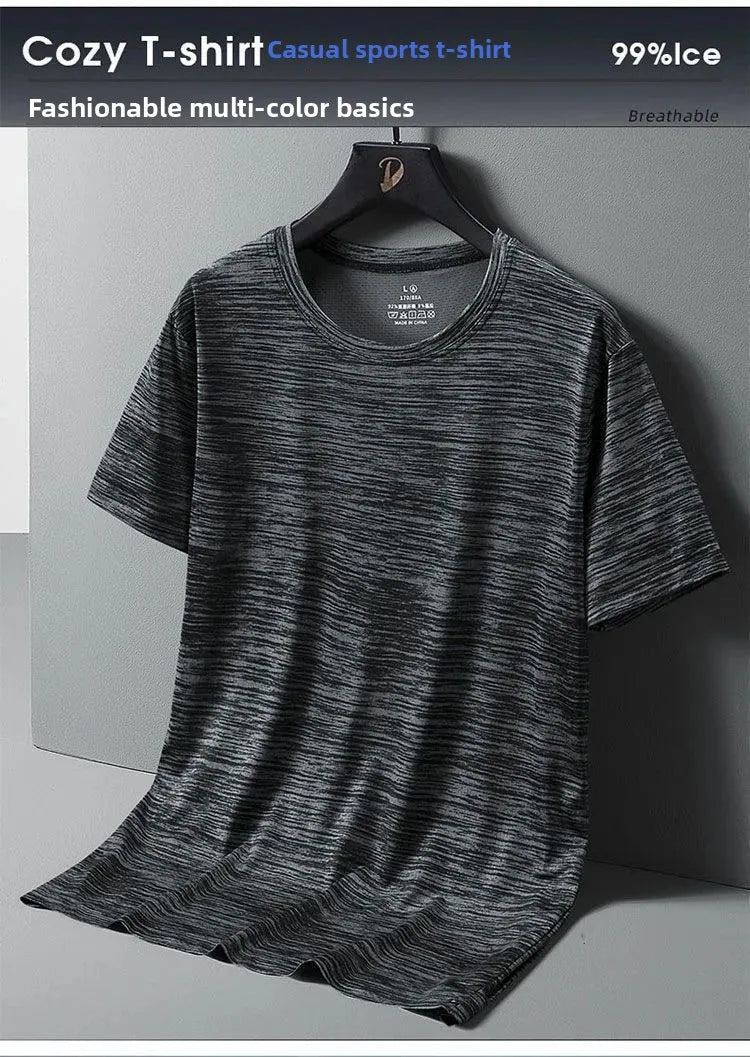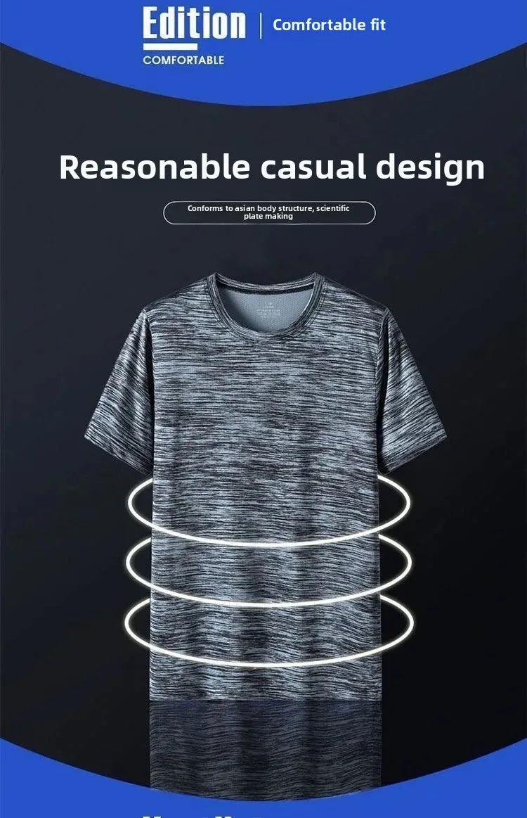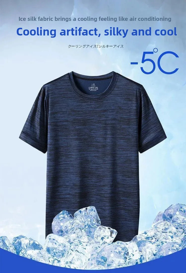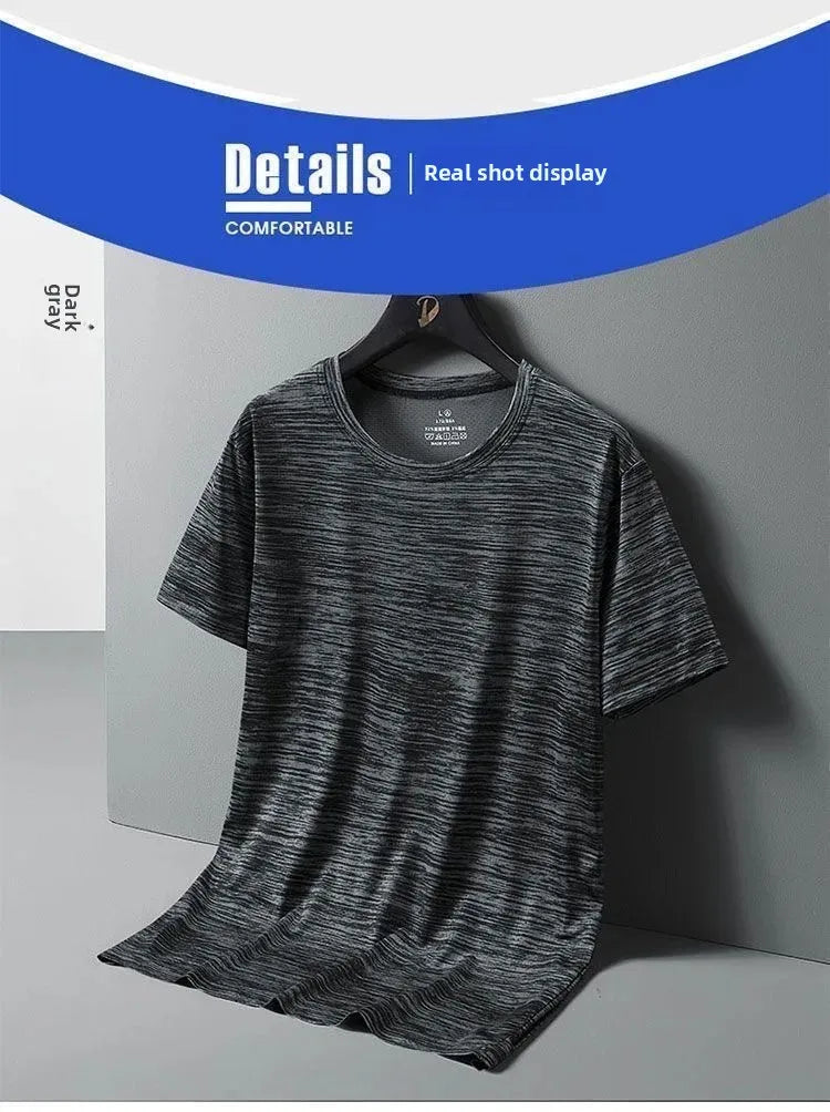 Мужская летняя футболка с коротким рукавом из шёлка льда, дышащая, быстросохнущая, свободного кроя, спорт...