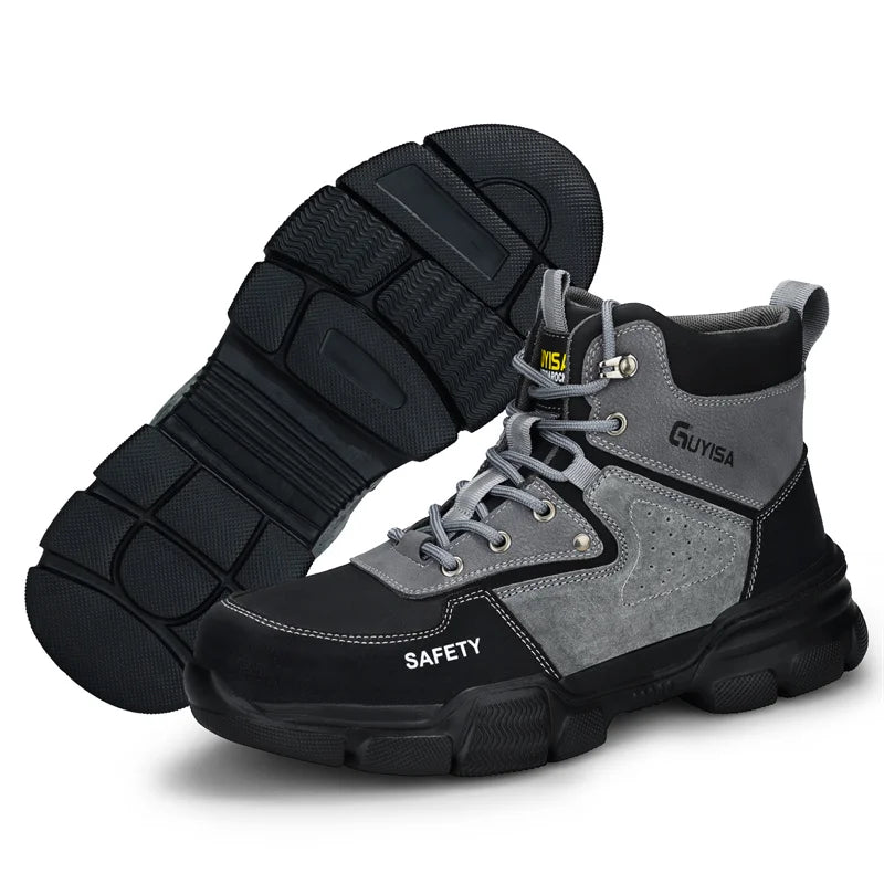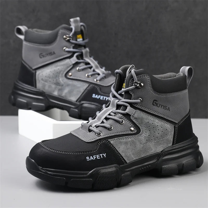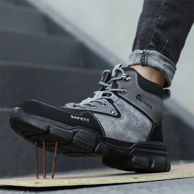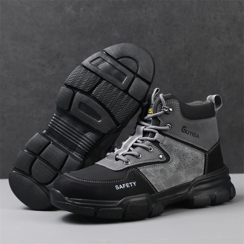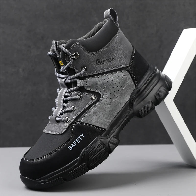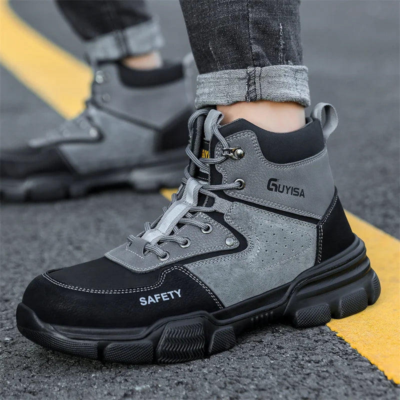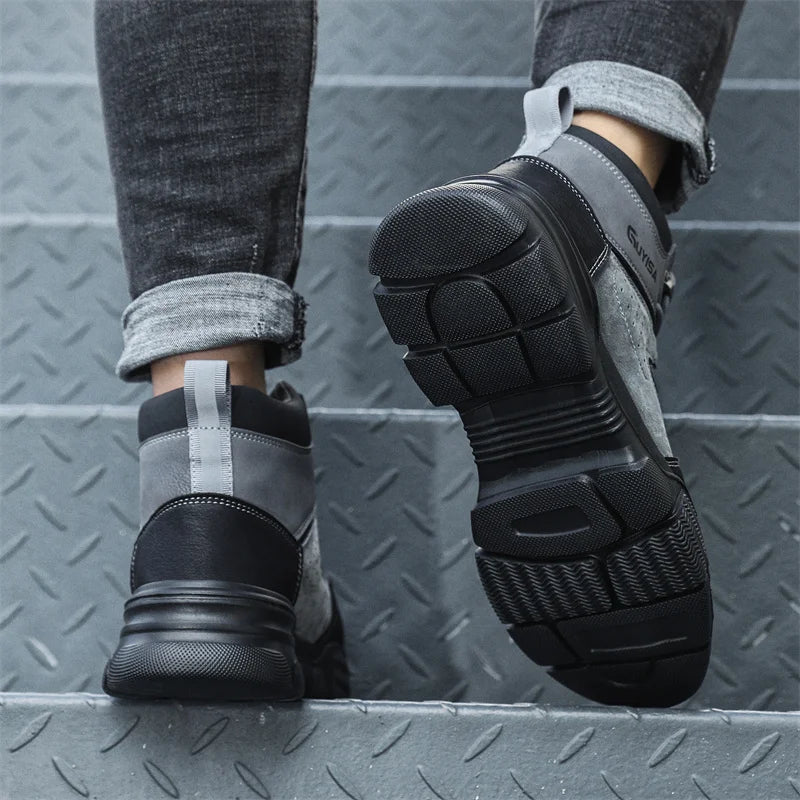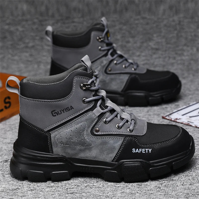 Новая мода 2024 года: высокие рабочие ботинки, мужские кроссовки со стальным носком, устойчивые к прокола...