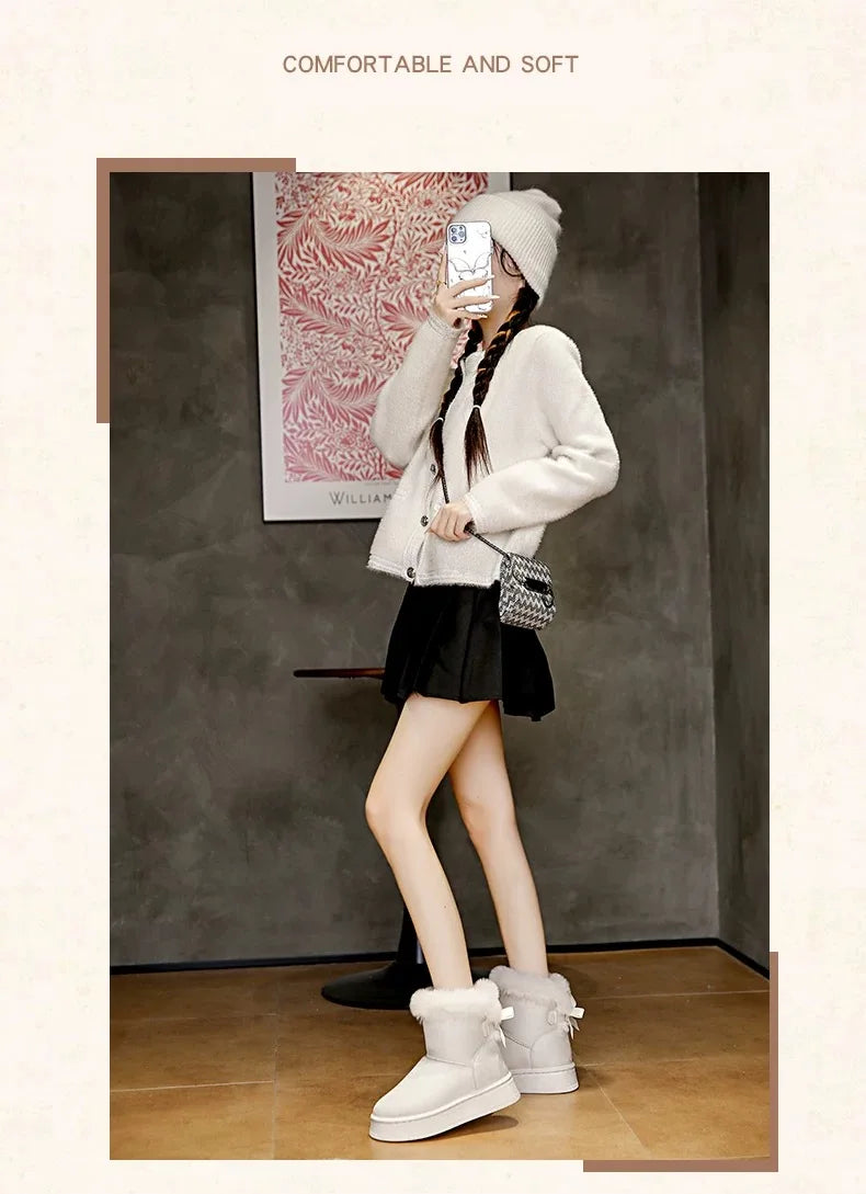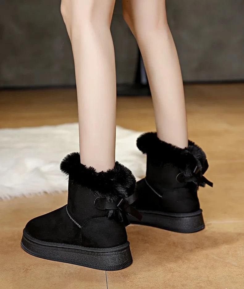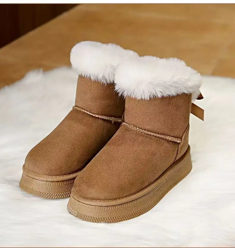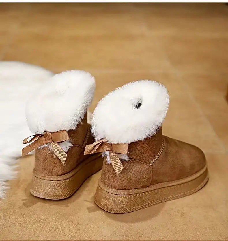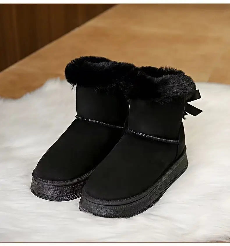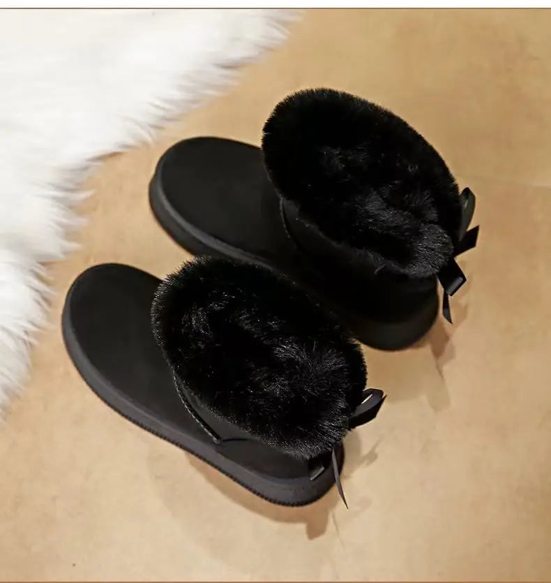 Новые модные элегантные зимние ботинки с круглым носком и бантом, зимние, мягкие, износостойкие, для студ...