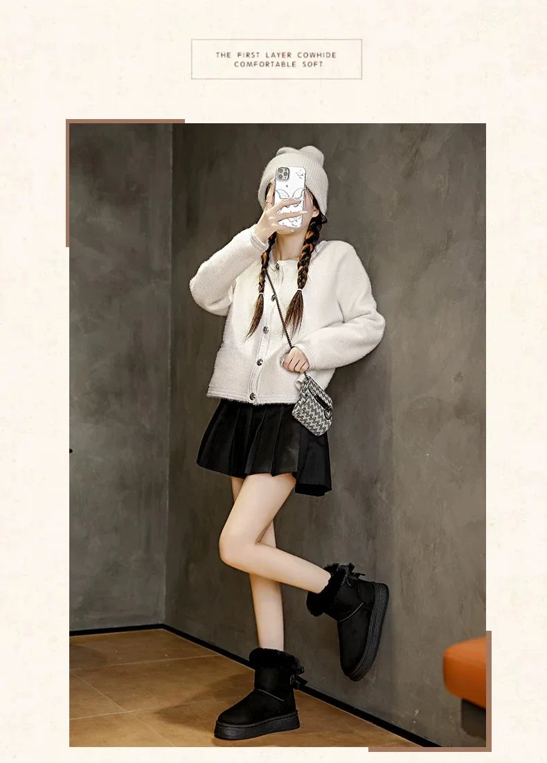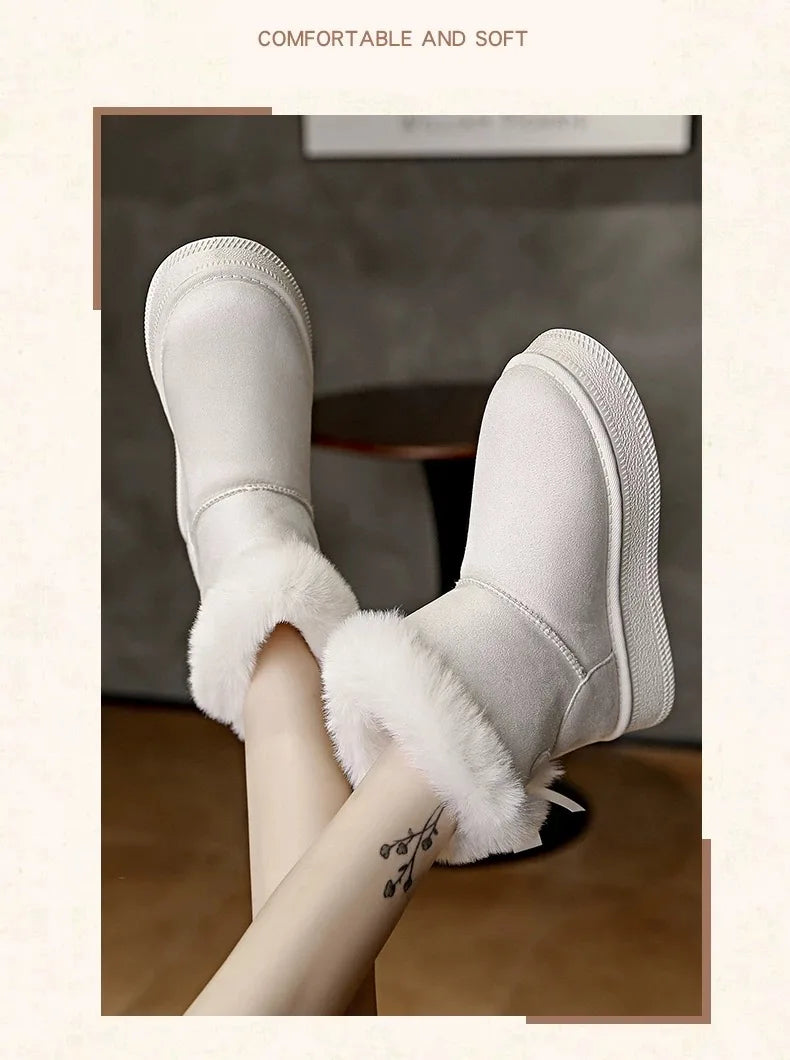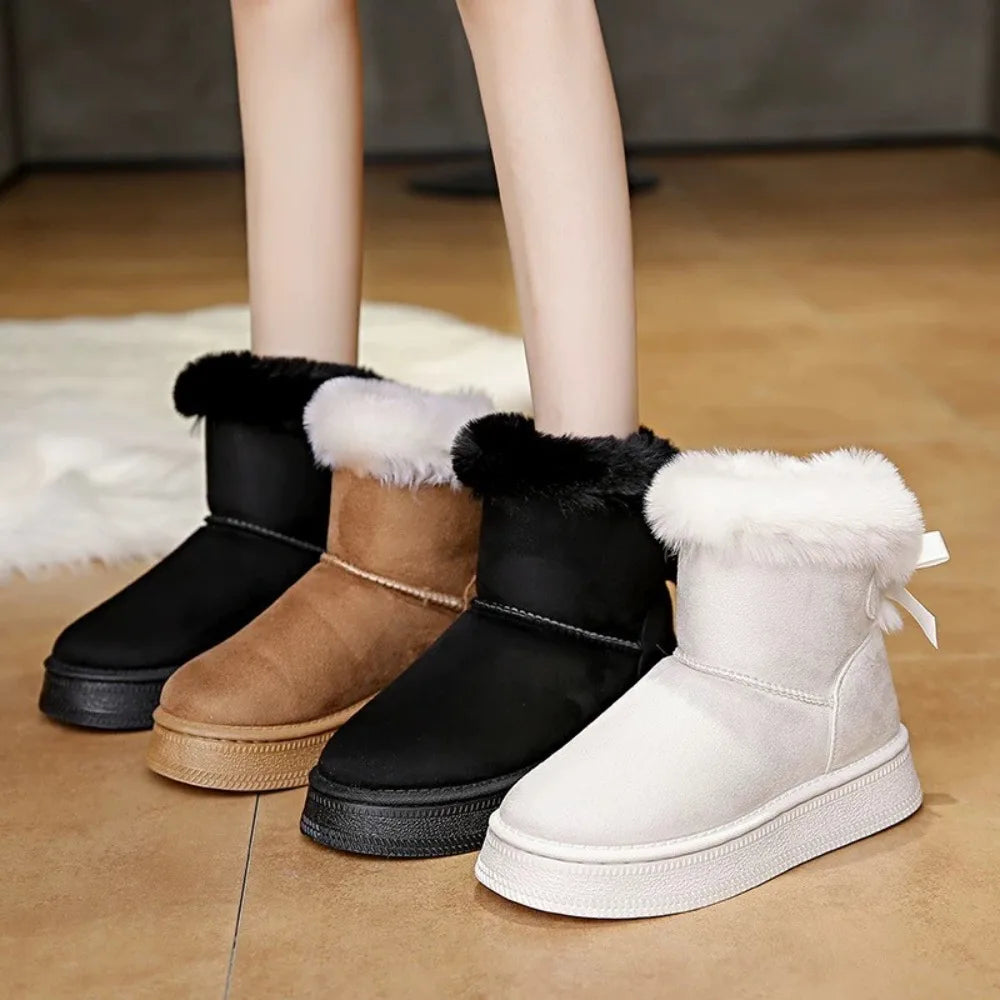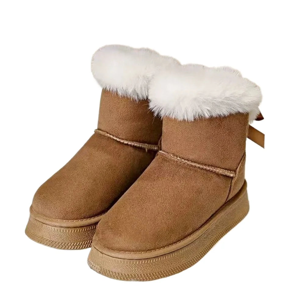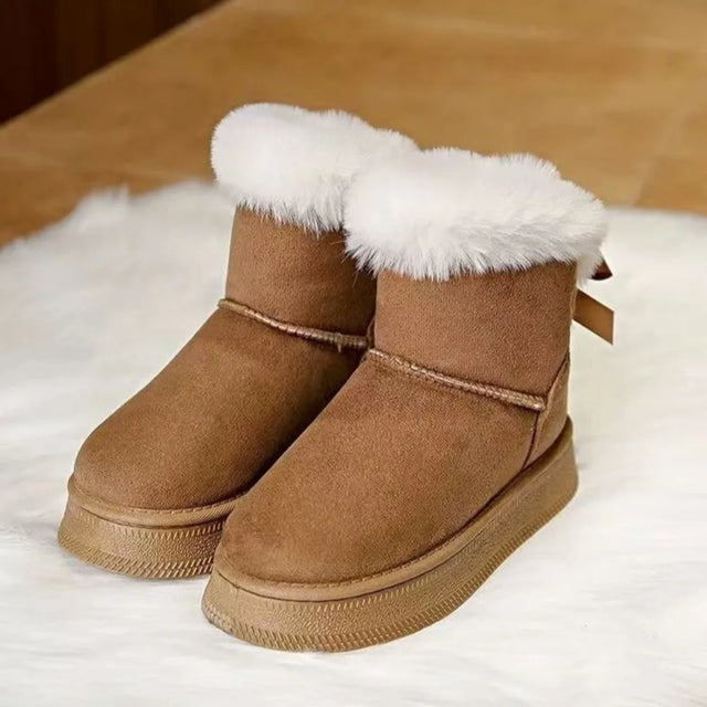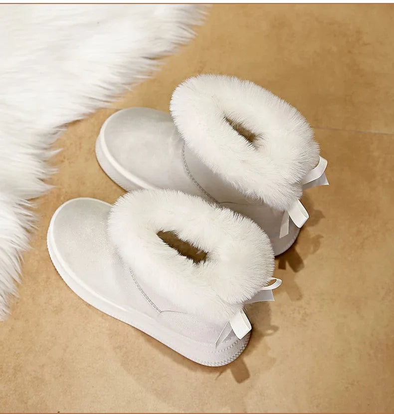 Новые модные элегантные зимние ботинки с круглым носком и бантом, зимние, мягкие, износостойкие, для студ...