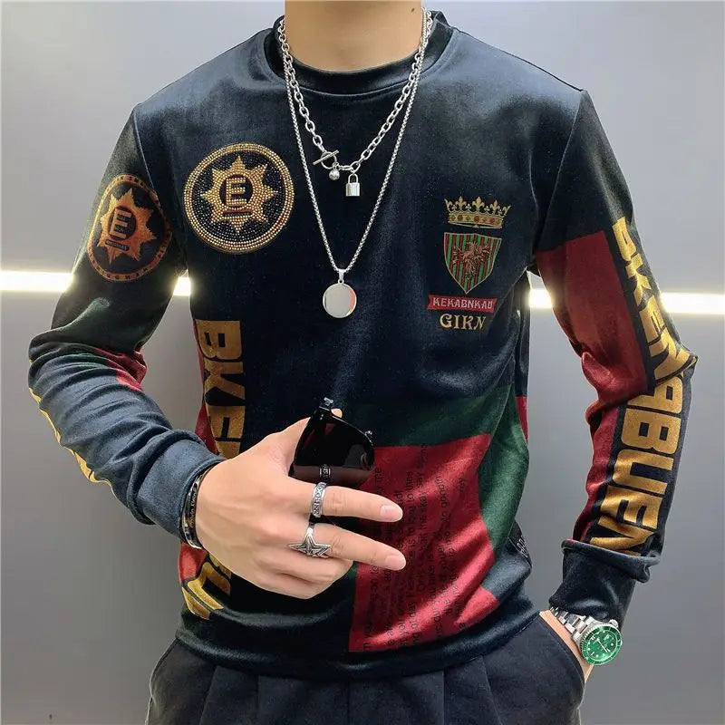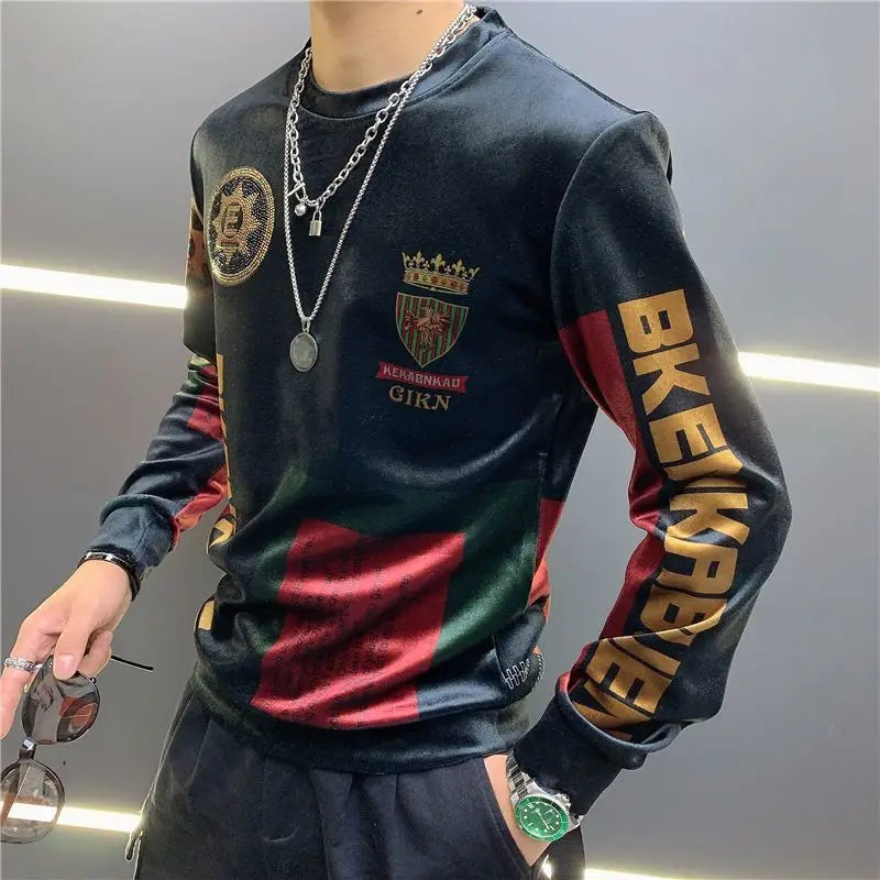 Стильные молодежные футболки с надписью «Vitality Letter», весна-осень, круглый вырез, мужская одежда, по...