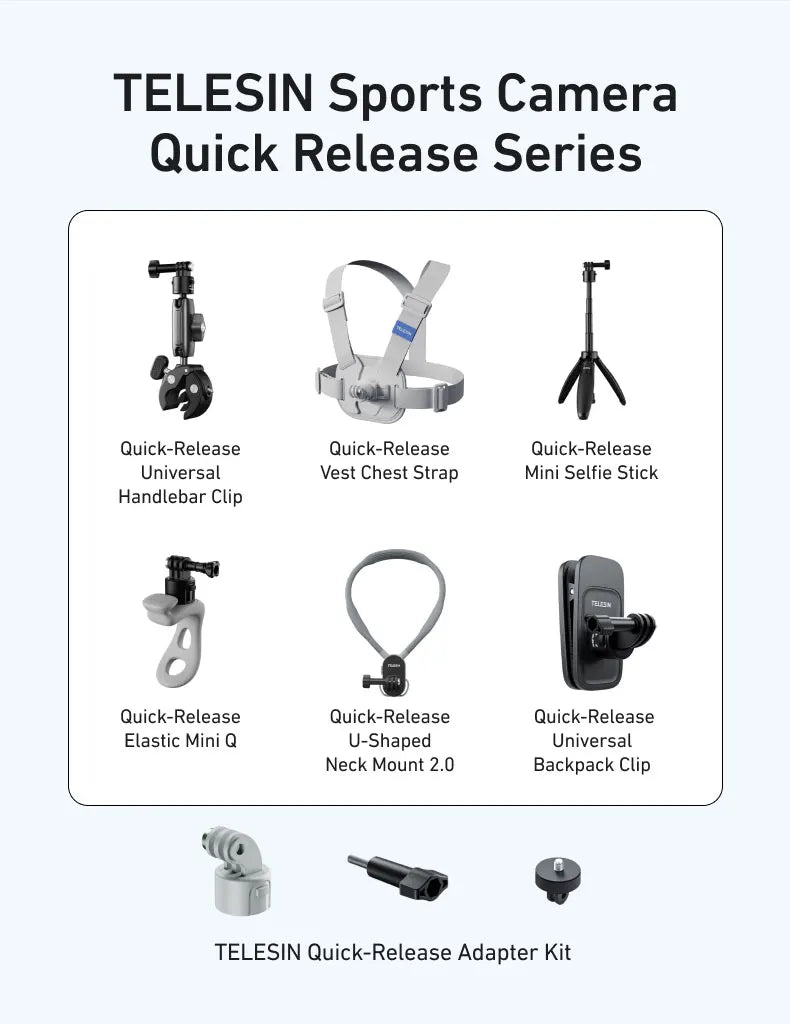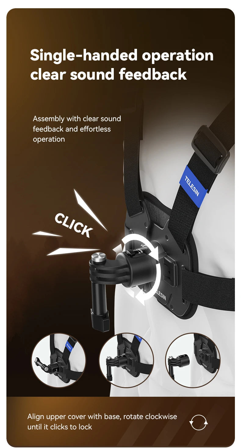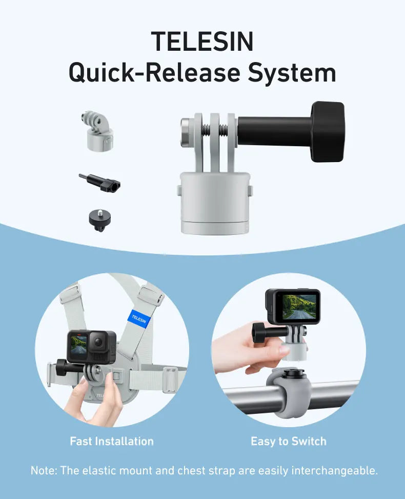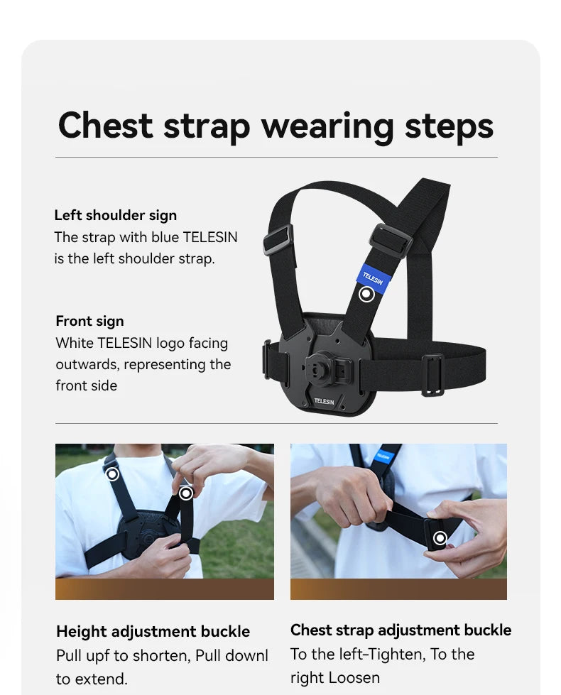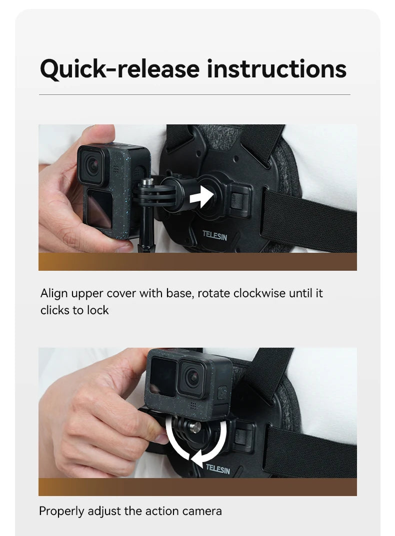 Быстросъемное нагрудное крепление TELESIN для GoPro Hero 13 12 11 10 9 8 DJI OSMO Action 5 Pro 4 3 Insta3...