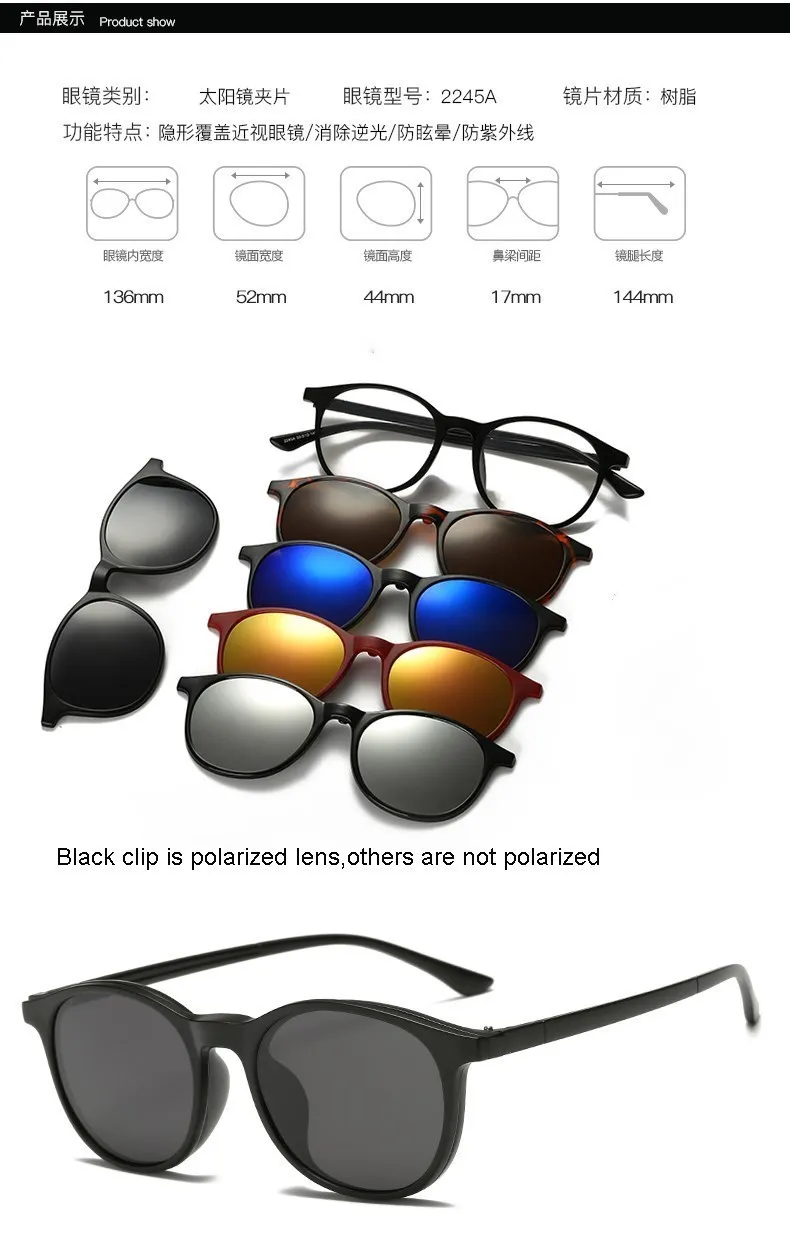 6 в 1 Пользовательские Мужские Женские Поляризационные Оптические Магнитные Солнцезащитные Очки Клип Магн...