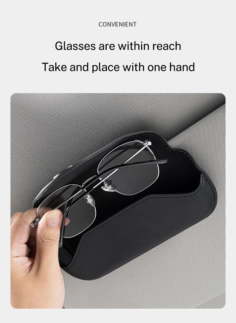 Легко устанавливается: просто закрепите футляр для очков на солнцезащитном козырьке, чтобы удобно разместить очки.