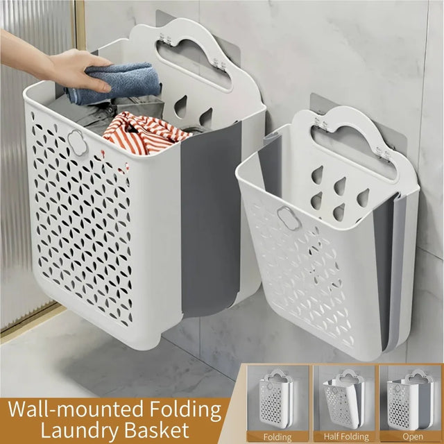 Вместительная складная корзина для белья для ванной комнаты, неперфорированные настенные корзины для хран...