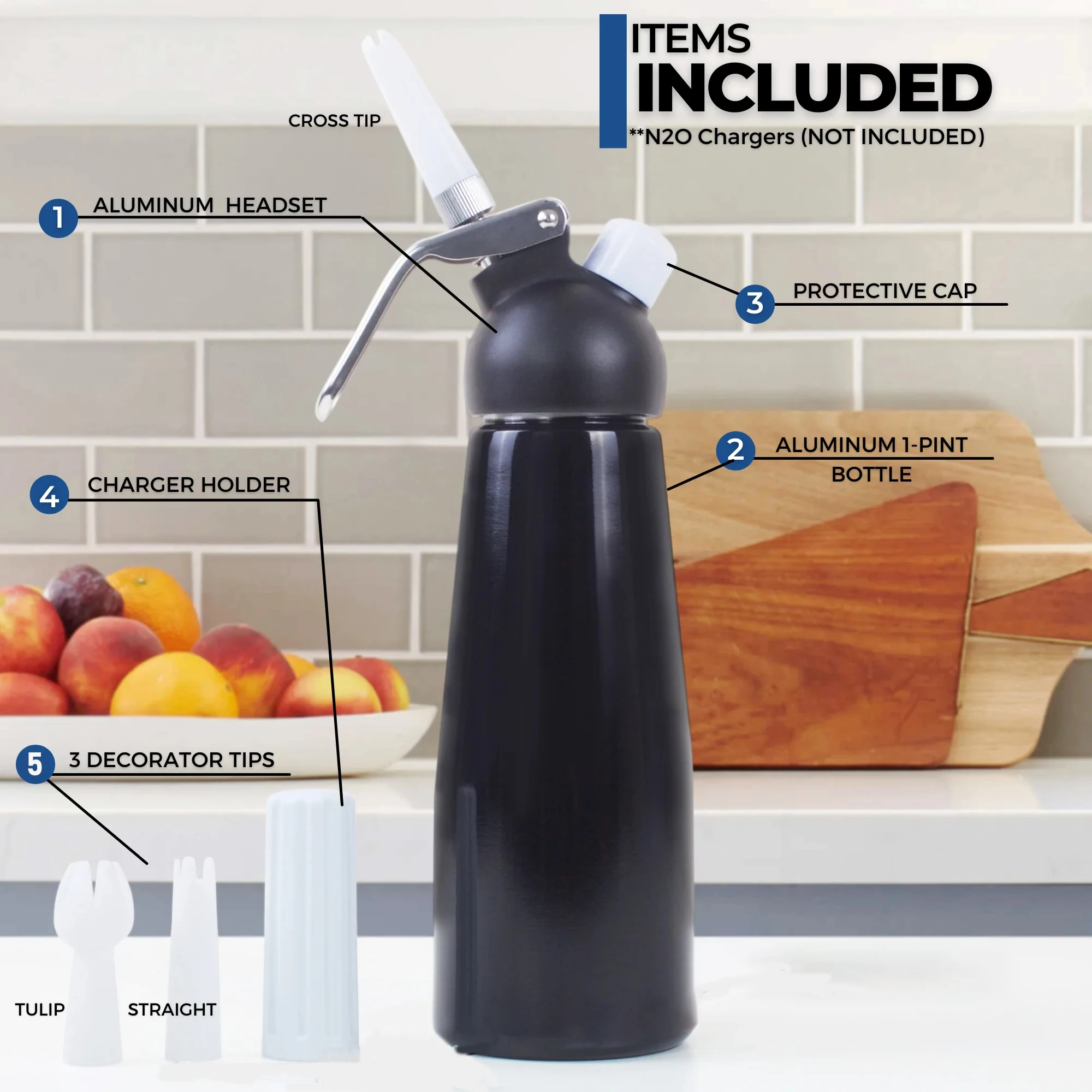 Примечания: При заполнении сливками лучше не превышать треть емкости, предпочтительно 180-200 мл. Сливки, приготовленные с помощью этого пистолета для сливок, немного мягкие, подходят для приготовления сливочных напитков, таких как кофе капучино. Если вы хотите более густые сливки, вы можете поставить сливки в холодильник на час перед использованием!