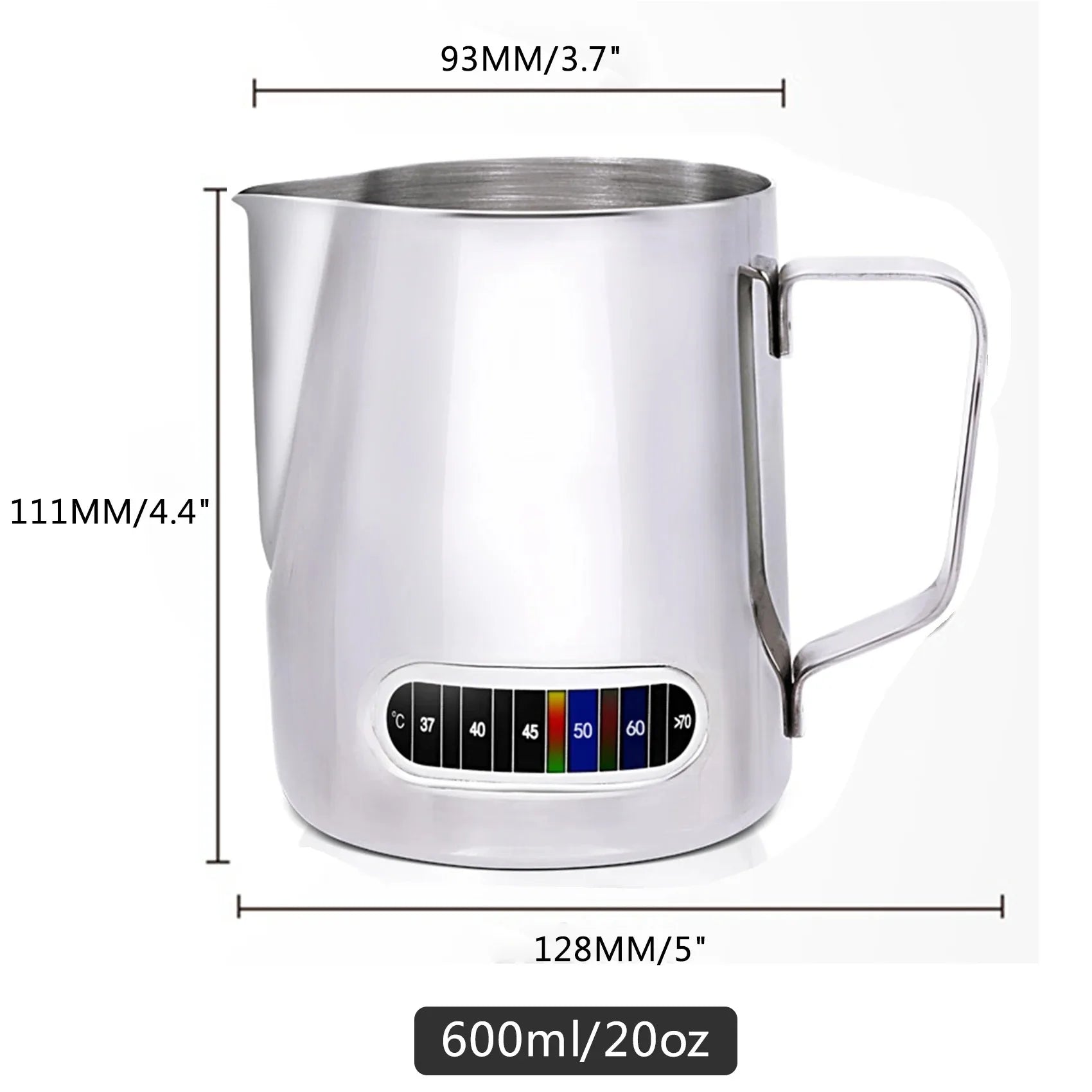 Кувшин для взбивания молока объемом 12/20 унций, с дисплеем температуры, из нержавеющей стали, кувшин для...
