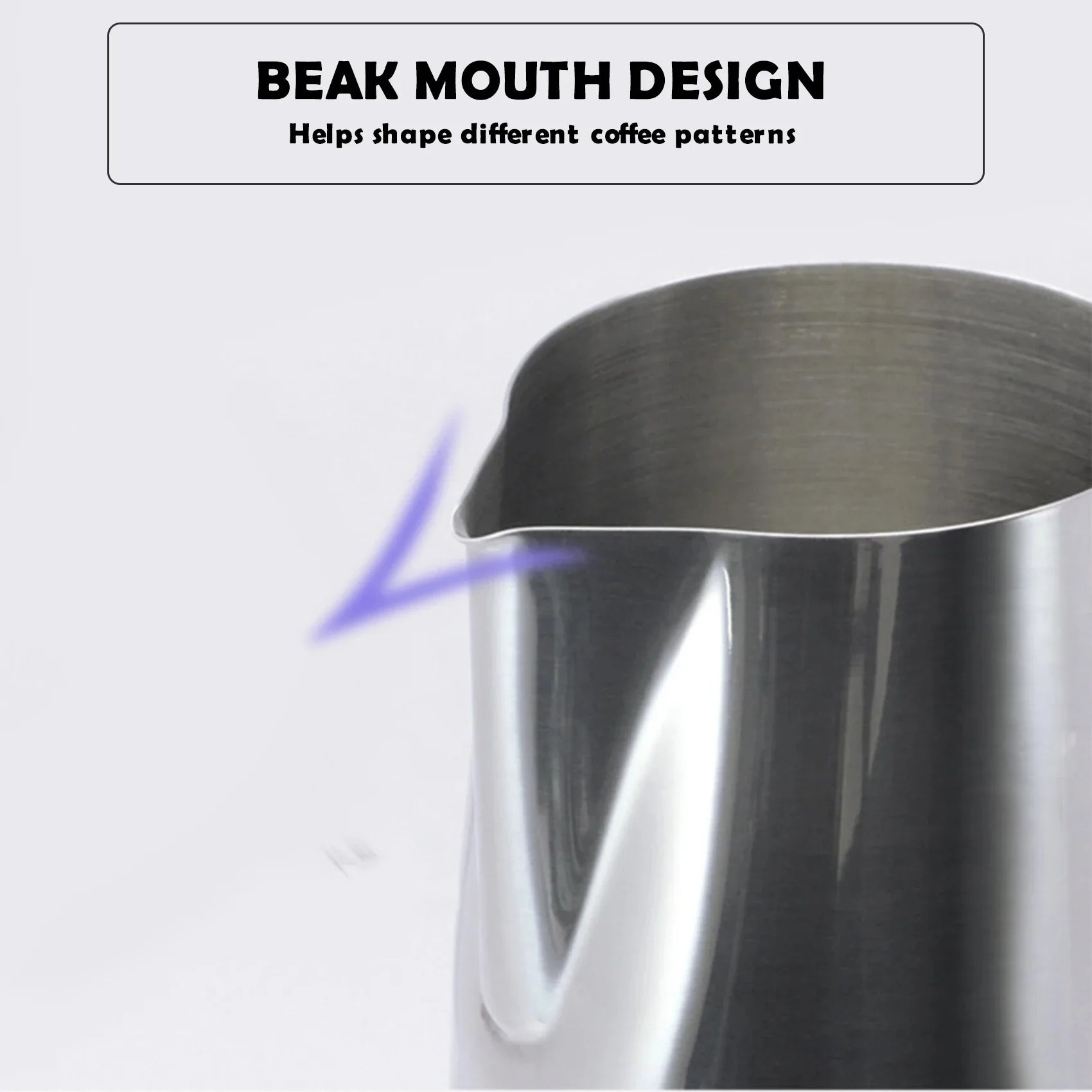 Конструкция в виде клюва помогает формировать различные узоры на кофейной гуще, что упрощает создание латте-арта.