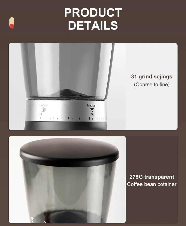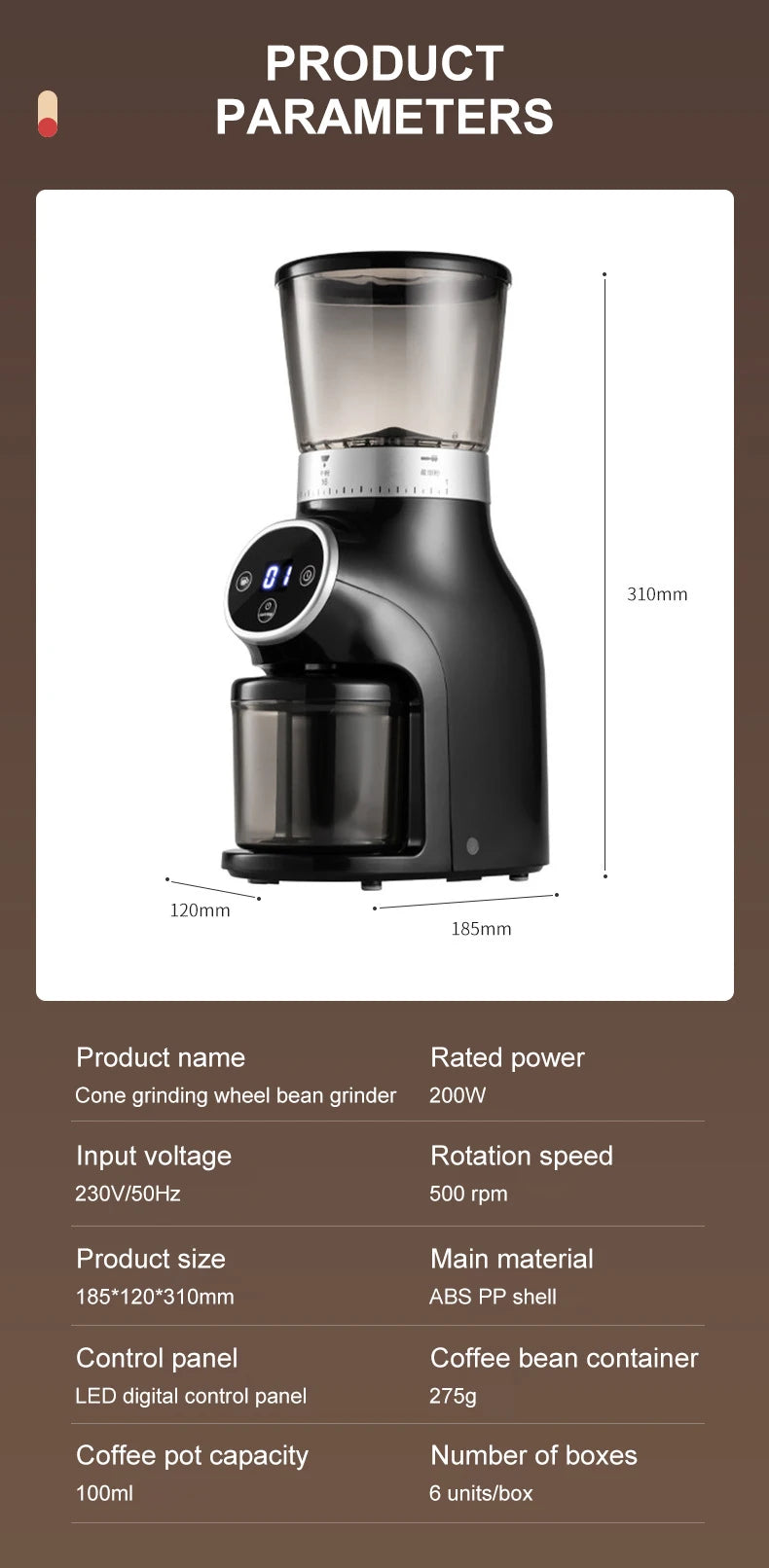 Кофемолка, бытовая кофемолка, электрическая кофемолка, CG01, 200 Вт, 31 настройка, встроенный светодиодны...