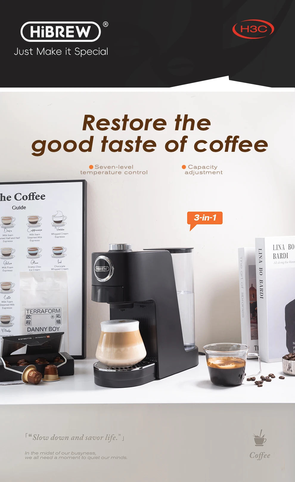 Кофемашина HiBREW 3 в 1 с несколькими капсулами для горячего/холодного капучино Nes Small Capsule Cappuccino Cafeteria H3C