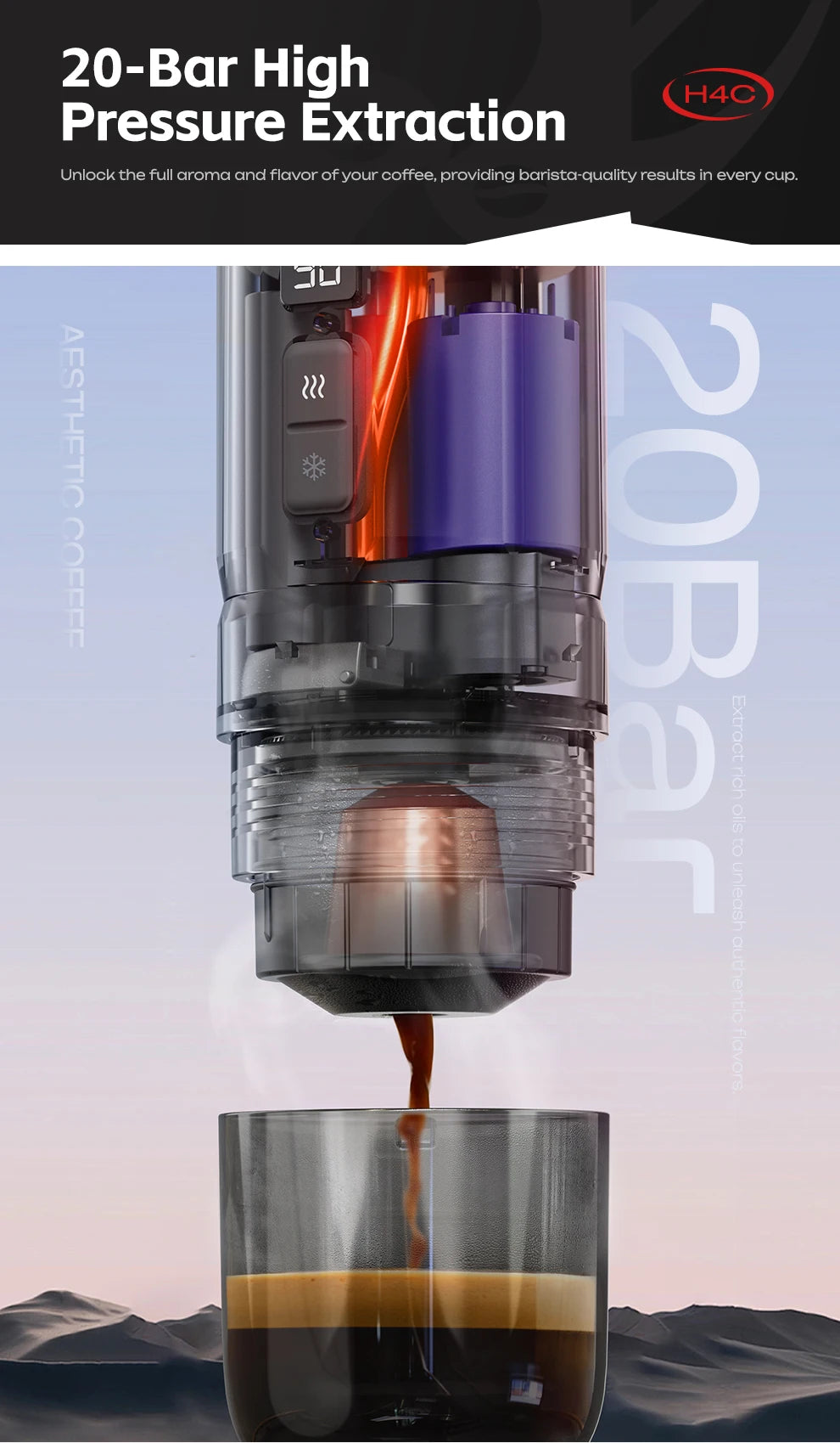 Портативная кофемашина HiBREW для приготовления эспрессо в машине, дома, на кемпинге, подходит для капсул...