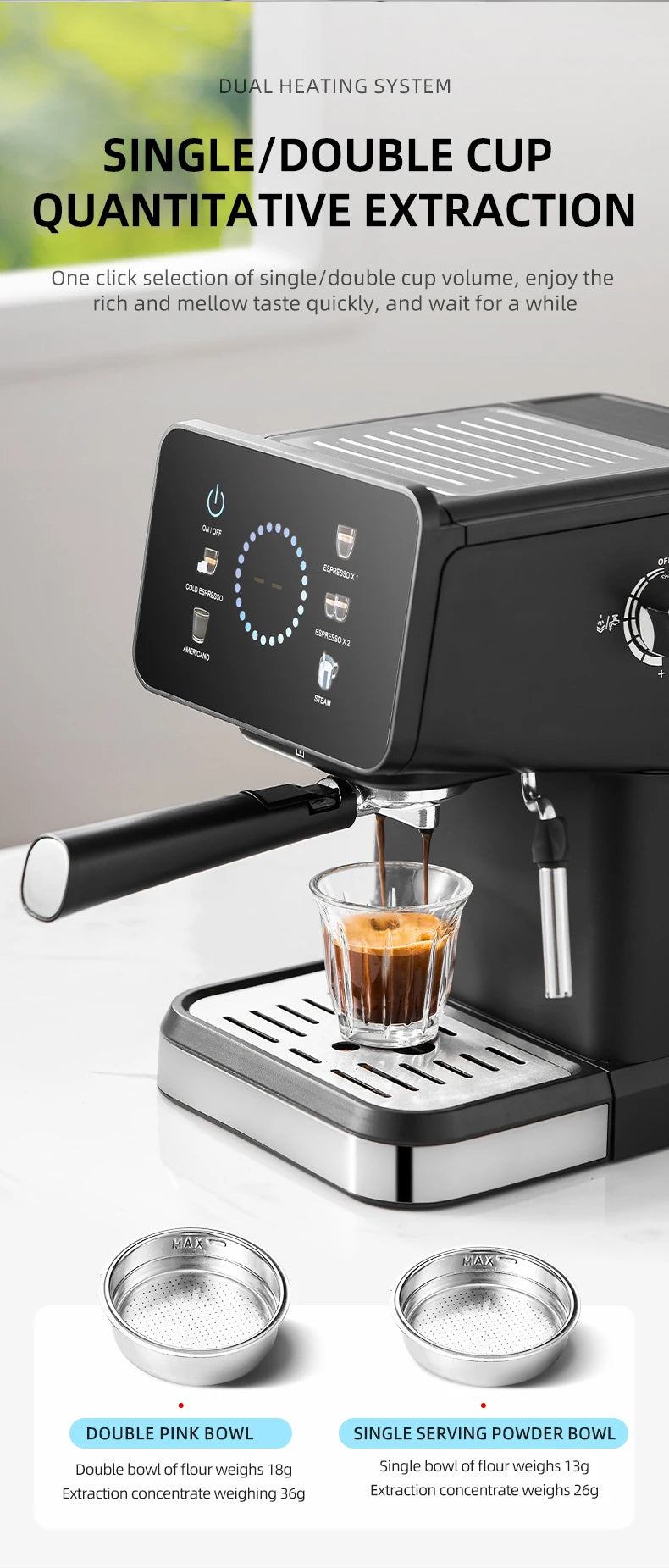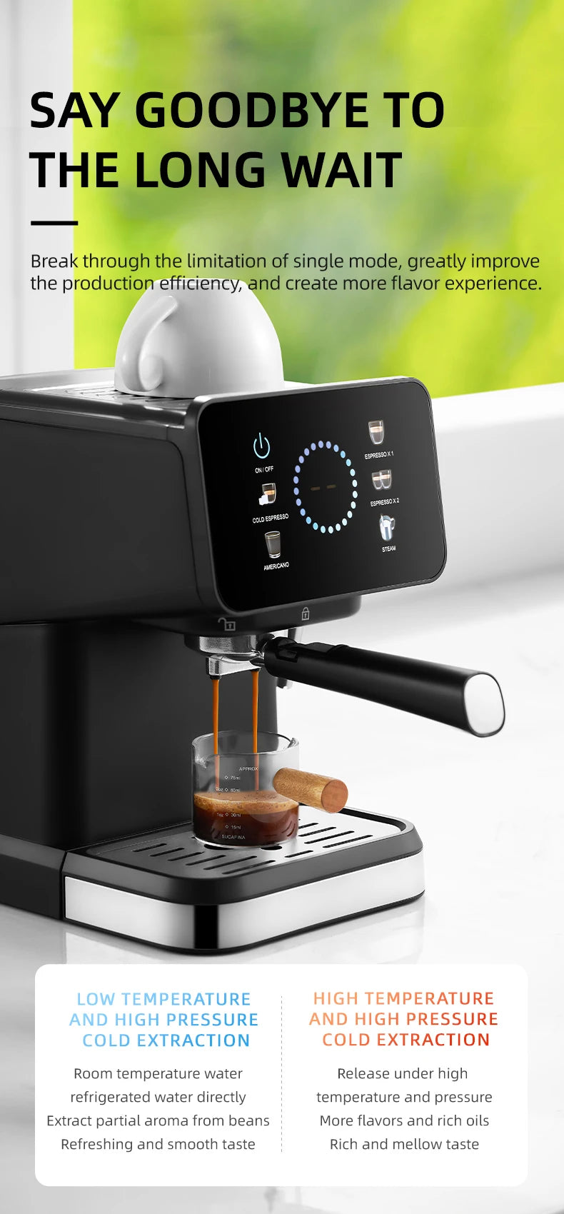 Полуавтоматическая итальянская эспрессо-машина с функцией горячего и холодного кофе, двойной экстракцией,...