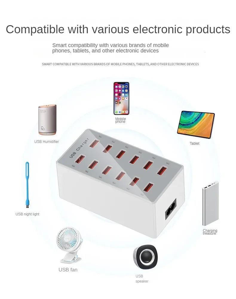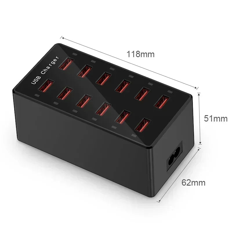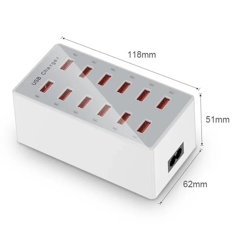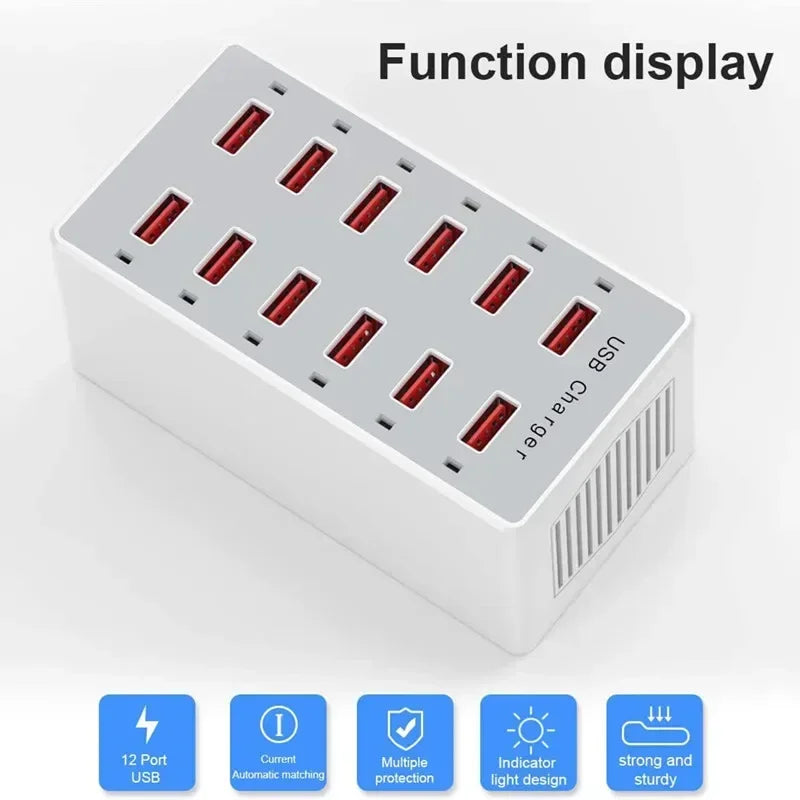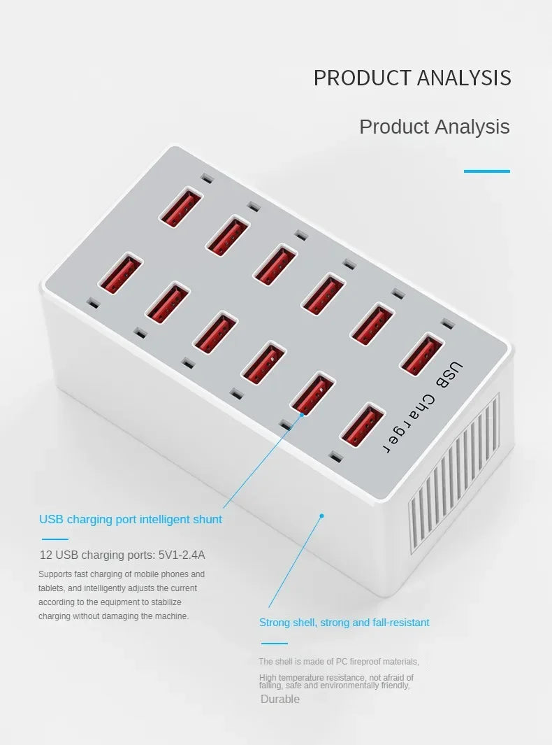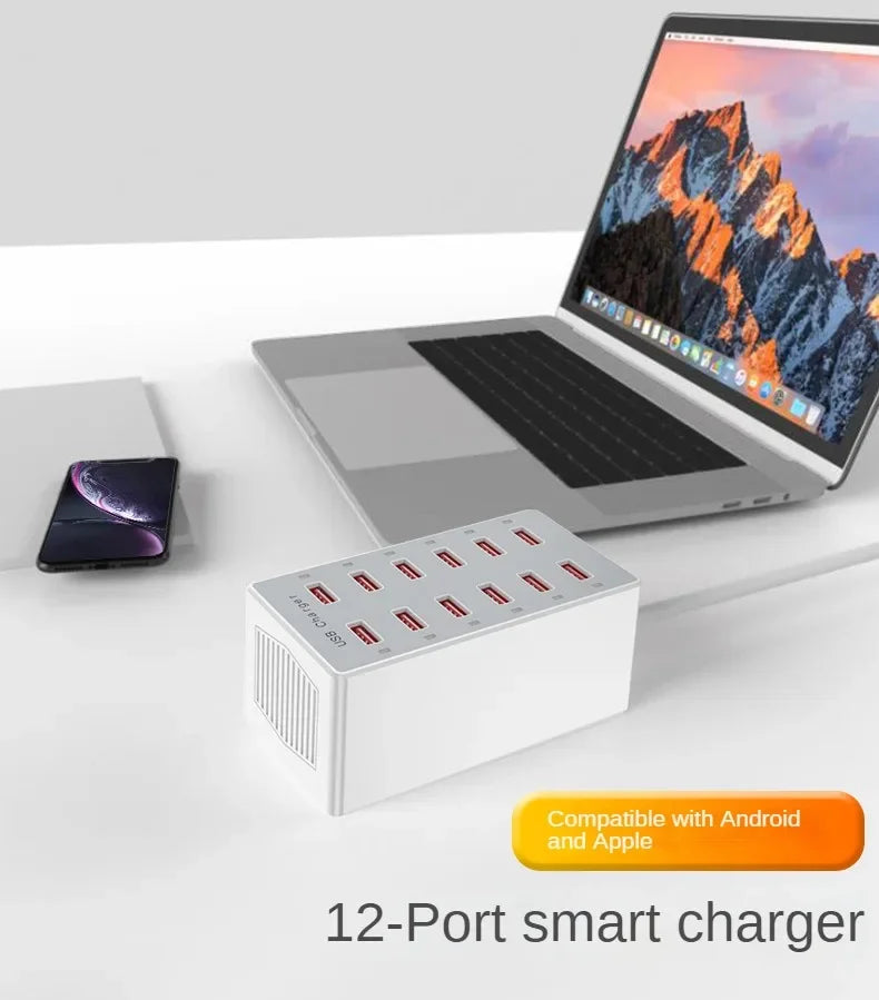 USB-зарядная станция 60 Вт, 12 портов, USB-зарядное устройство для нескольких устройств, зарядное устройс...