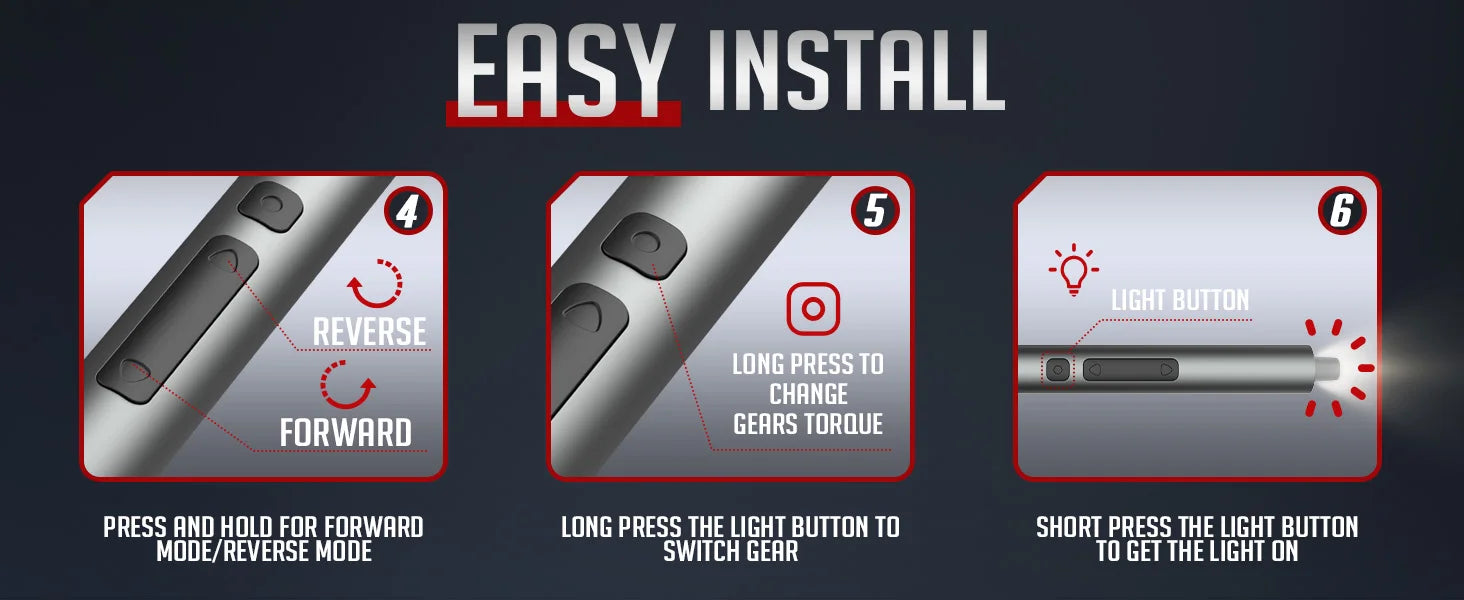 Благодаря скорости вращения 200 об/мин этот инструмент обеспечивает точный крутящий момент, что делает его идеальным для сборки и ремонта широкого спектра предметов, включая мебель, кондиционеры, краны, сетевые фильтры, настольные компьютеры, часы, камеры и многое другое. Инновационная конструкция светодиодной подсветки еще больше повышает его полезность, освещая отверстия для винтов в условиях низкой освещенности, обеспечивая оптимальную видимость и точность.
