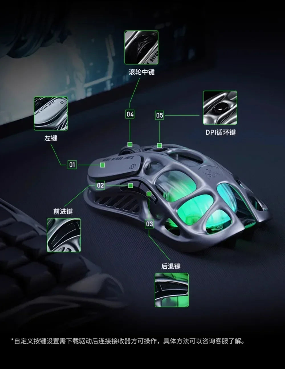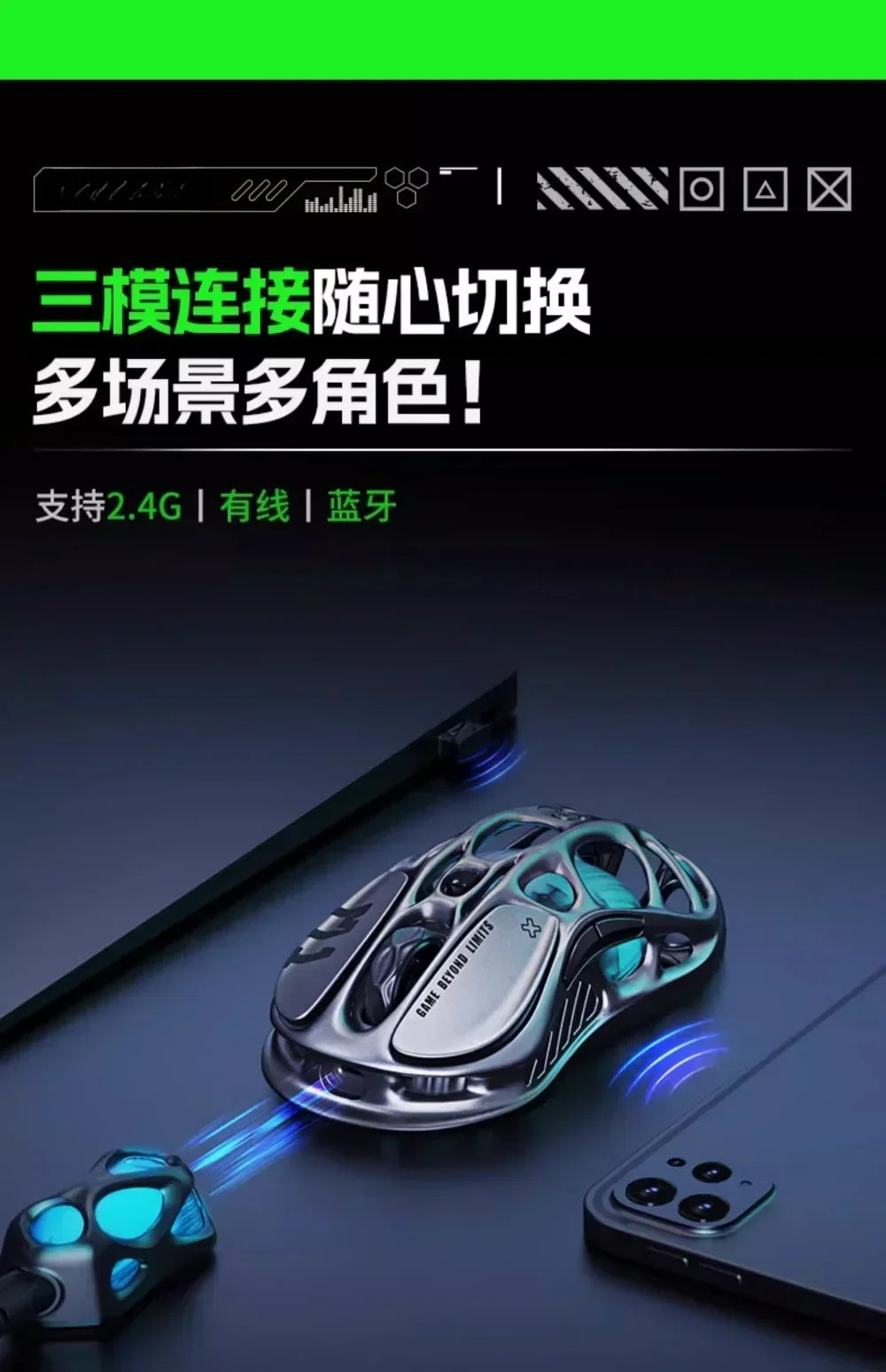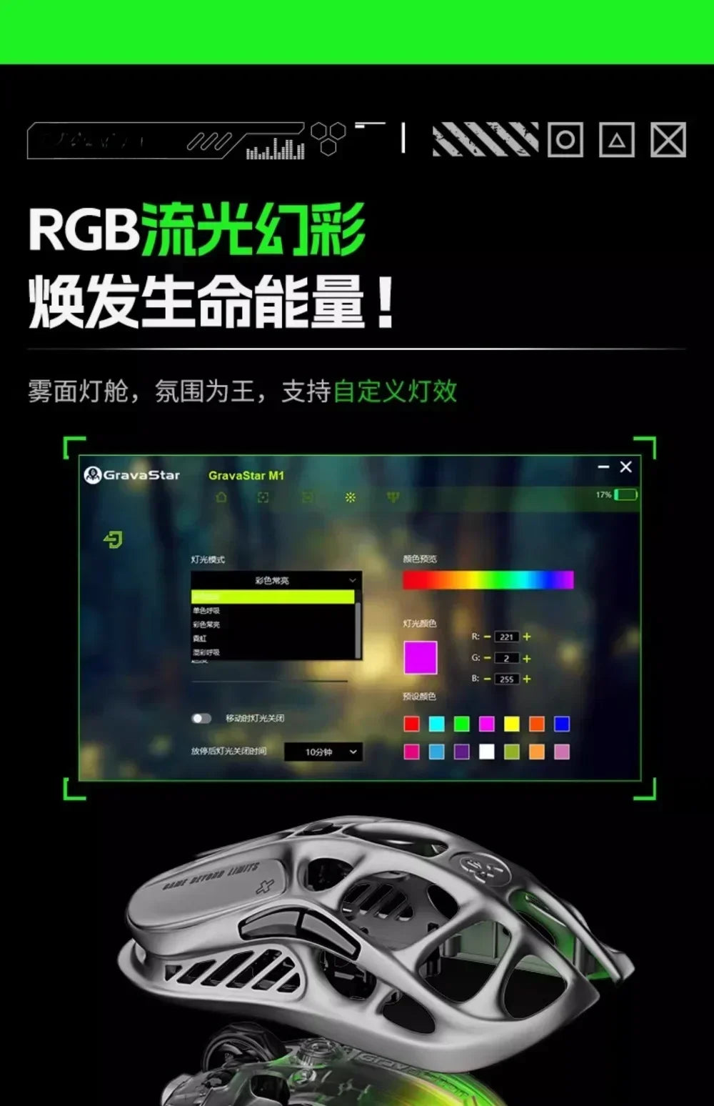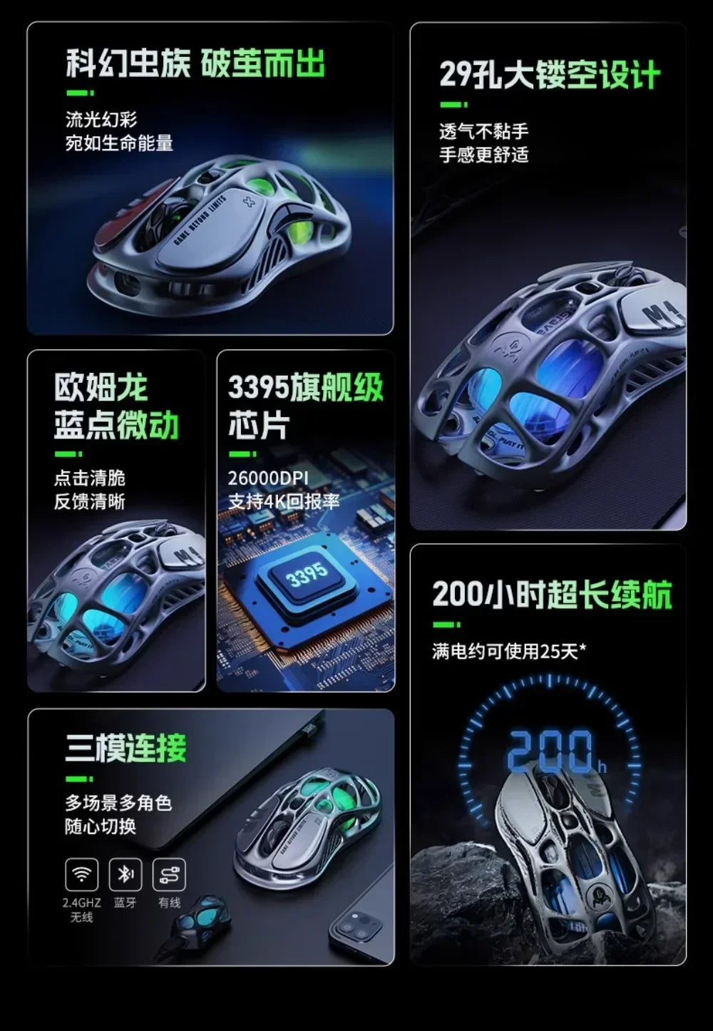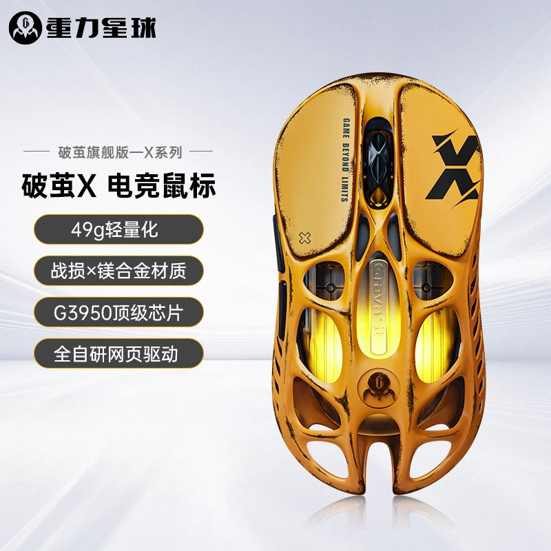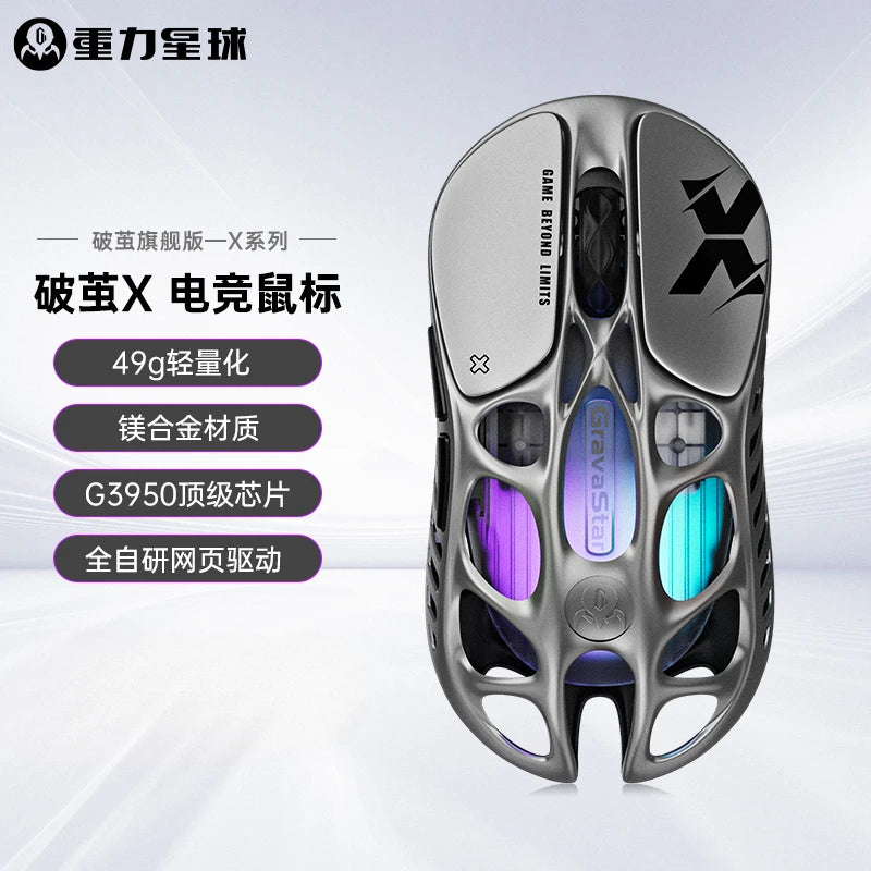 Мышь Gravastar M1/M2/Mercury X Pro, беспроводная, трёхрежимная, из магниевого сплава, лёгкая, RGB, полая,...